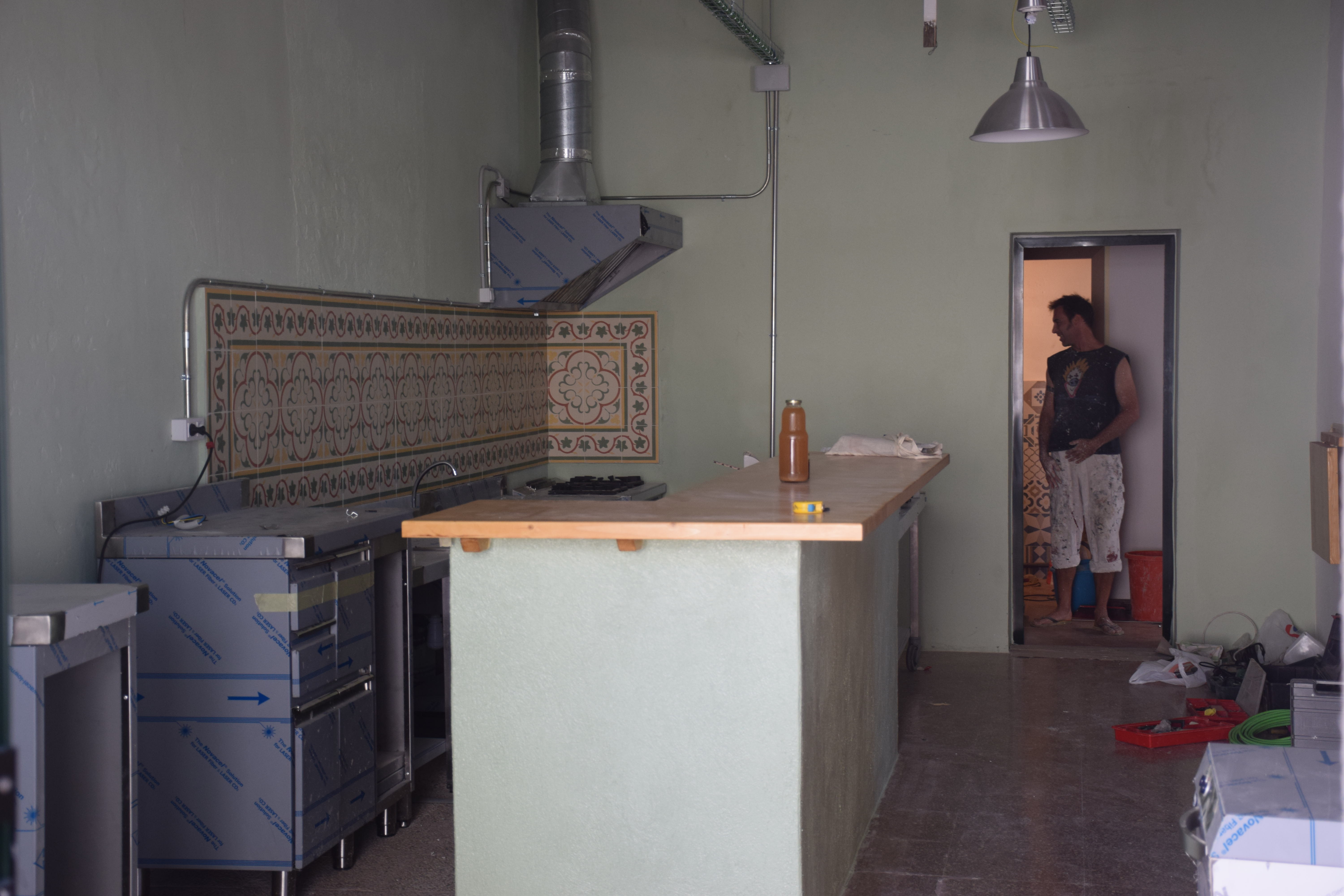 Al nou local, el més gros ja està enllestit: la instal.lació elèctrica feta, tot pintat i la feina de paletes també acabada. Ara queda acabar d’instal.lar-hi alguns mobles, entre ells les pretatgeries on hi haurà el gènere, així com les taules i cadires del bar-taller de cuina, al qual s’hi entrarà per Anselm Clavé. A més d’habilitar aquesta porta, que estava tapiada, també s’han obert finestres noves en espais que les tenien tapades, tant a Anselm Clavé com a La Pau.