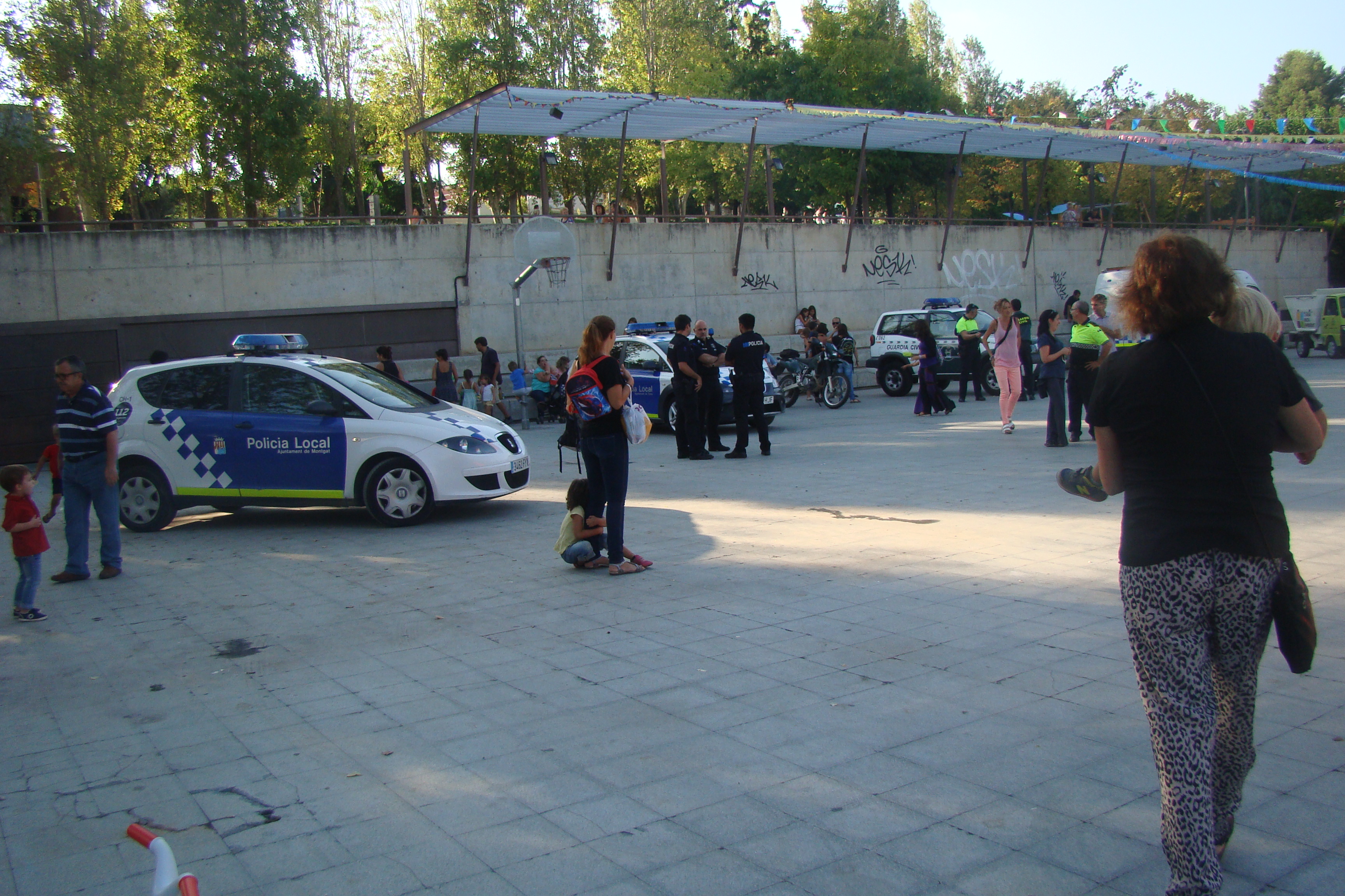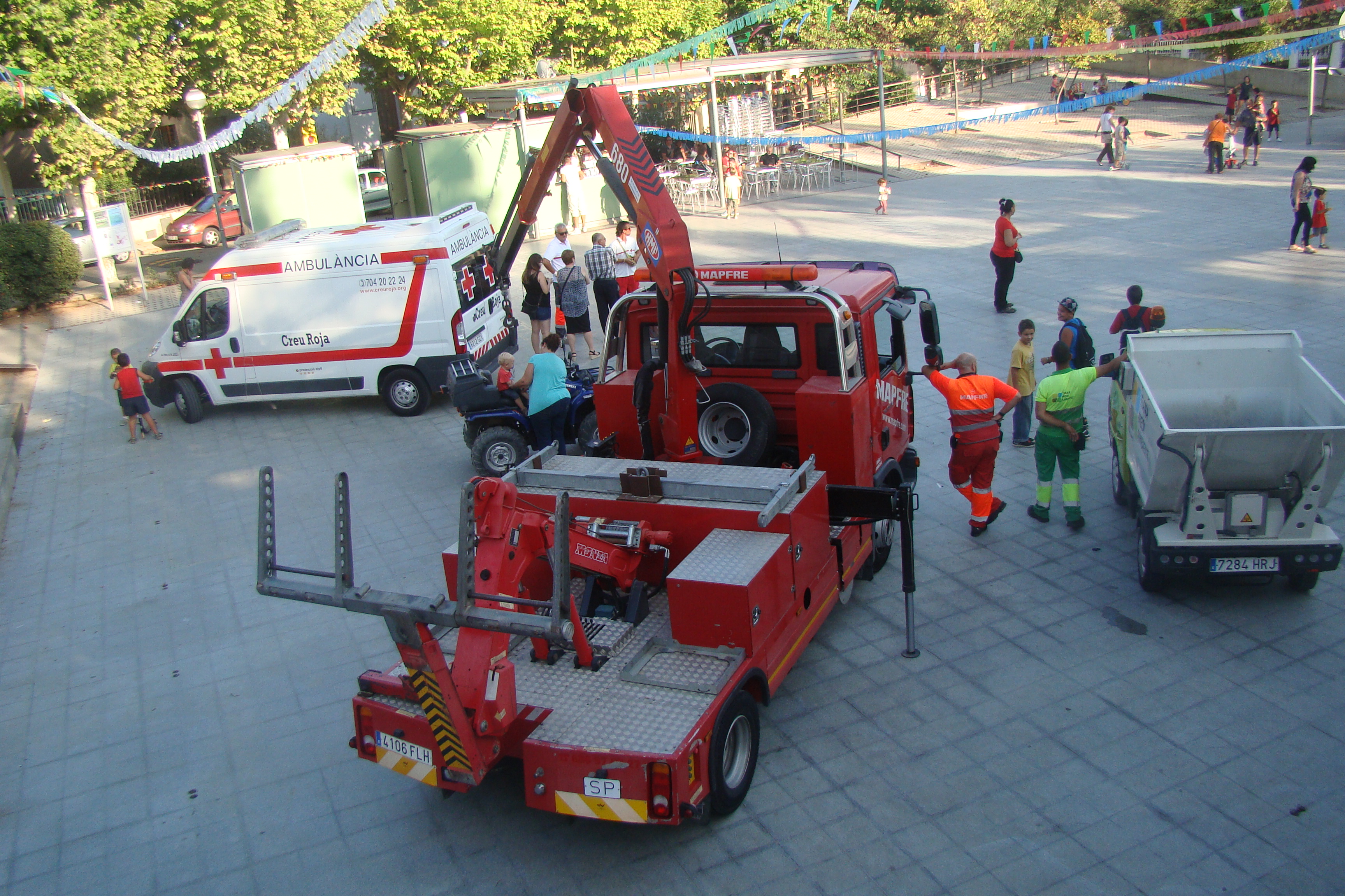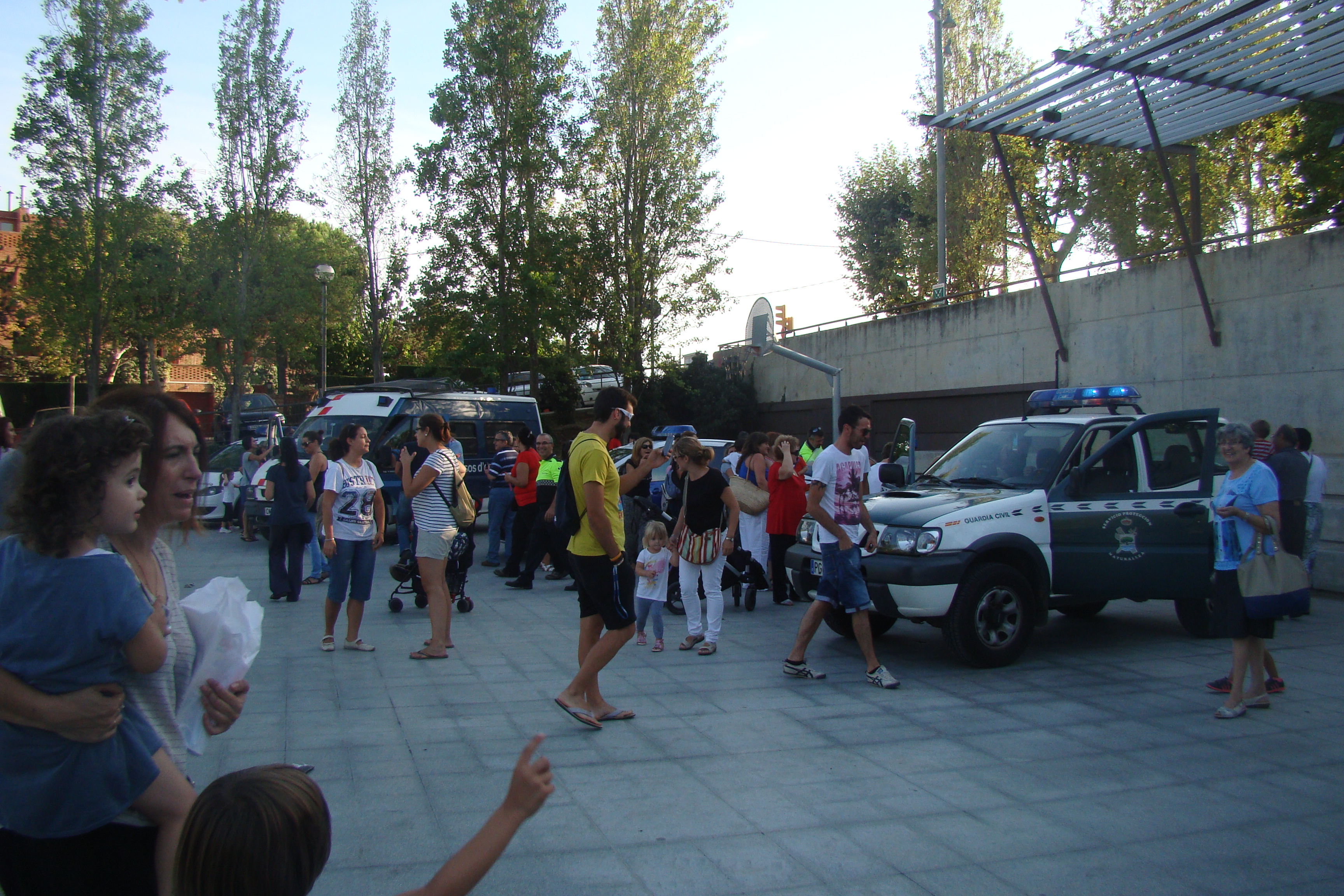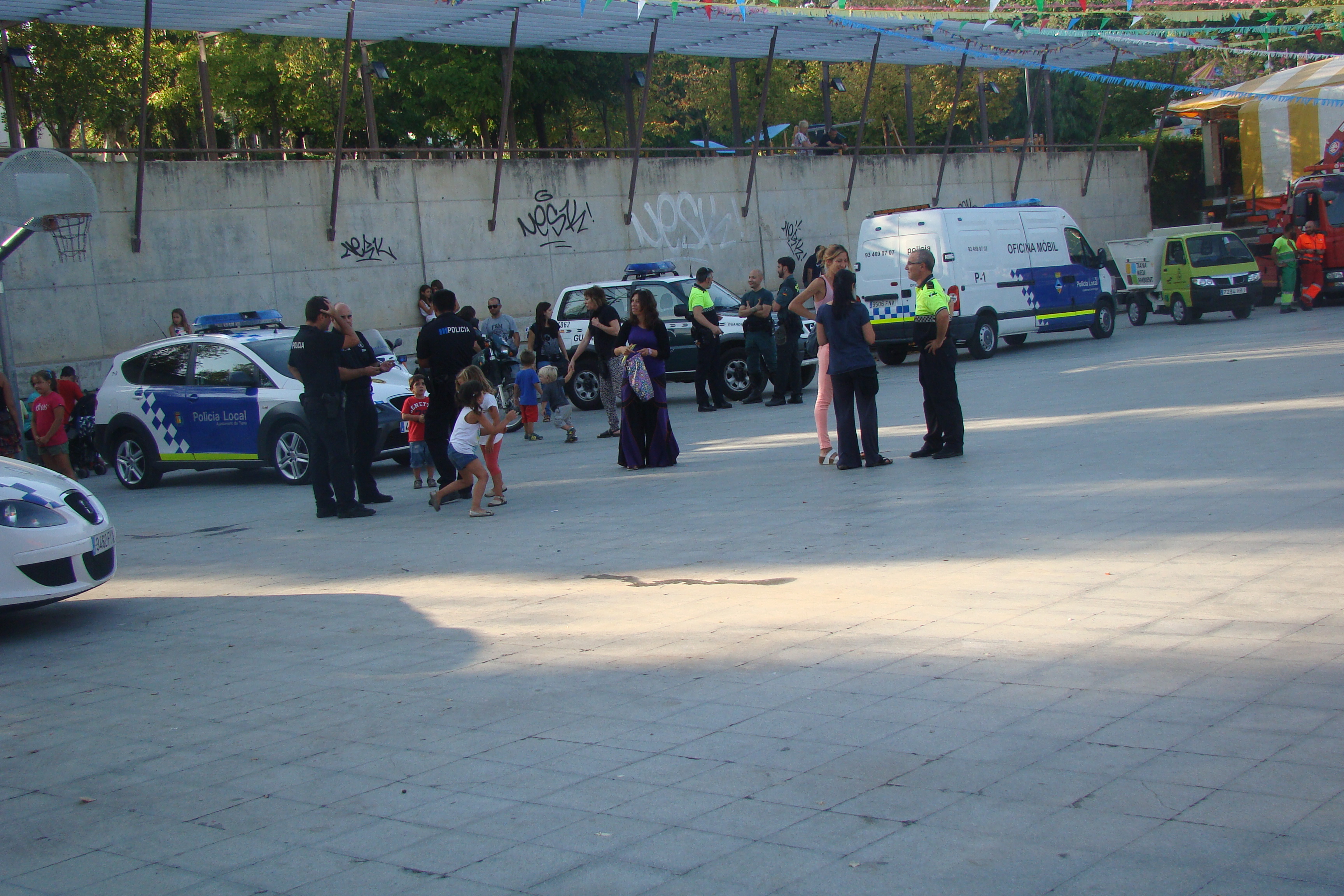 En total, un camió de Bombers, quatre vehicles de la Policia Local, una furgoneta dels Mossos d’Esquadra, dos vehicles de la Guàrdia Civil, un camió d’escombraries, dues grues, una ambulància i dos vehicles de Creu Roja i un 4×4 dels ADF han aparcat al parc de l’antic camp de futbol per canviar de mans, per una estona.