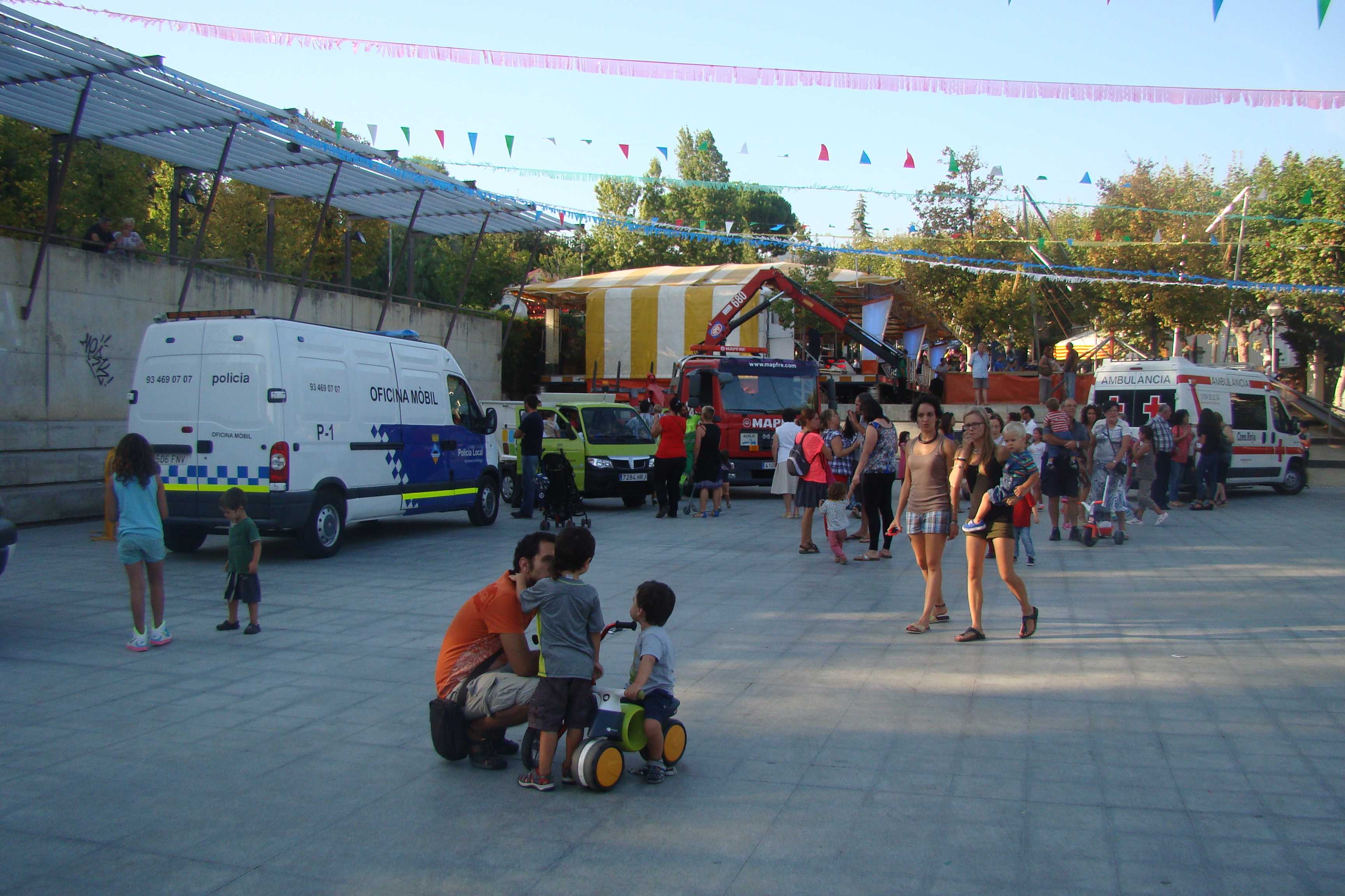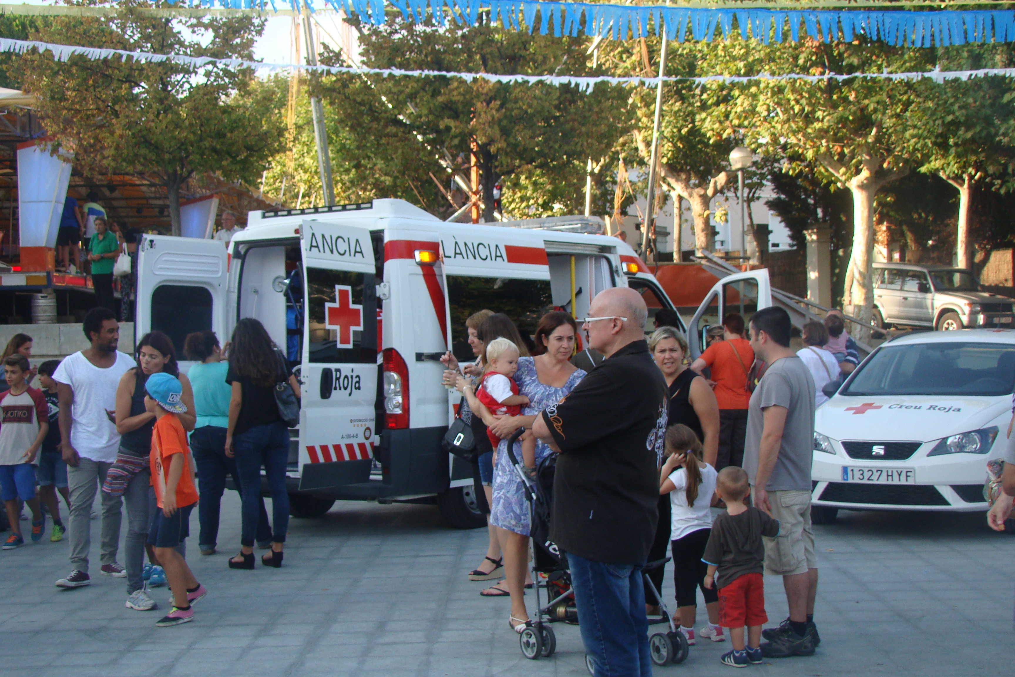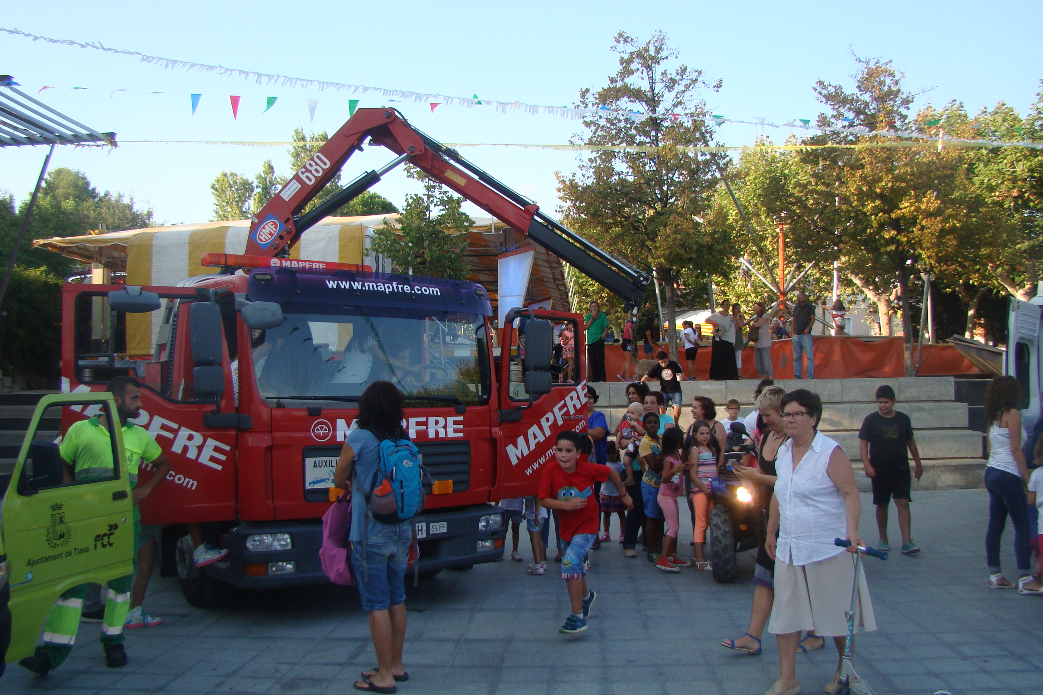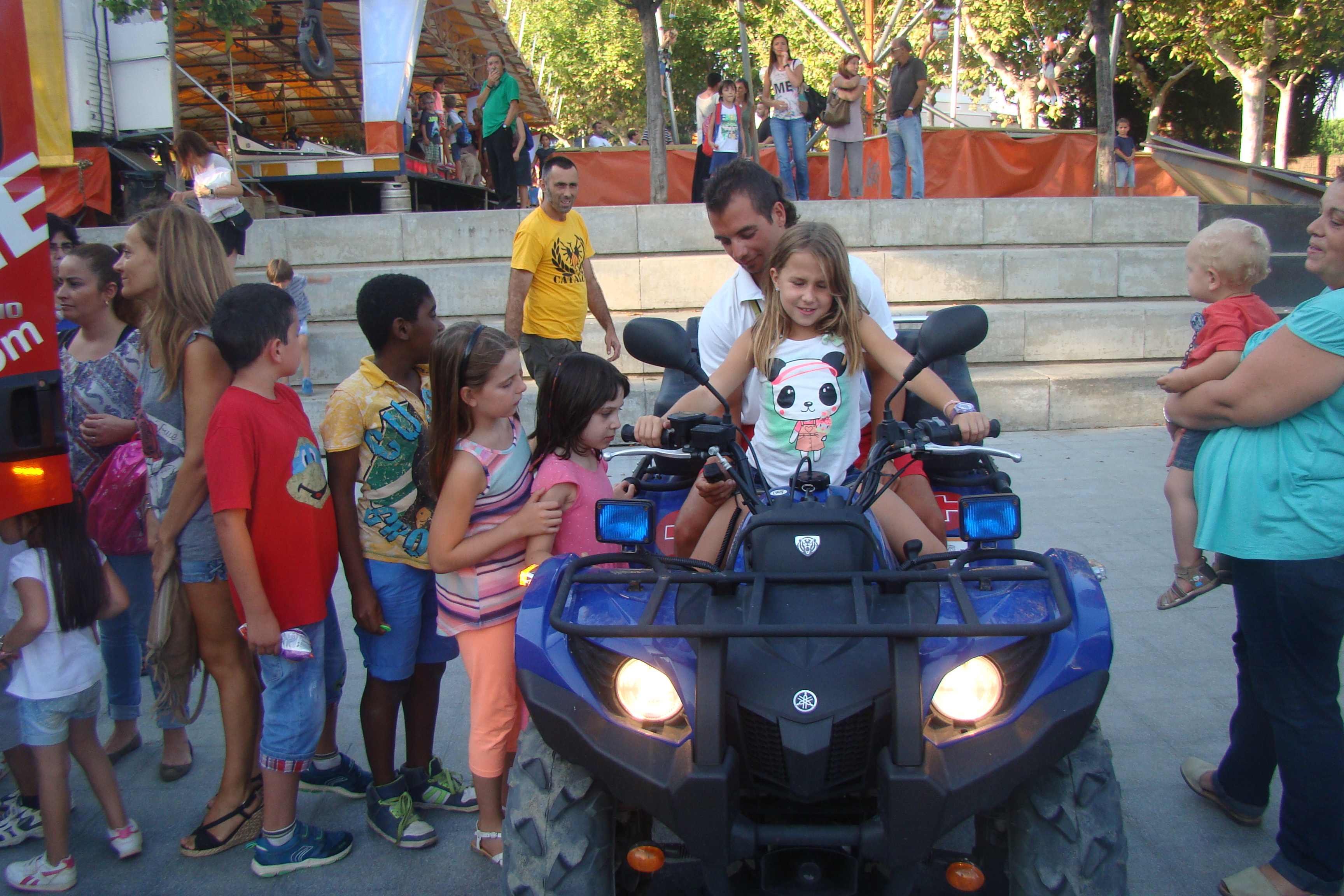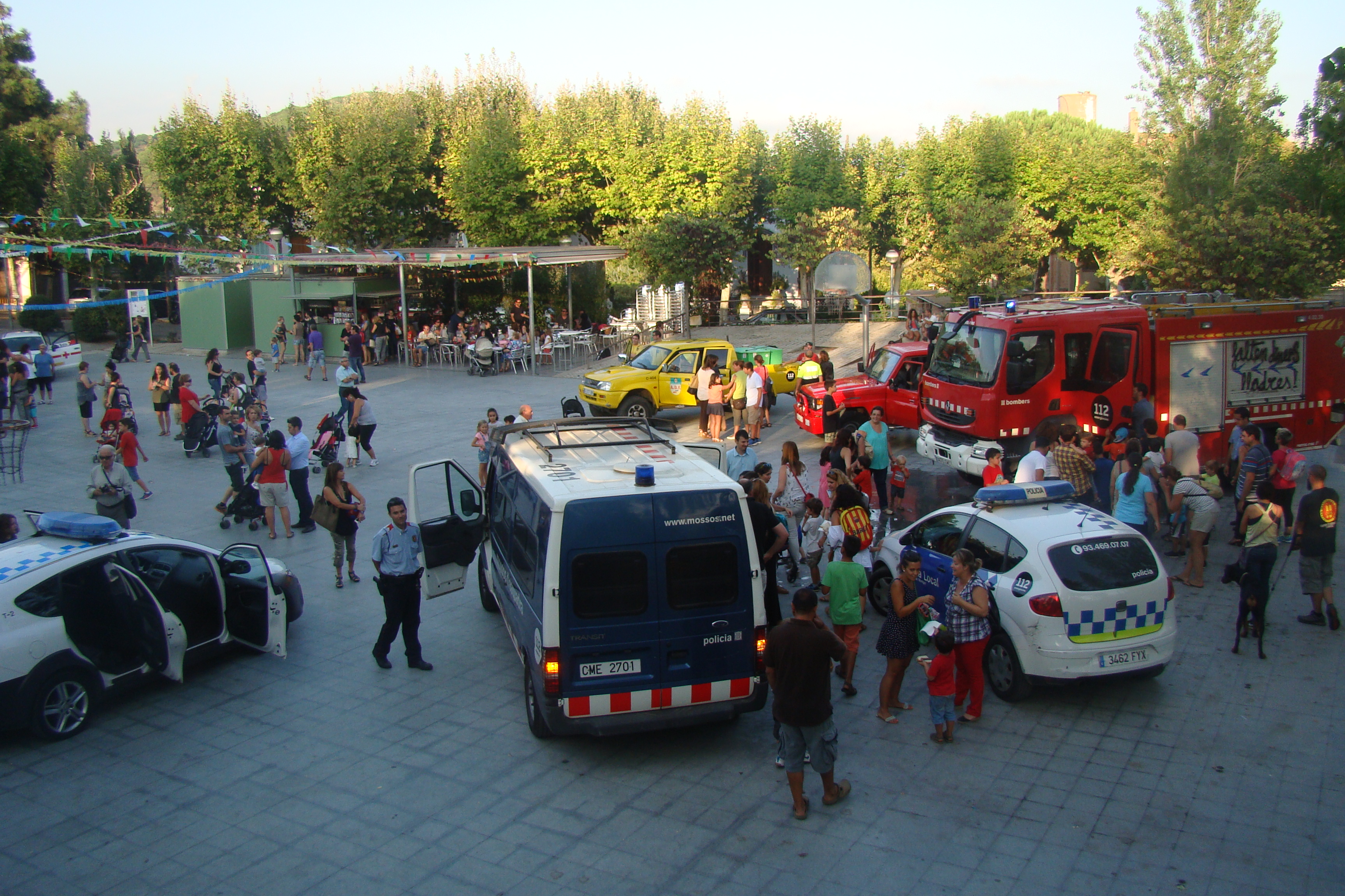 Els Bombers han estat la gran sorpresa d’aquest any. Després d’atendre una emergència, han pogut arribar a temps a l’activitat “Fes sonar les sirenes”. Els anys anteriors, no hi havien pogut participar per l’alerta de l’elevat risc d’incendis. Els seu camió, després de deixar xops els primers que s’hi han apropat, ha format cues de nens i nenes que volien posar-se el casc i encendre totes les alarmes.