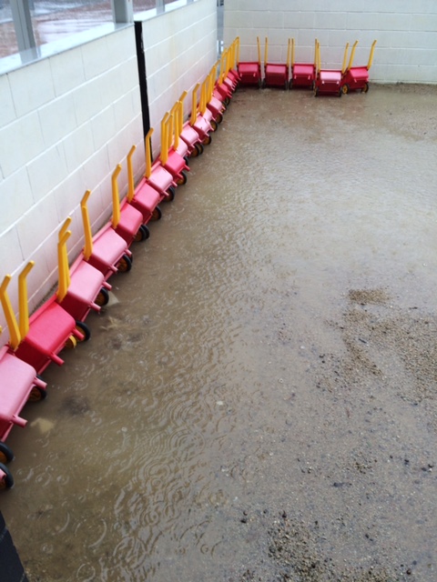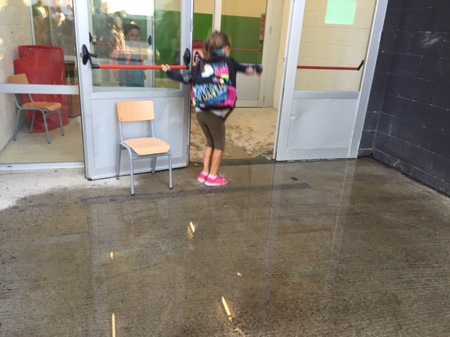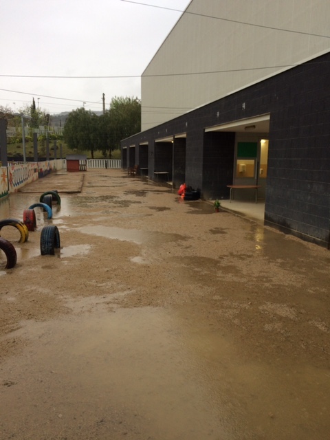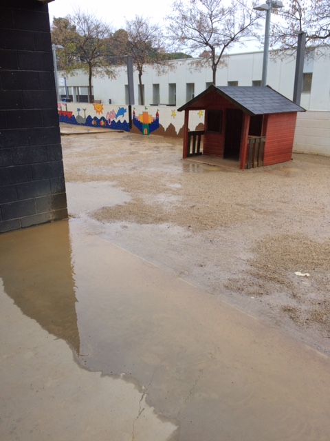 A aquesta mala canalització s’hi afegeix, segons en Carles, un altre problema de base: per evitar que creixessin males herbes als patis, en el moment de construir l’escola es va col.locar una gran tela sota terra. Ara, però, representa un fre per l’aigua de la pluja, que no es pot escolar avall i queda a la superficie: