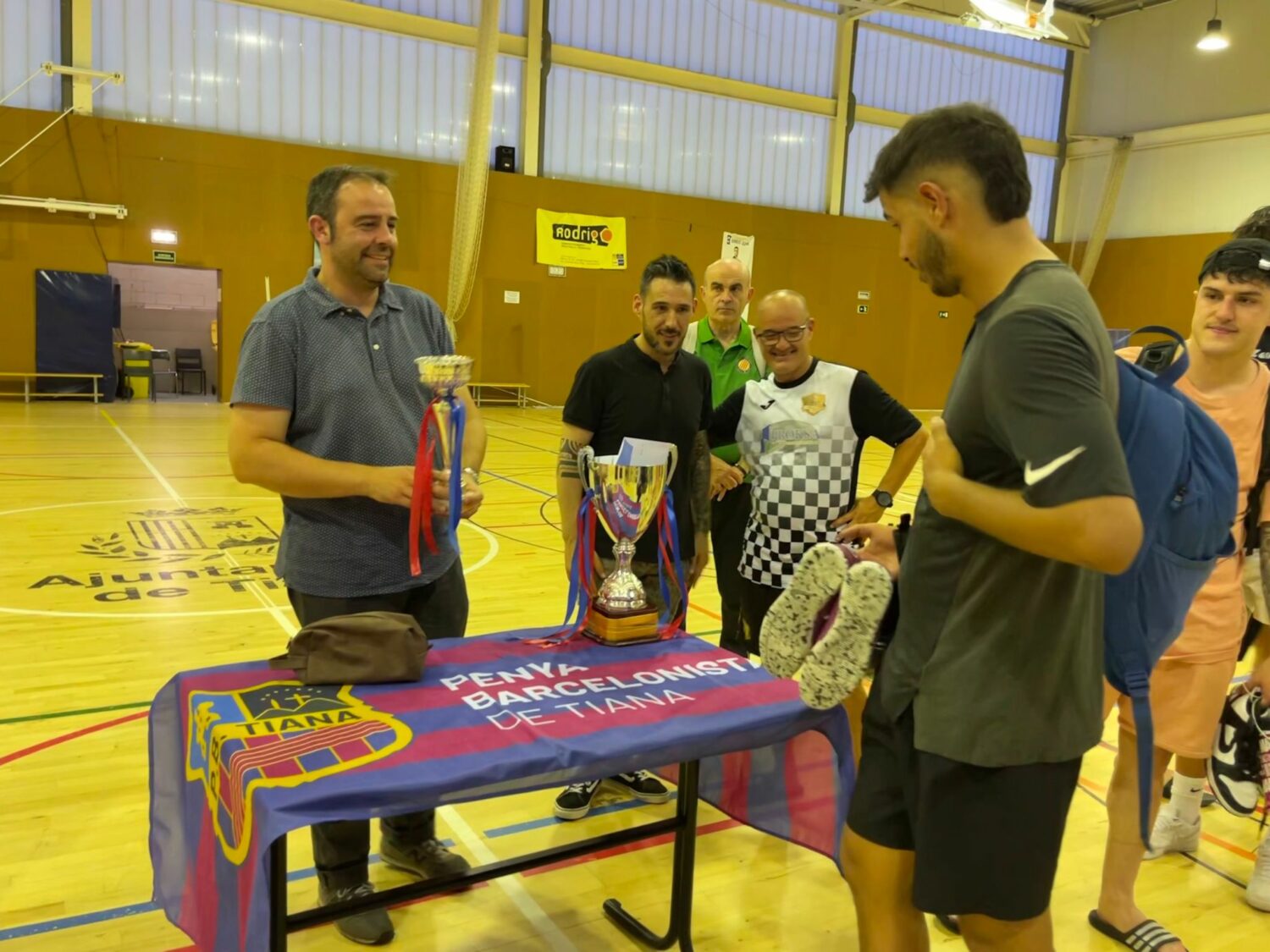 El Pavelló municipal ha acollit aquest dissabte 17 de juny la segona edició del torneig de futbol sala organitzat per l’A.E. Sala 5 i la Penya Barcelonista de Tiana. En Carles Campos, president de la Penya, explica que, tot i que els equips eren amateurs, el torneig ha tingut molt nivell perquè ha comptat amb la participació de futbolistes professionals de la LNFS i la lliga italiana de FS: