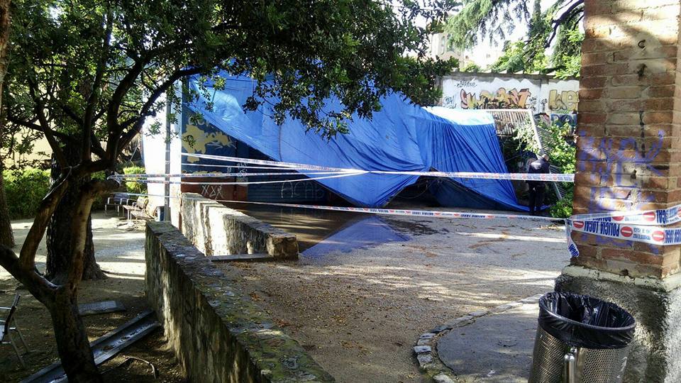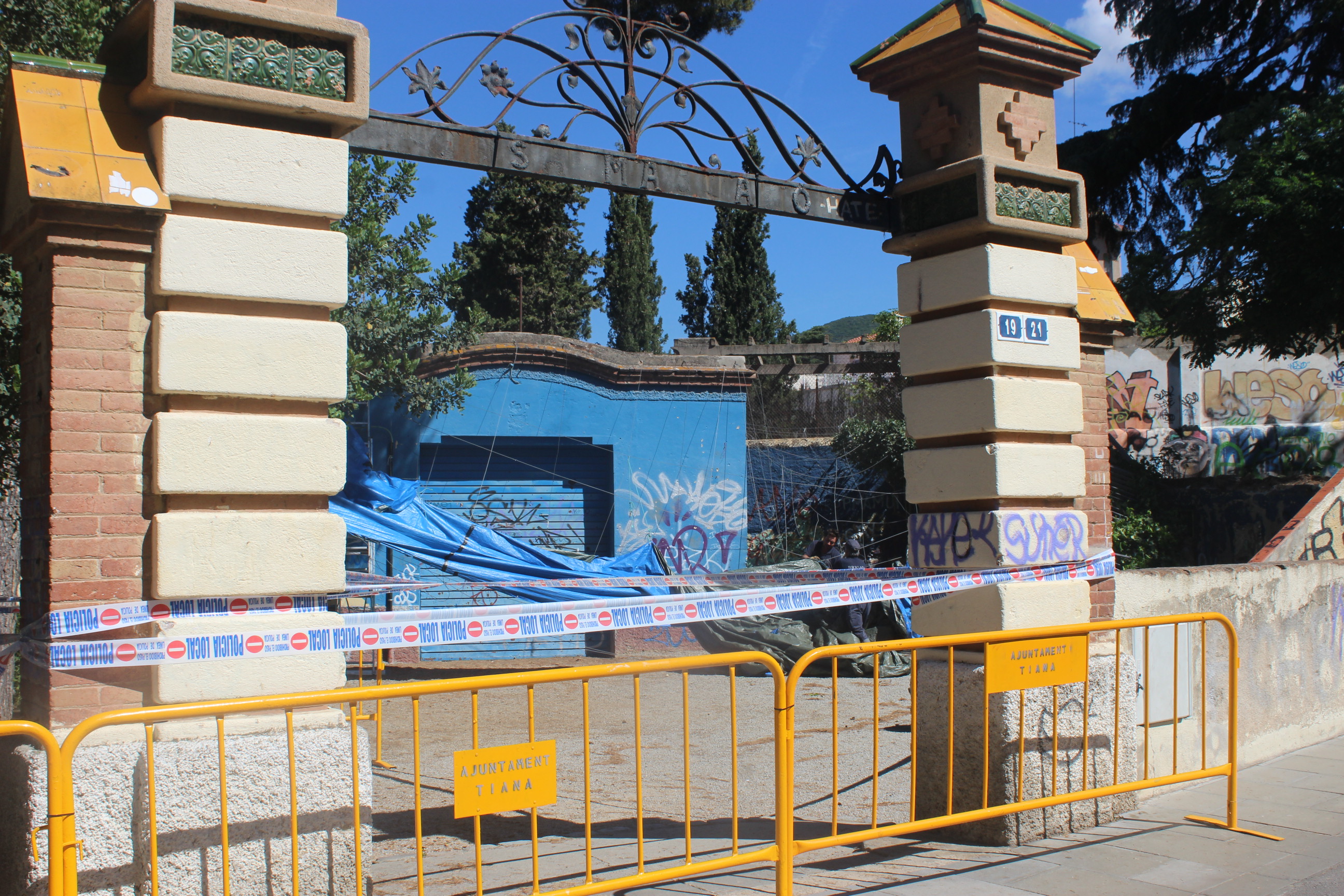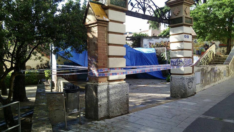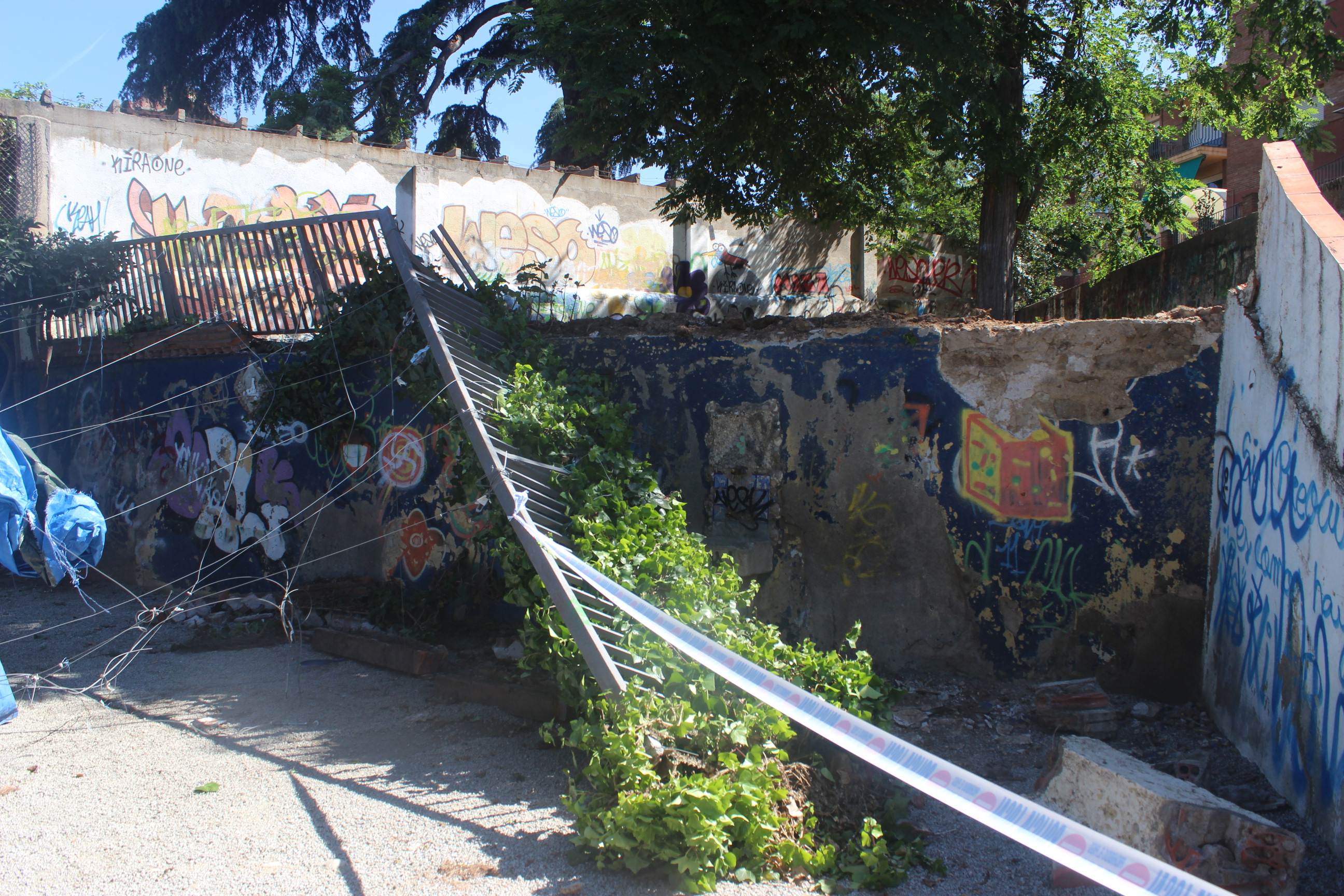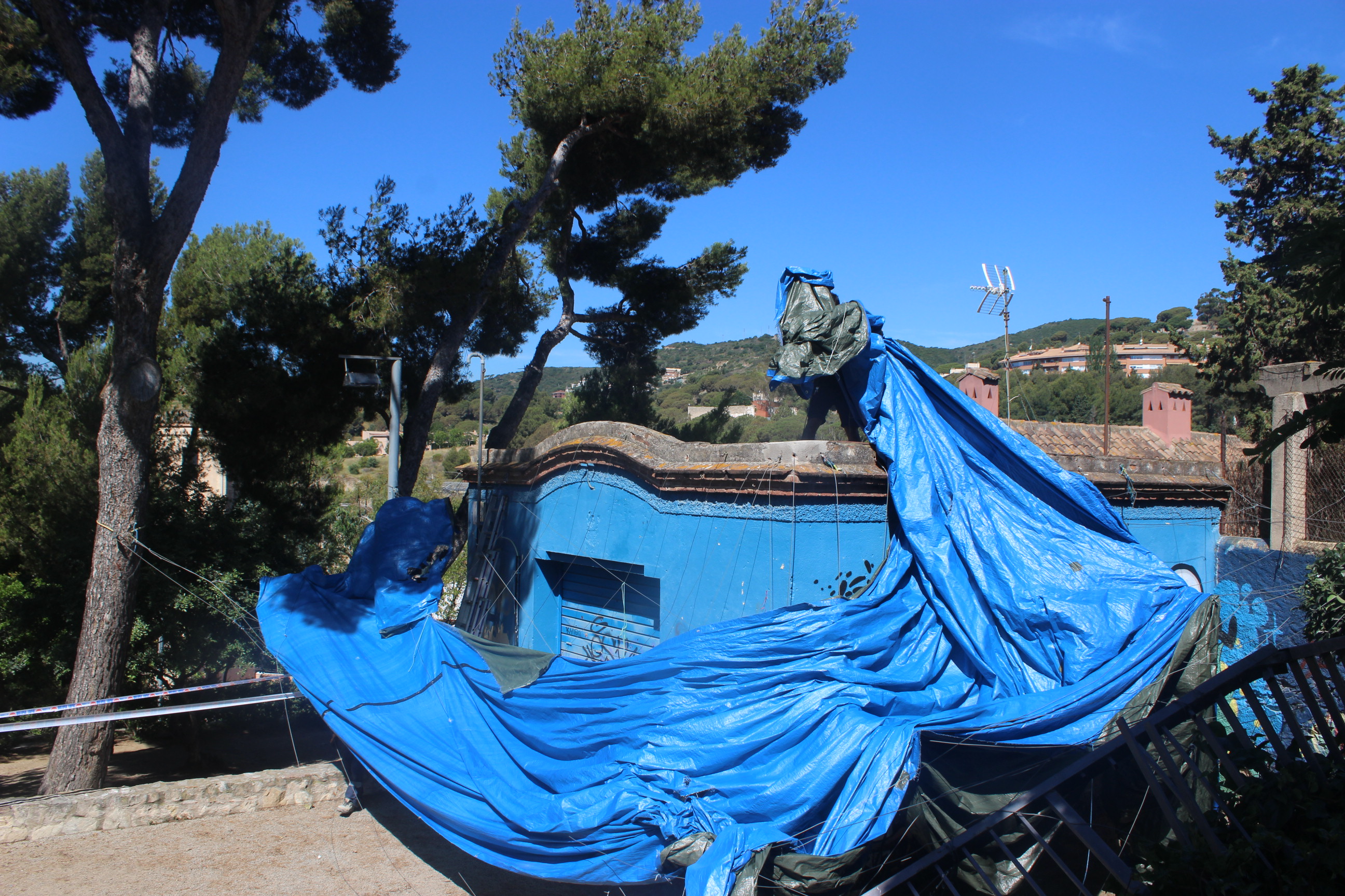 El fort aiguat que va caure aquest dissabte per la tarda a Tiana, va fer força mal en poca estona. El xàfec va caure sobrte les 16.45h i va durar menys d’una hora però va anar acompanyat de calamarsa, fet que va provocar l’enfosament d’un tendal que havia quedat instal.lat al parc del Doctor Mascaró des de la Festa Major petita. L’acumulació de calamarsa i aigua sobre seu, va fer que el tendal cedís i s’enfonsés. Al mateix parc també va caure un tros de mur i una tanca, arrossegada pel pes del tendal.