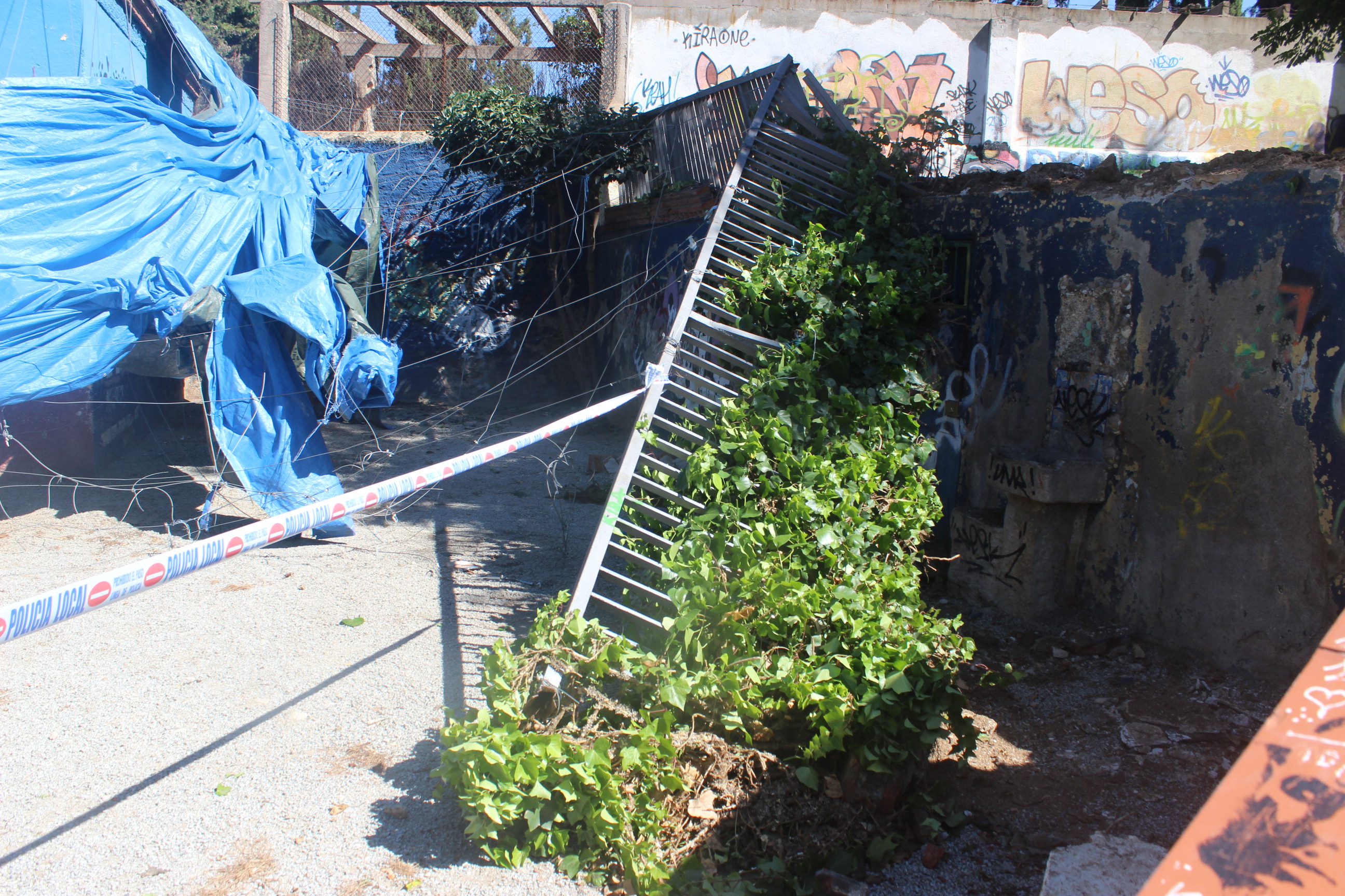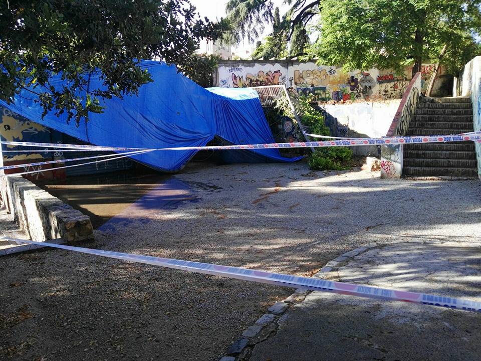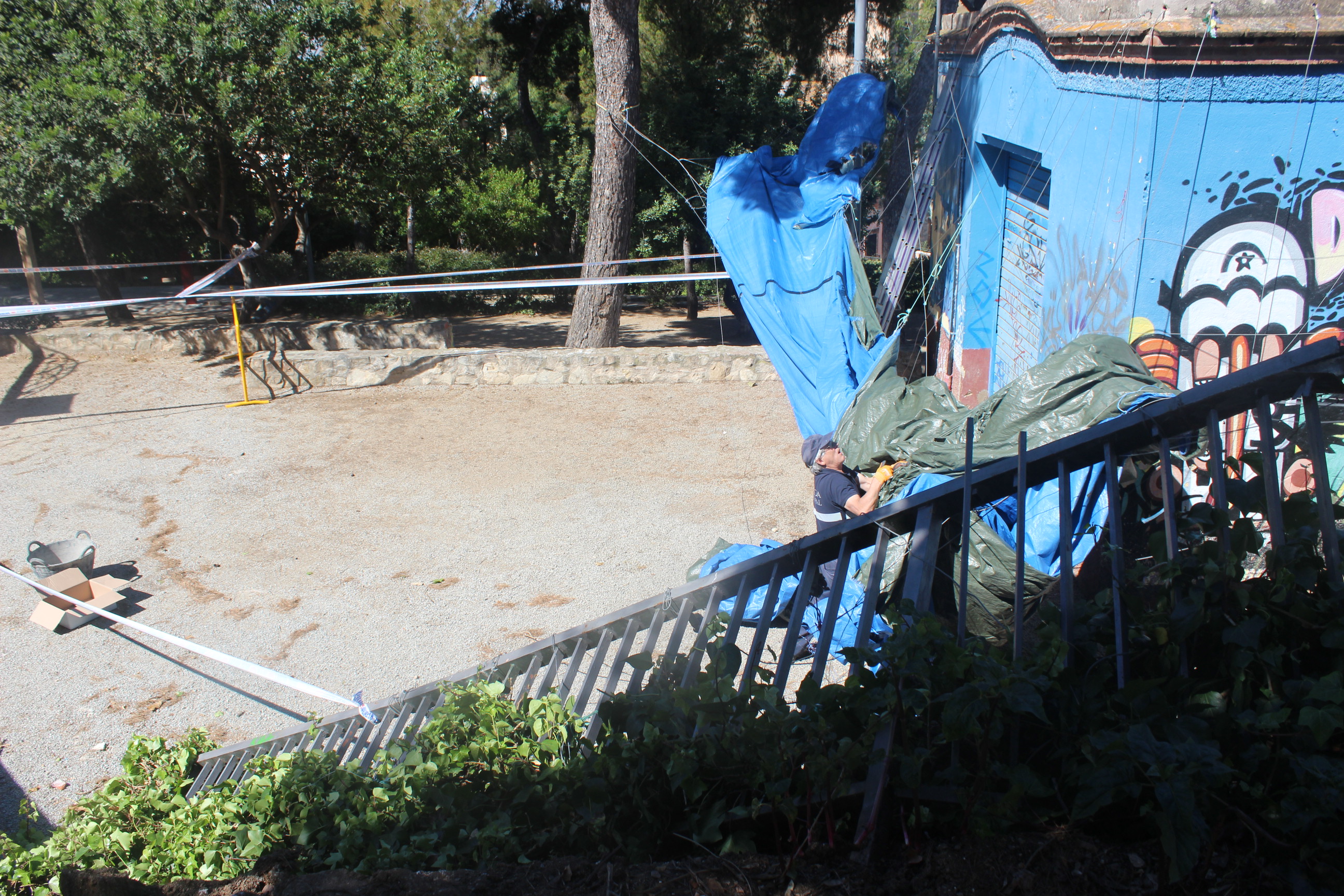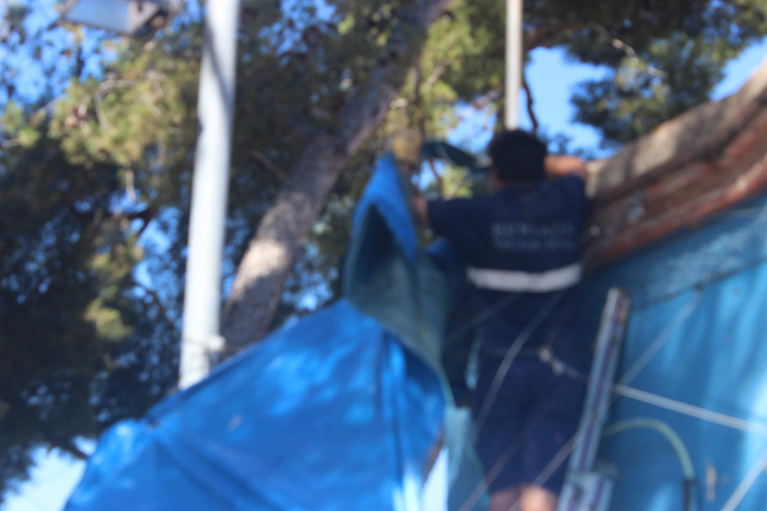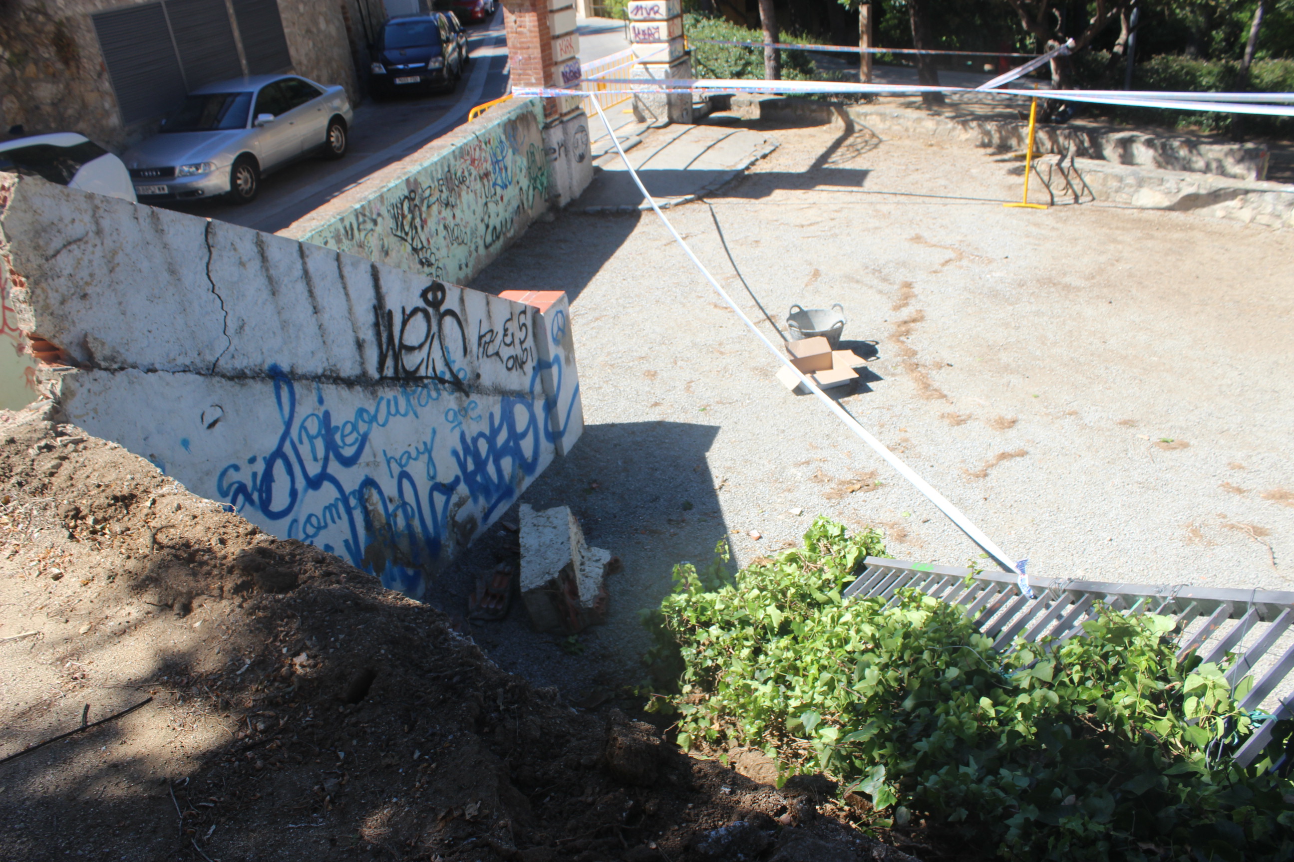 El fort aiguat que va caure aquest dissabte per la tarda a Tiana, va fer força mal en poca estona. El xàfec va caure sobrte les 16.45h i va durar menys d’una hora però va anar acompanyat de calamarsa, fet que va provocar l’enfosament d’un tendal que havia quedat instal.lat al parc del Doctor Mascaró des de la Festa Major petita. L’acumulació de calamarsa i aigua sobre seu, va fer que el tendal cedís i s’enfonsés. Al mateix parc també va caure un tros de mur i una tanca, arrossegada pel pes del tendal.