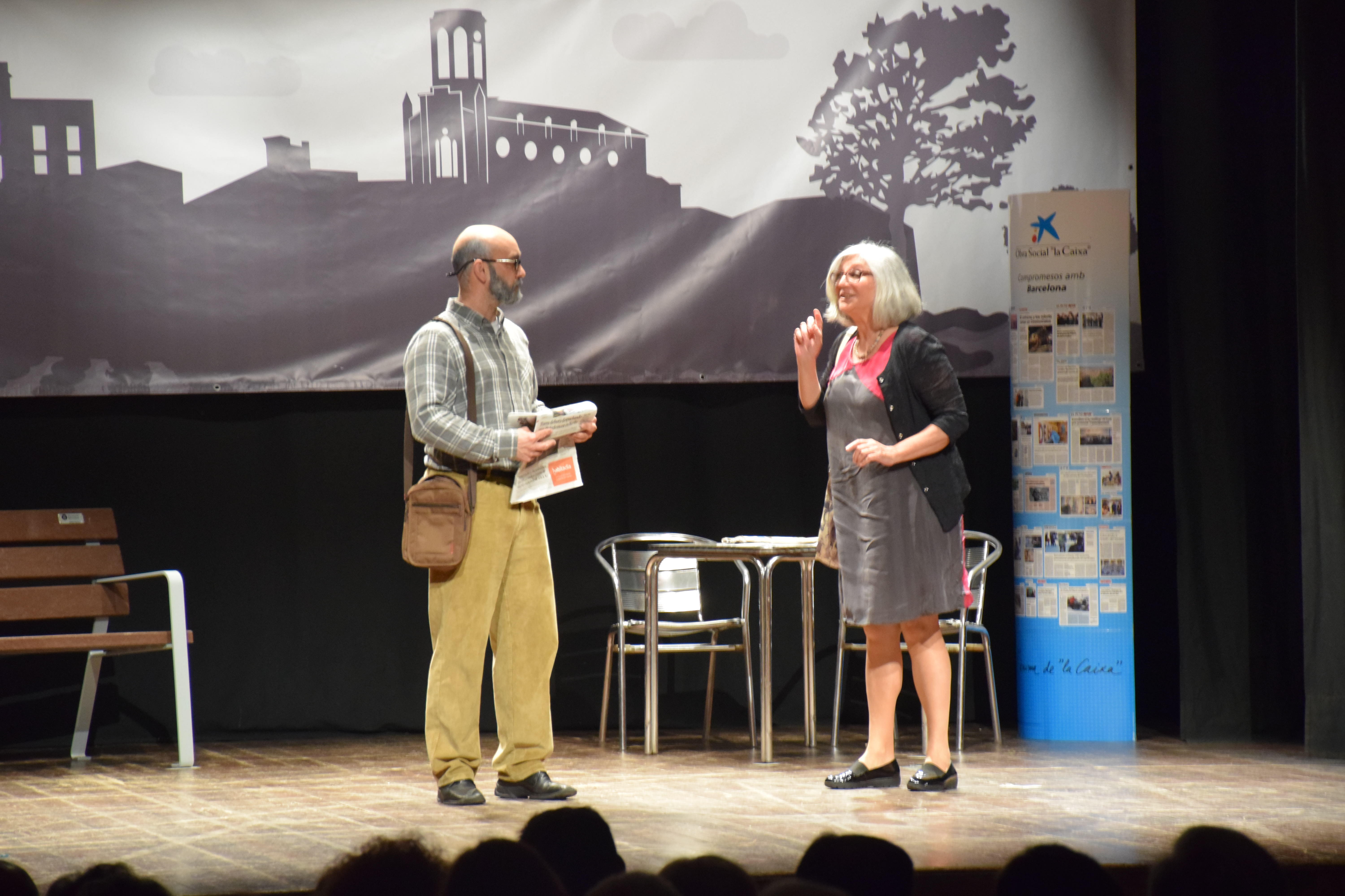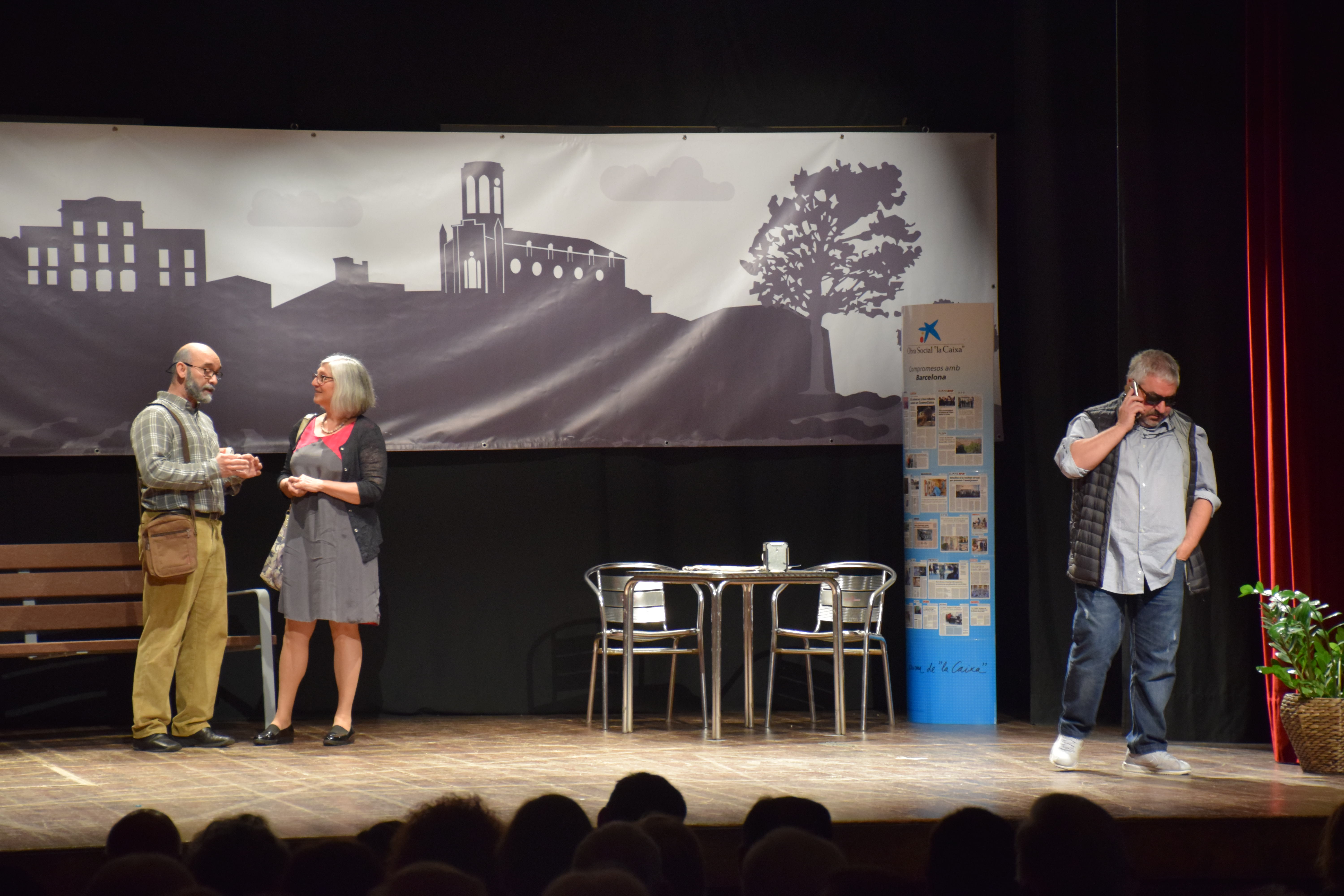 Un revisor del gas fals, lladres coordinats per robar la pensió el dia que s’extreu del banc i dues dones que distreuen amb abraçades o afalacs per robar joies. “L’Espiell, prevenir millor que…” ha representat aquest dijous a la Sala Albéniz tres situacions diferents on la gent gran pot ser víctima de robatori i estafa per, tal com diu el títol de l’obra, prevenir-los i evitar que caiguin en aquests enganys.