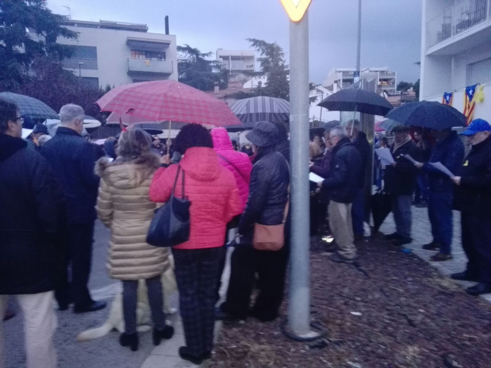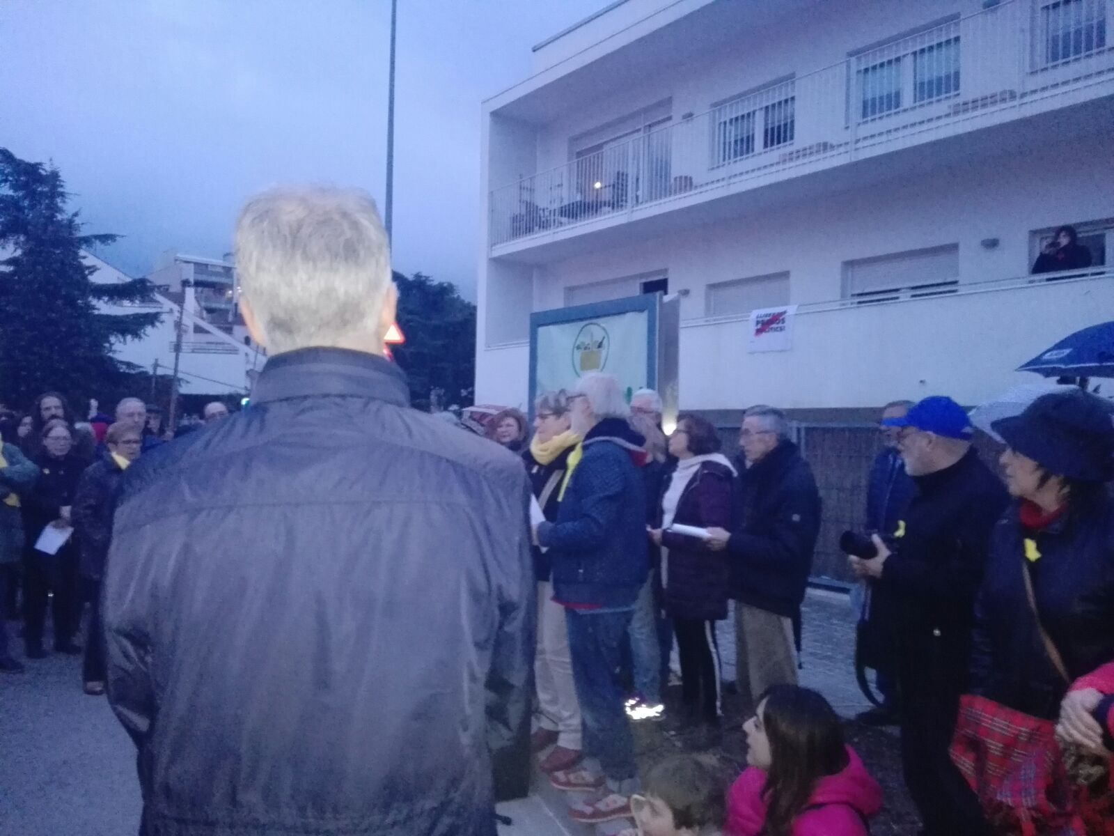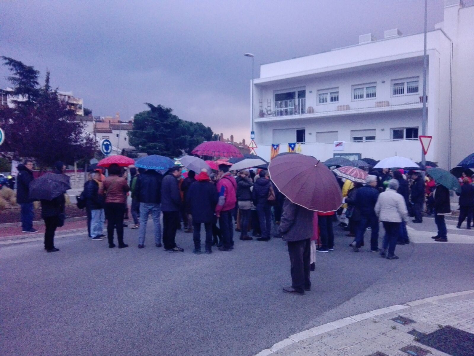 Malgrat la pluja intermitent, aquest vespre l’acte habitual dels dilluns per demanar la llibertat dels presos polítics s’ha traslladat a la rotonda d’entrada a Tiana. El motiu: tornar a col·locar l’estelada que la setmana passada havia despenjat un grup d’encaputxats.