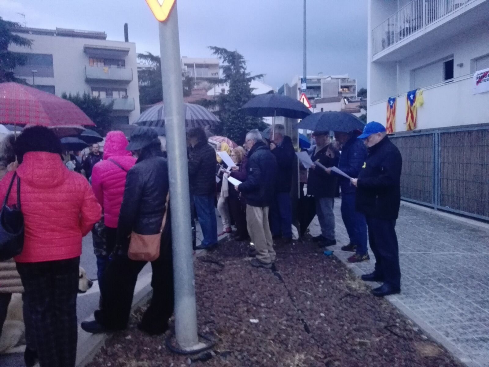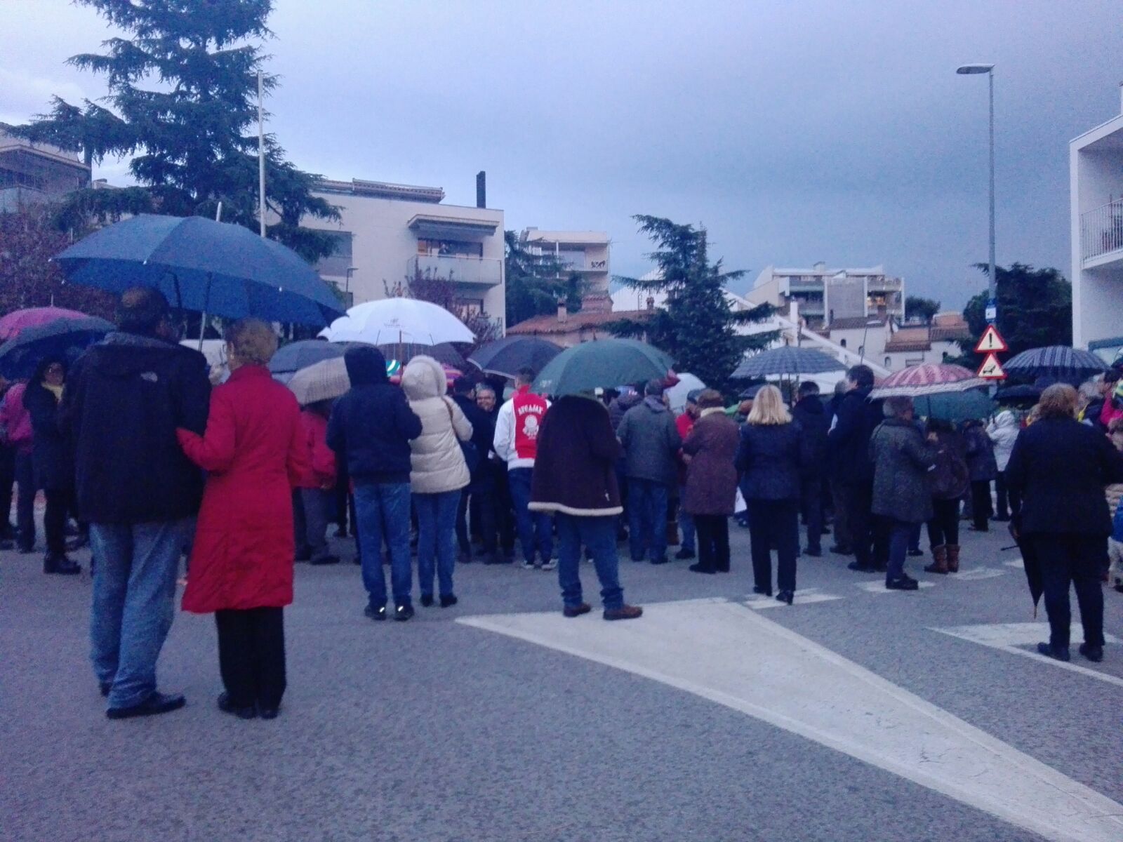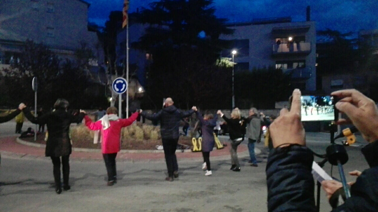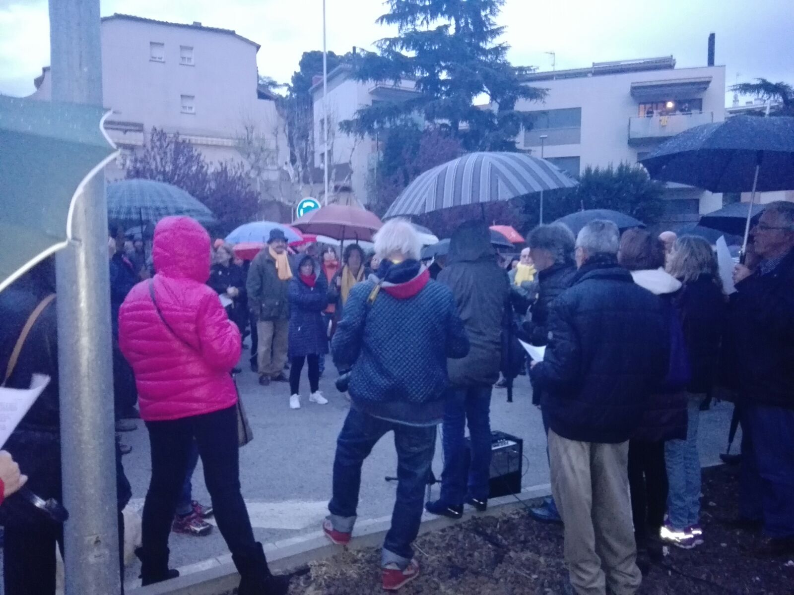 Quan ja ha arribat l’hora, la gent s’ha col·locat al mig del carrer, tallant la circulació dels cotxes que venien perpendicularment. La Policia Local ha hagut de regular el trànsit, durant l’estona que ha durat l’acte, per fer que els cotxes passessin per un sol costat de la rotonda.