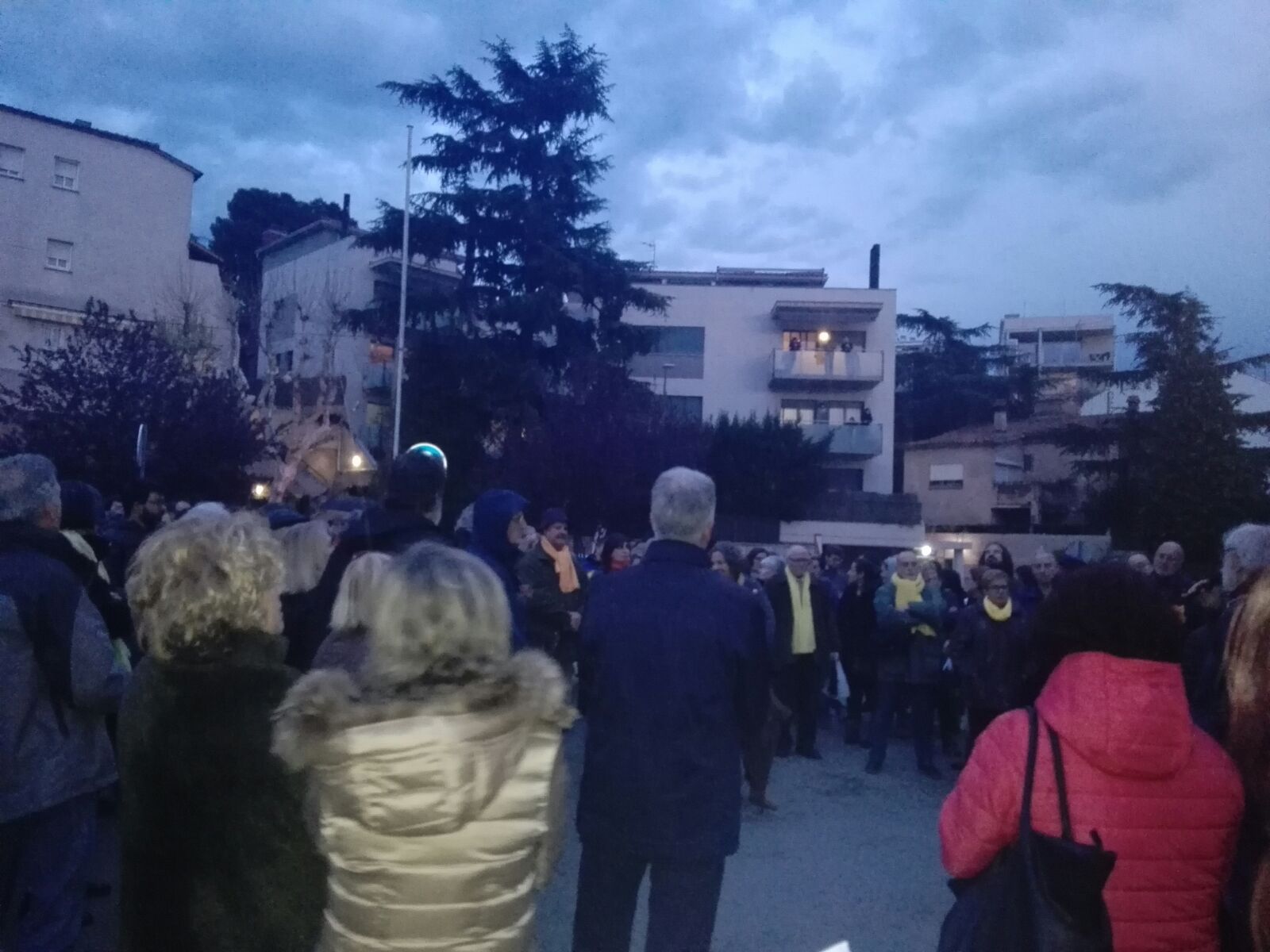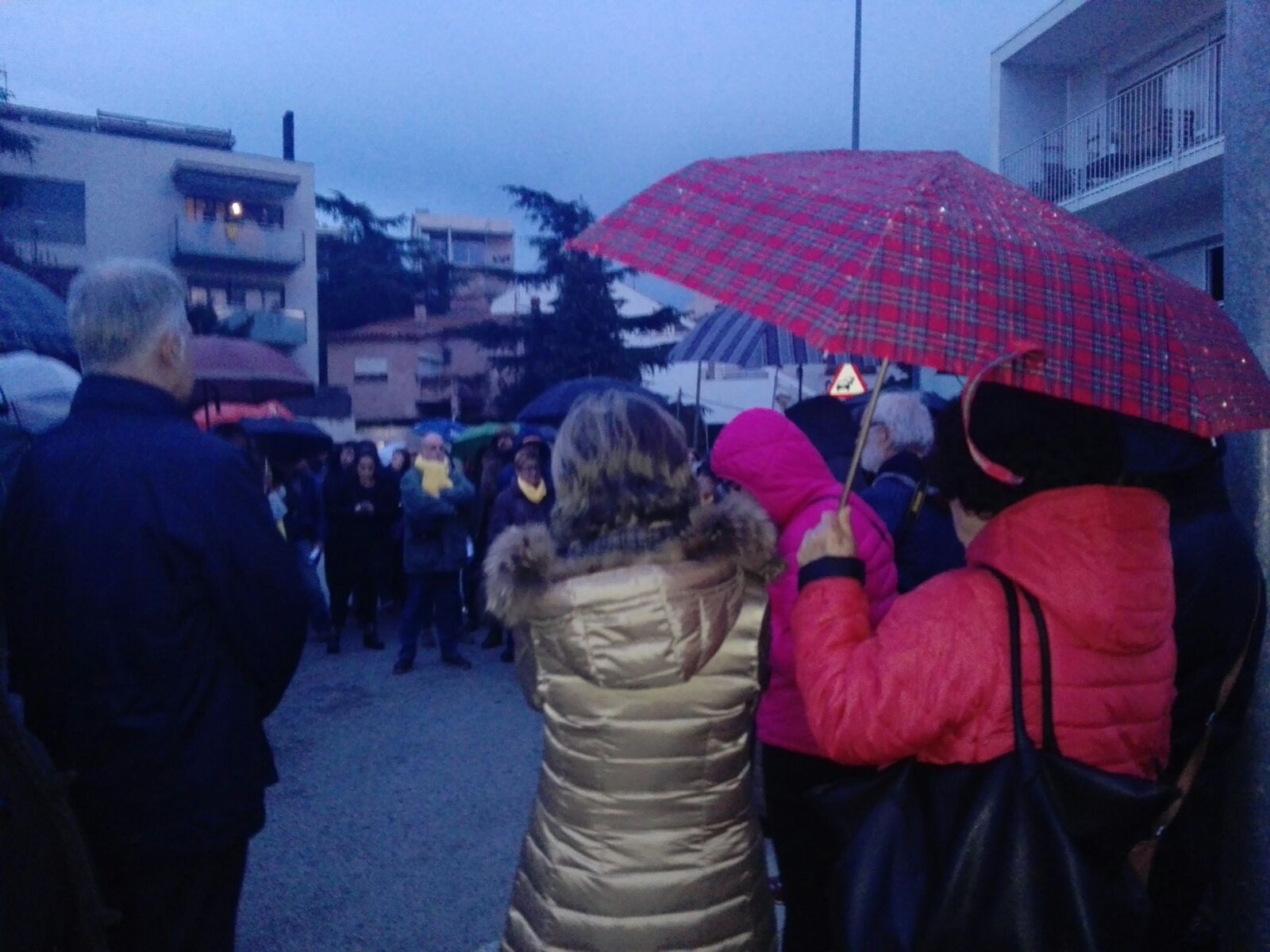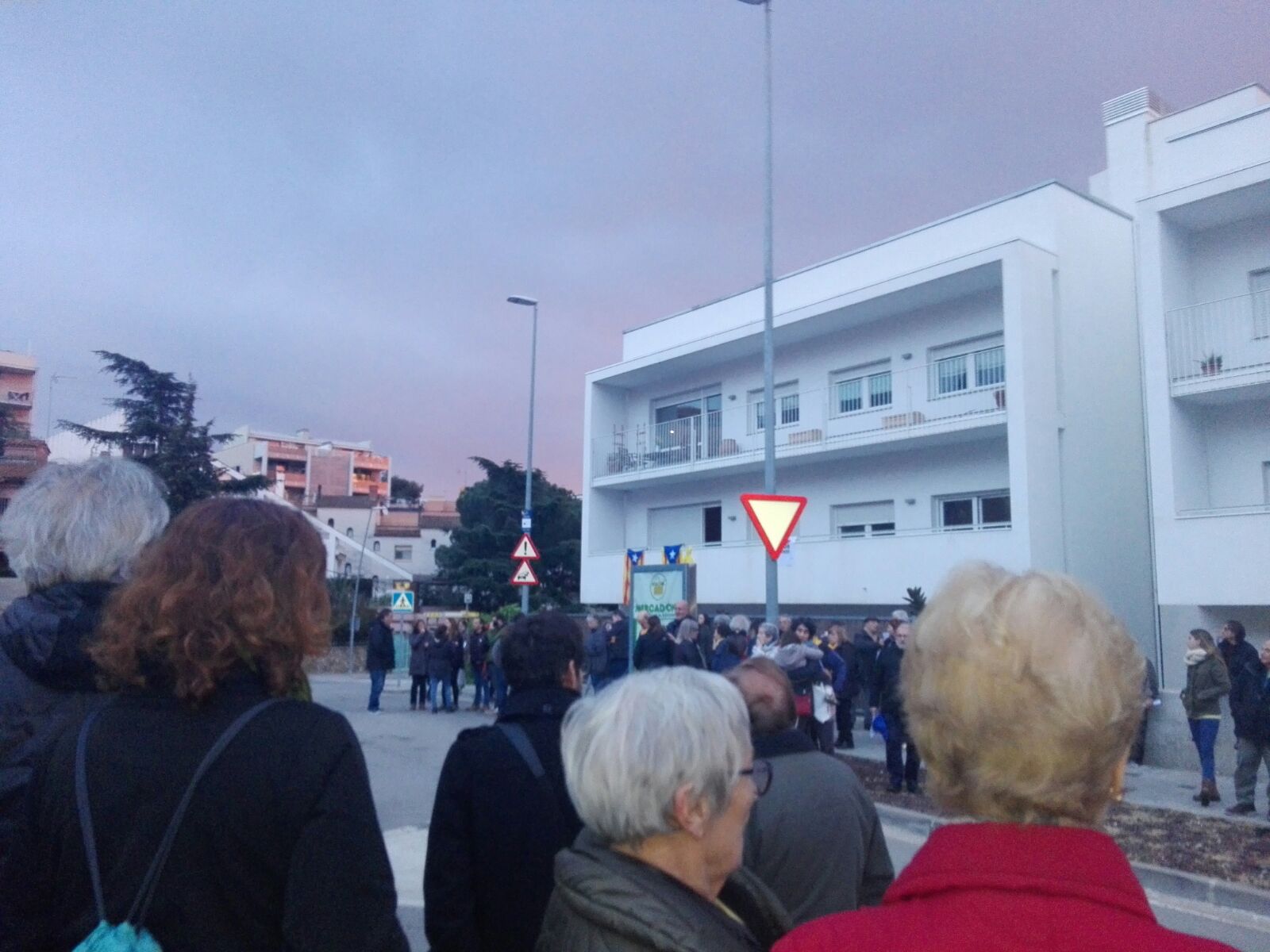 Quan ja ha arribat l’hora, la gent s’ha col·locat al mig del carrer, tallant la circulació dels cotxes que venien perpendicularment. La Policia Local ha hagut de regular el trànsit, durant l’estona que ha durat l’acte, per fer que els cotxes passessin per un sol costat de la rotonda.