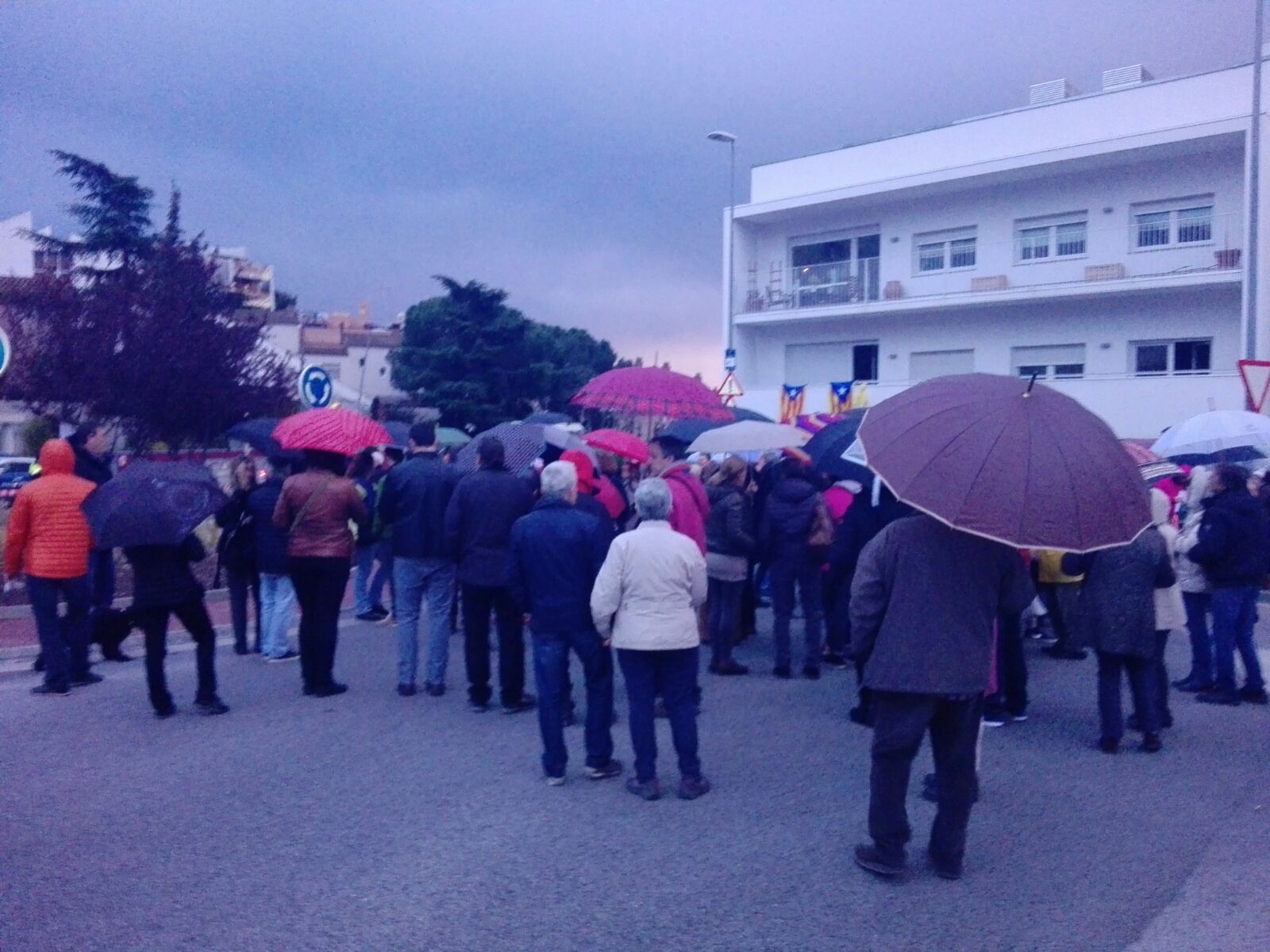 A mesura que s’anaven apropant a les vuit del vespre, els carrers circulars a la rotonda s’han començat a omplir de gent amb algun element groc a la roba i amb el paraigües o l’impermeable a sobre.