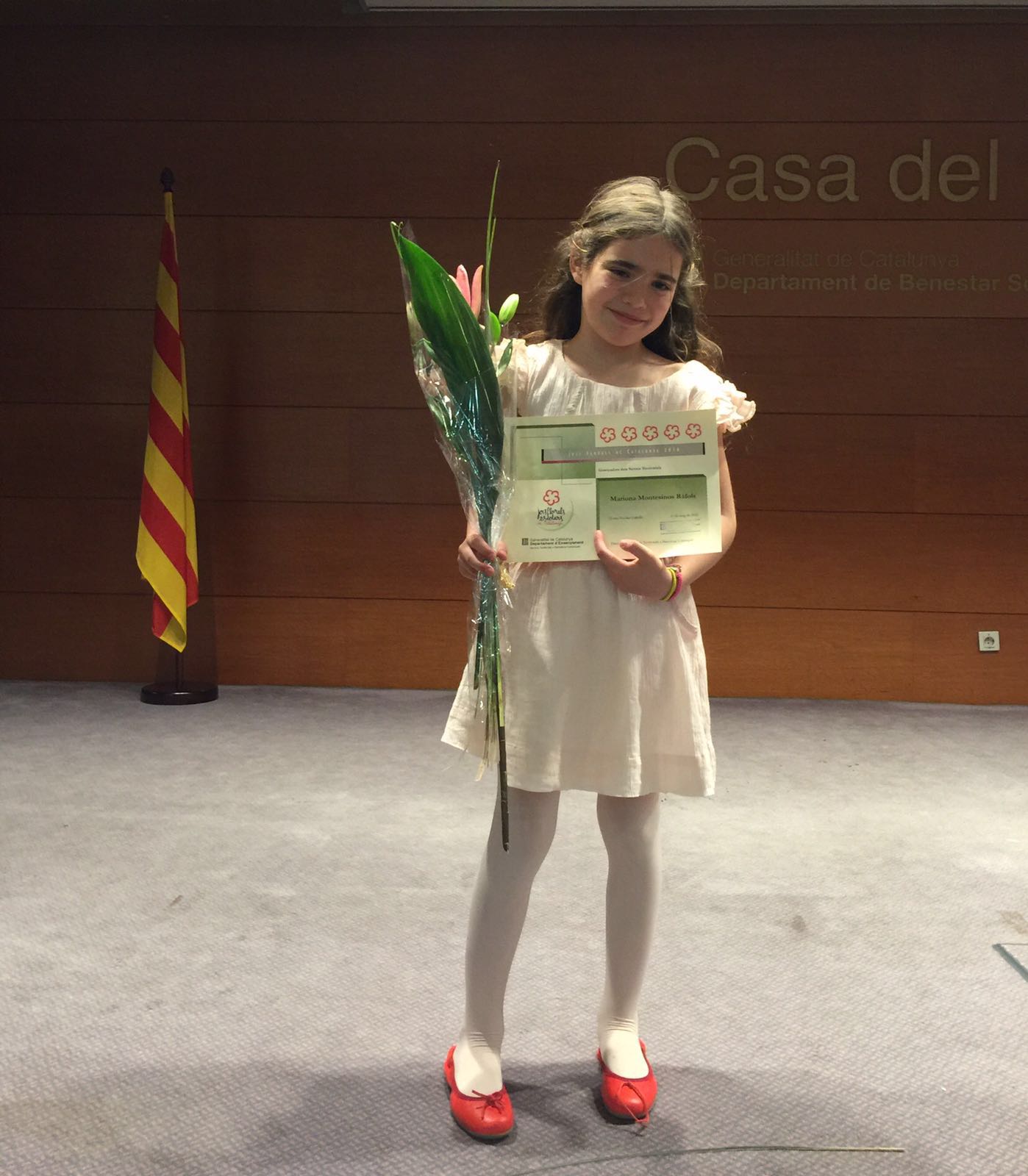 La Mariona, -la “Nona” com li diuen els que més l’estimen- va escriure un poema, “El meu pare”, que va ser un dels finalistes als Jocs Florals escolars. Va ser el més ben valorat pel jurat entre tots els poemes presentats a les comarques barcelonines. La petita escriptora ens explica com va anar la cosa: