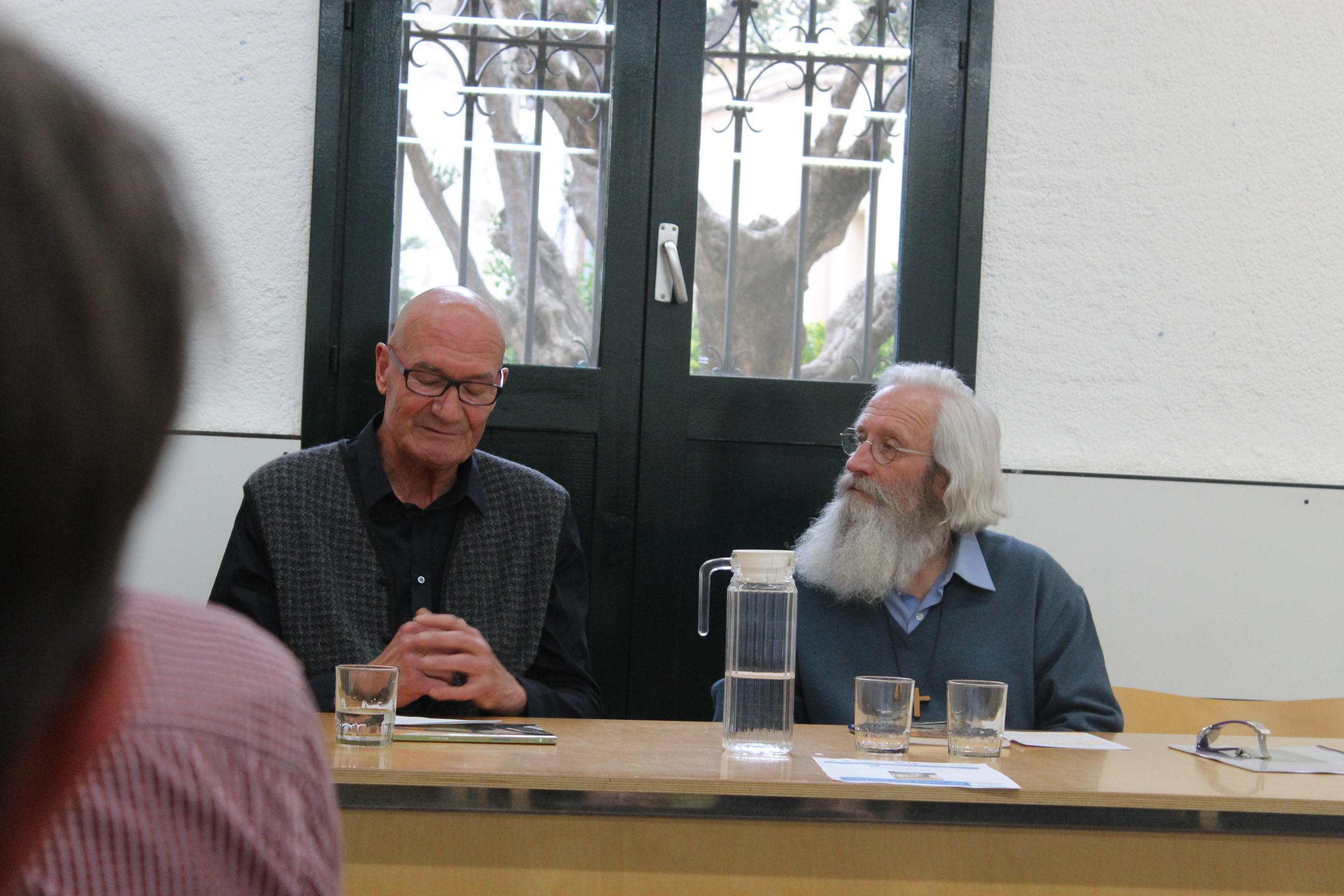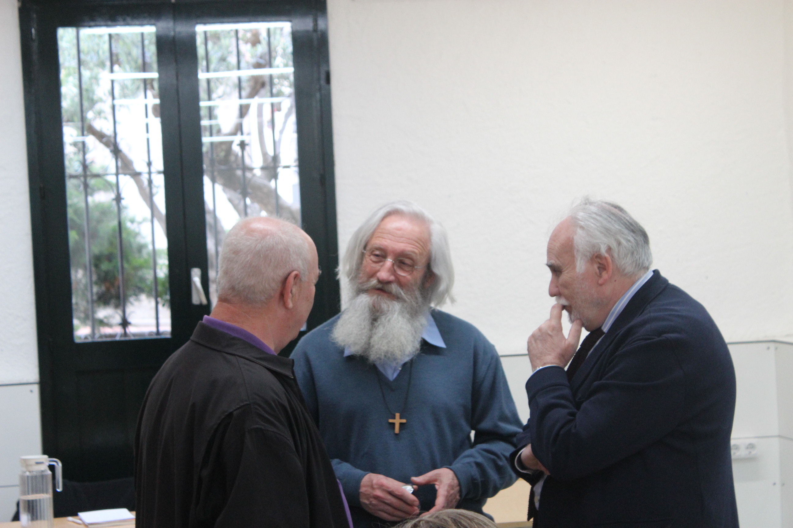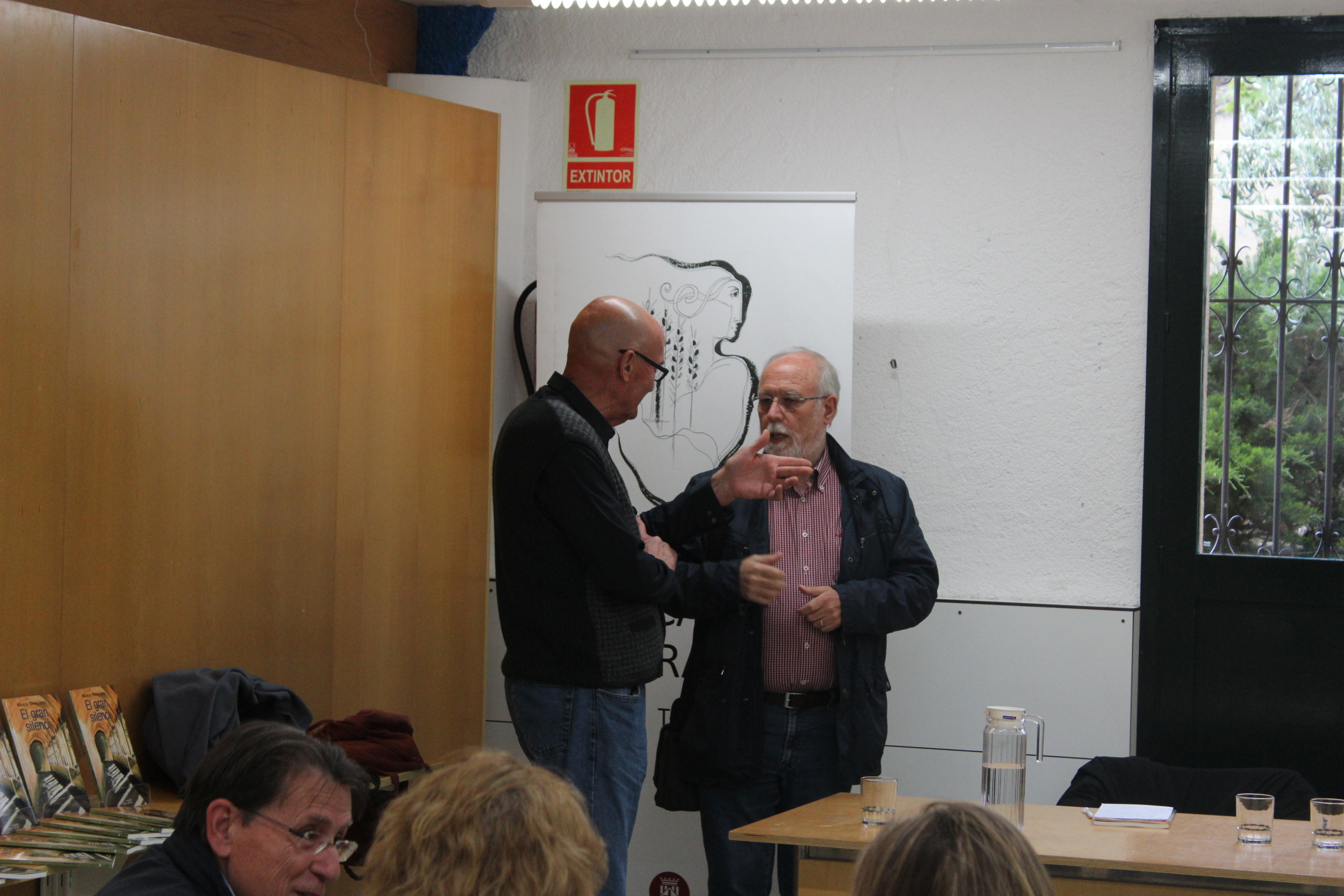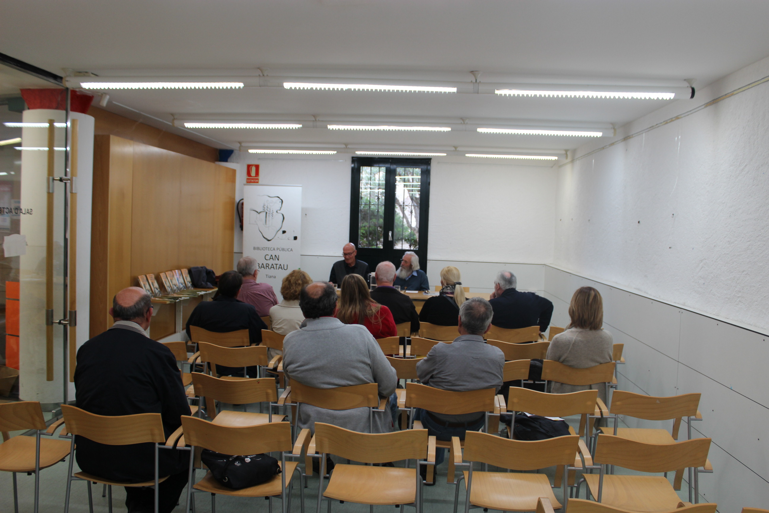 La sala acollia una desena de persones molt interessades en el tema. Volien saber quines eren les idees d’aquest antic monjo de la Cartoixa de Montalegre de Tiana, que fa més de 20 anys va decidir abandonar-la després de, segons va explicar, “un gran debat intern” ja que ho va fer deixant enrere el que ell “més estimava”. Per això ha demanat que vol ser enterrat al claustre de Montalegre. Segons ell, és casa seva. Marcel Capellades: