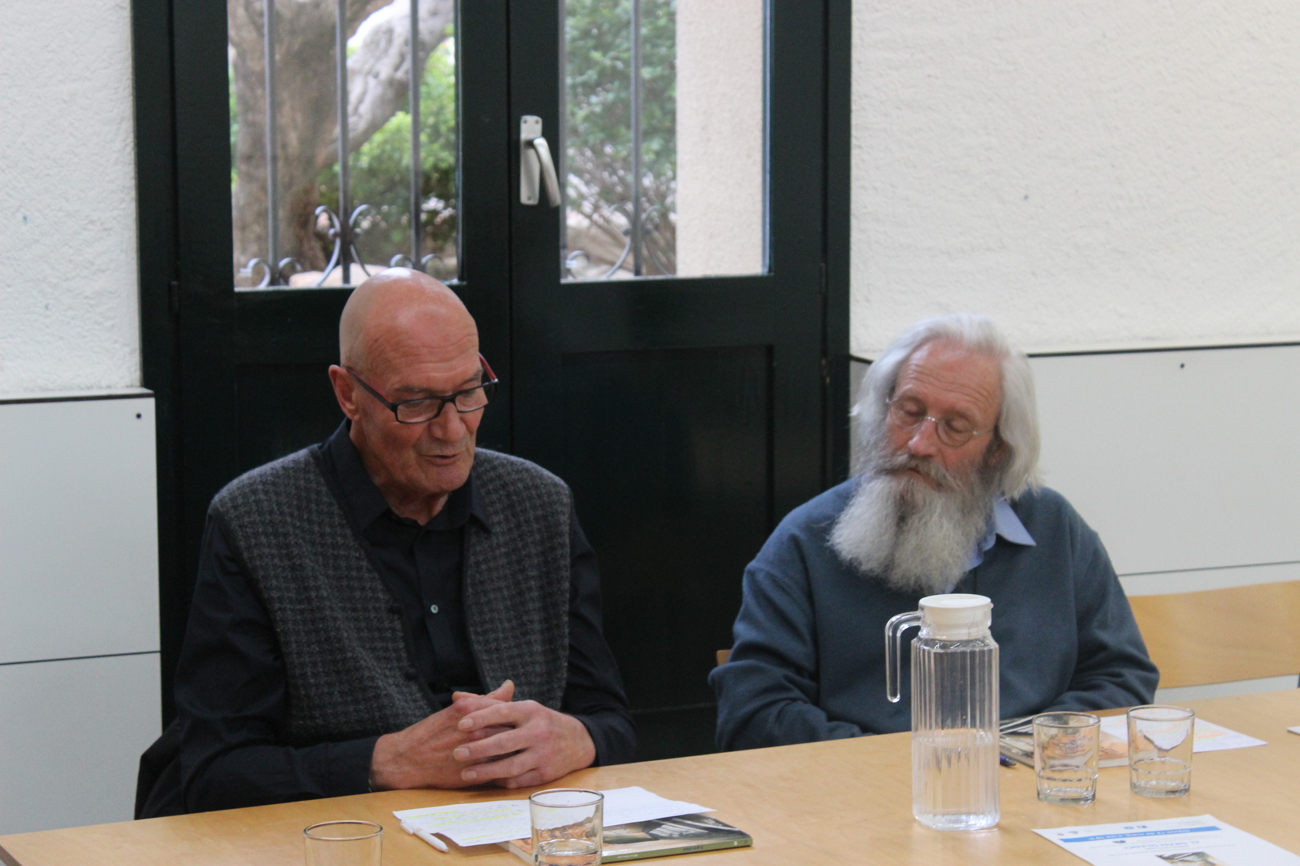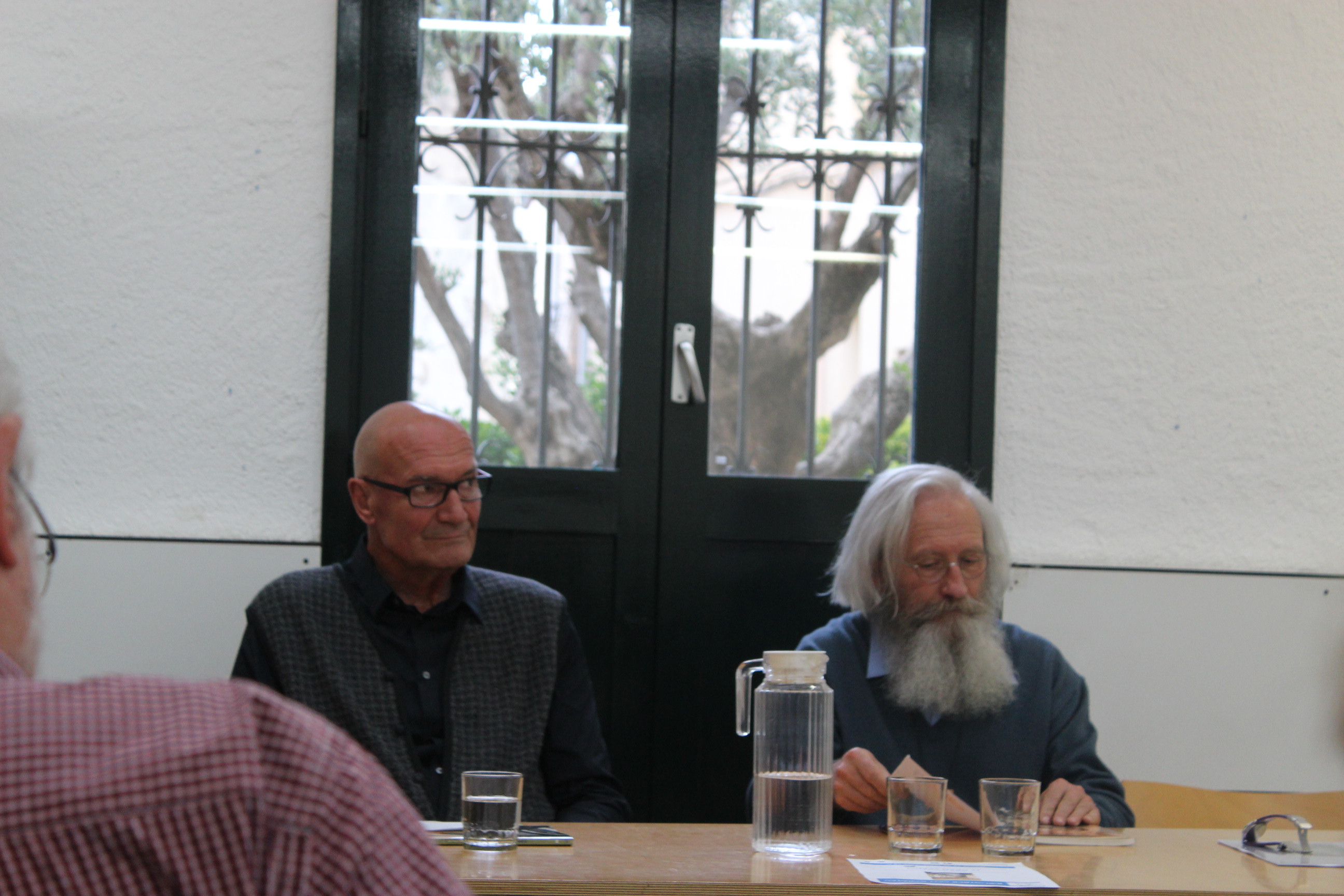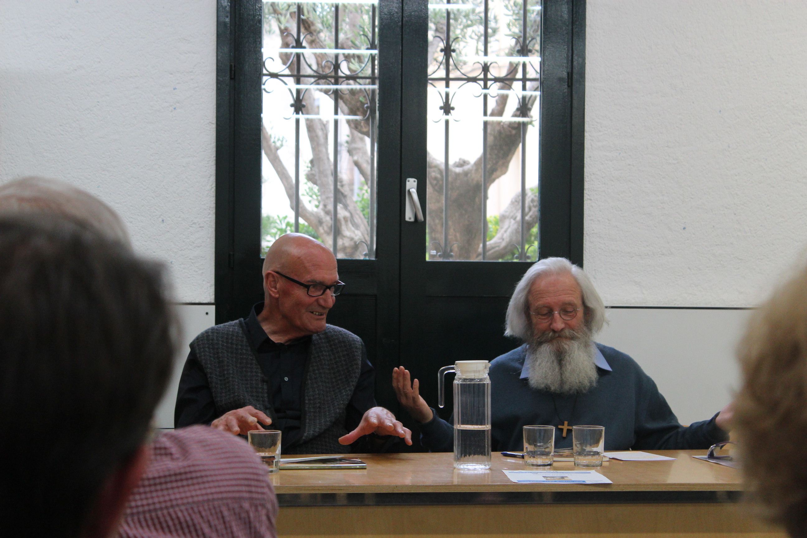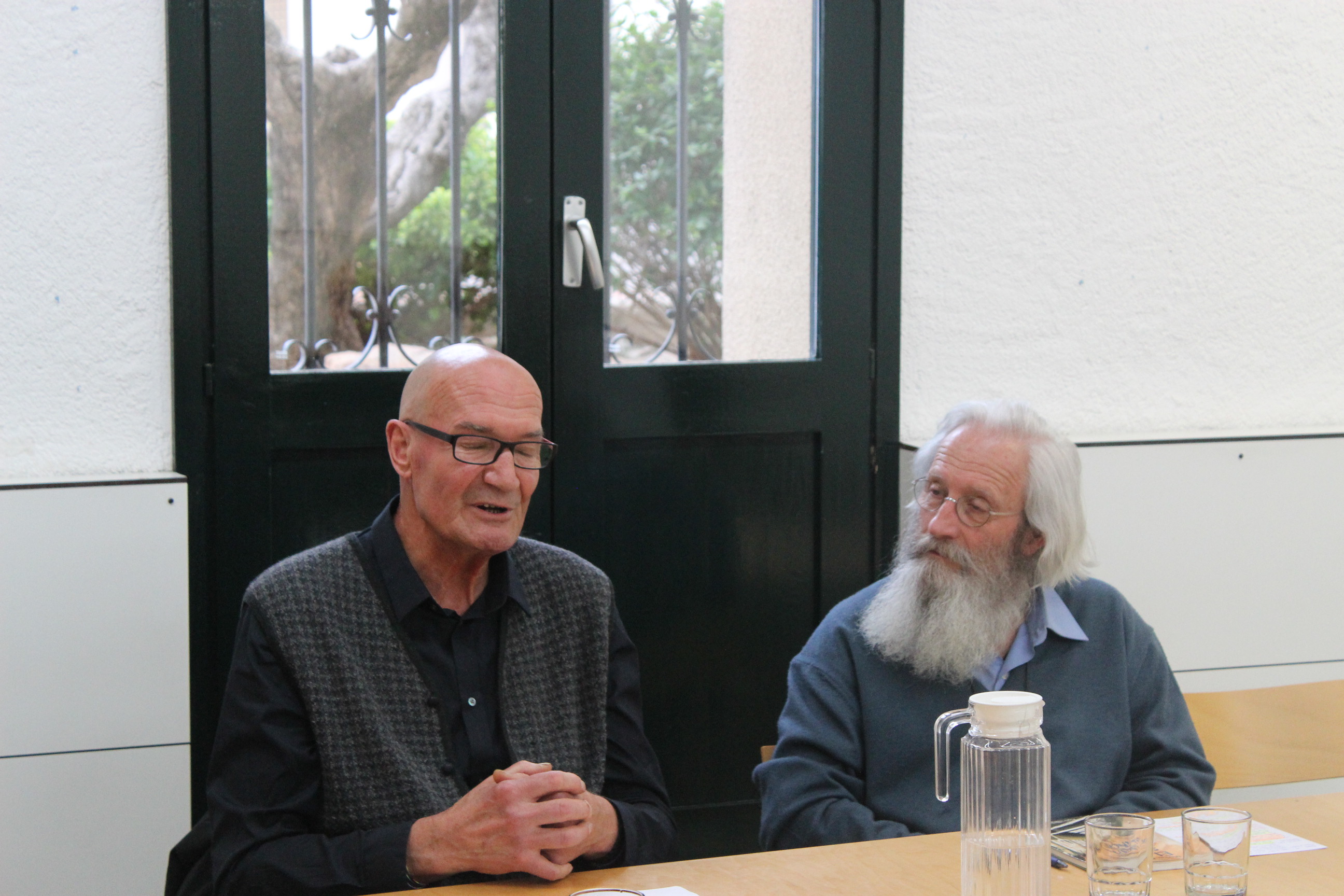 La sala acollia una desena de persones molt interessades en el tema. Volien saber quines eren les idees d’aquest antic monjo de la Cartoixa de Montalegre de Tiana, que fa més de 20 anys va decidir abandonar-la després de, segons va explicar, “un gran debat intern” ja que ho va fer deixant enrere el que ell “més estimava”. Per això ha demanat que vol ser enterrat al claustre de Montalegre. Segons ell, és casa seva. Marcel Capellades: