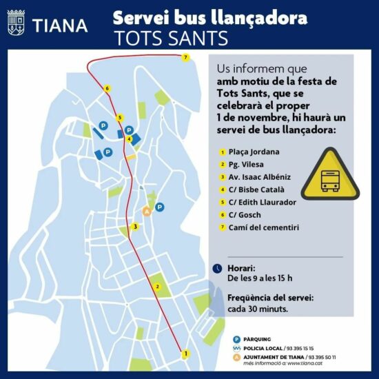 Com cada any, amb motiu del dia de Tots Sants i de Difunts, el cementiri comptarà amb personal d’atenció als usuaris per ajudar a col·locar flors en els nínxols més alts i un servei d’autobús gratuït de nou del matí a tres del migdia. L’autobús té parada d’inici i final a la Plaça Jordana i arriba fins al cementiri amb parades al Passeig de la Vilesa, Avinguda Isaac Albéniz, i Edith Llaurador.