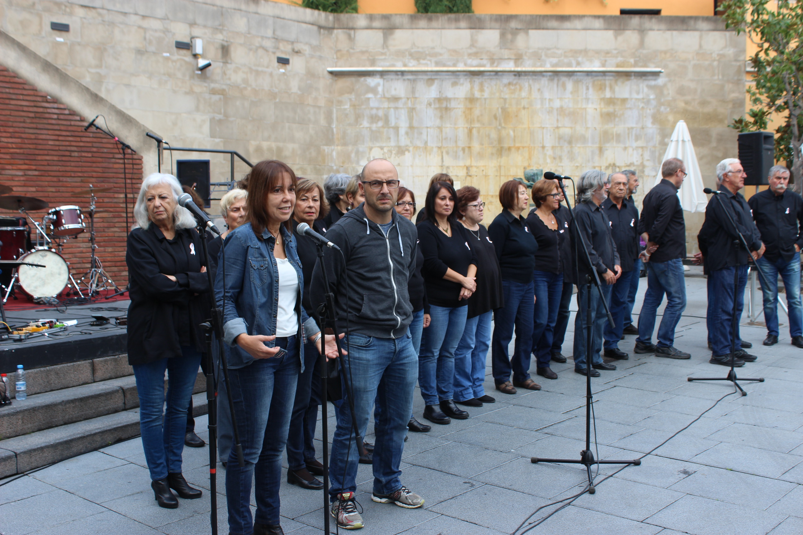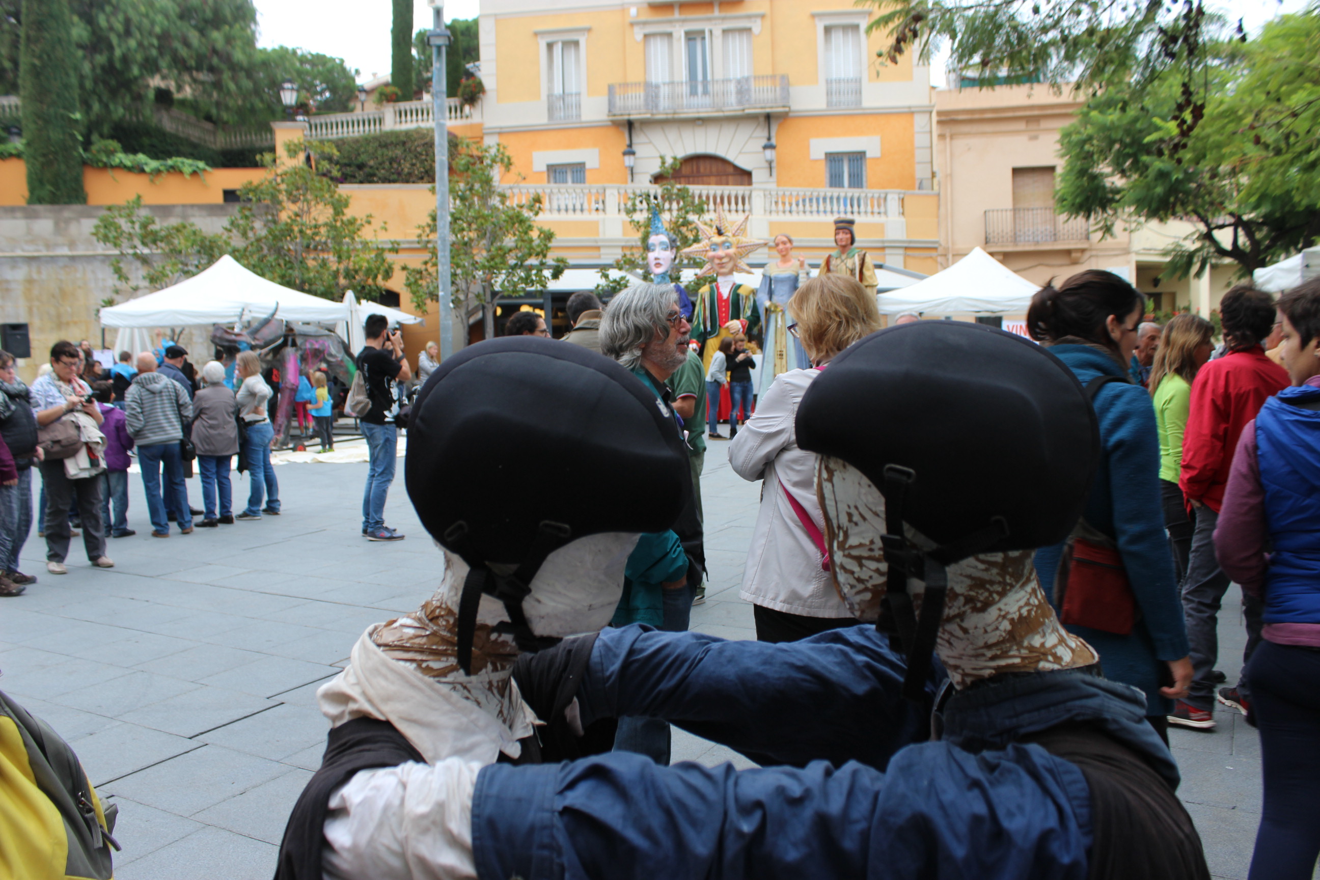 A la plaça de la Vila s’han congregat diverses entitats com l’escola d’adults Timó, els Amics de la Sardana, el Cau, Castellers de Badalona, el corus o els Gegants, entre d’altres.