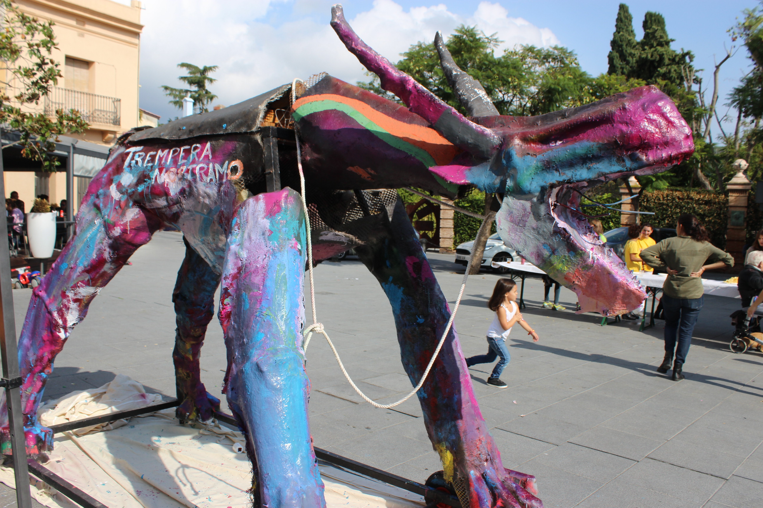 Trempera Nostramo ha estat una de les entitats que ha participat al Correllengua 2016. Ha portat la Draga per fer una activitat amb la quitxalla: pintar la Draga amb esprais.