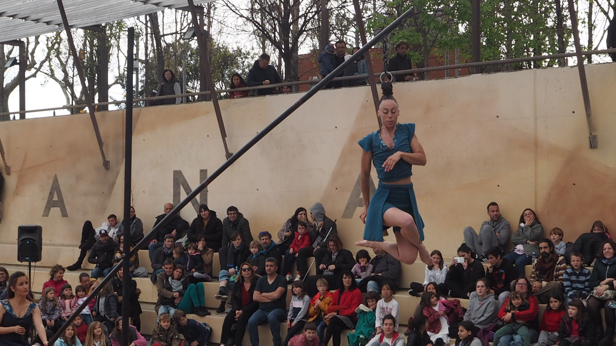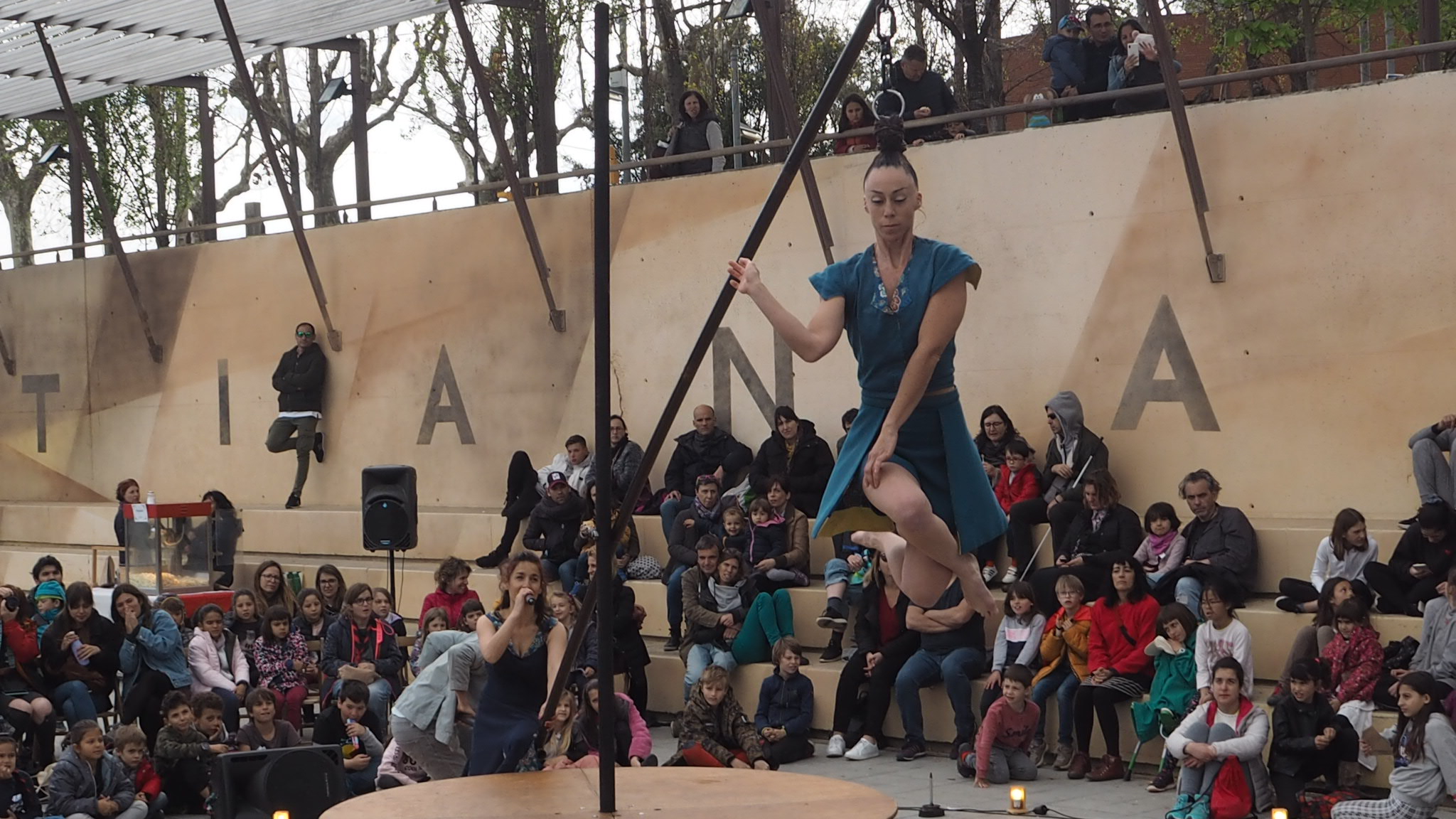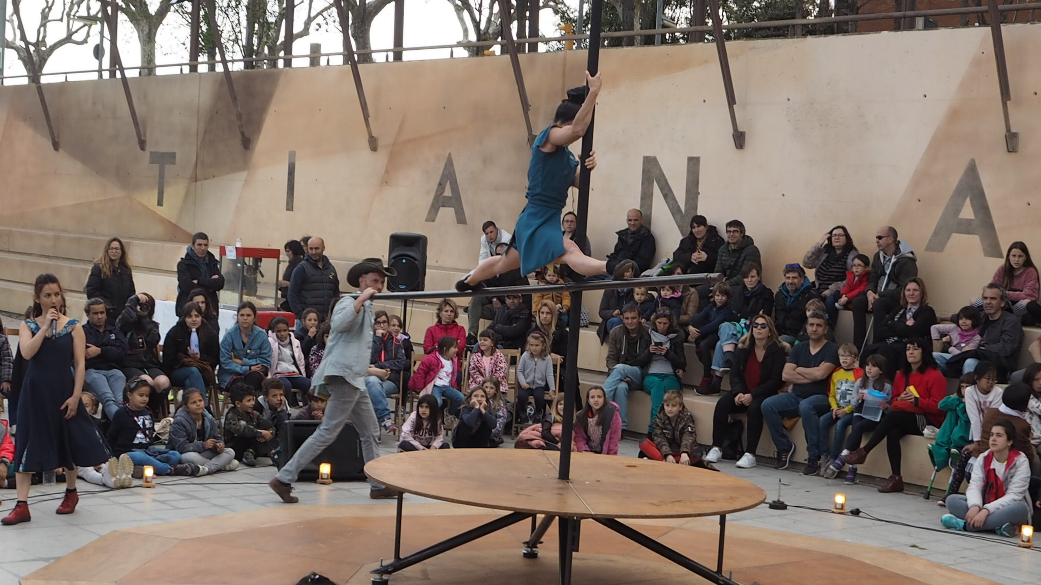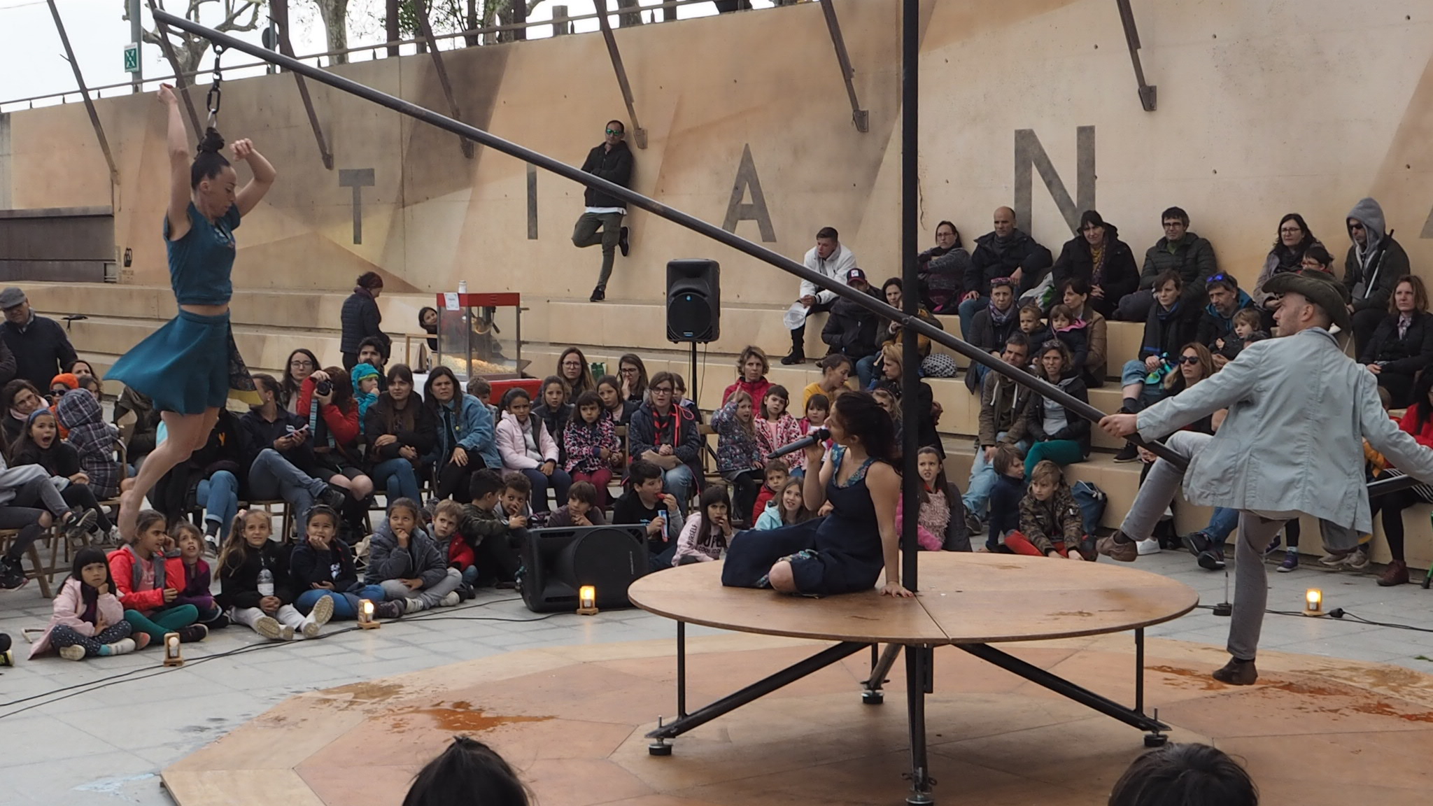 Aquesta dissabte el grup de Mumusic Circus ha fet una actuació en motiu del Dia Mundial del Circ. En aquest cas han fet el seu show “Flou Papagayo”. Es tracta d’un espectacle molt entretingut visualment, on una de les artistes fa suspensió capil·lar. En Marçal, director i artista del grup, explica què pretenen amb les seves actuacions: