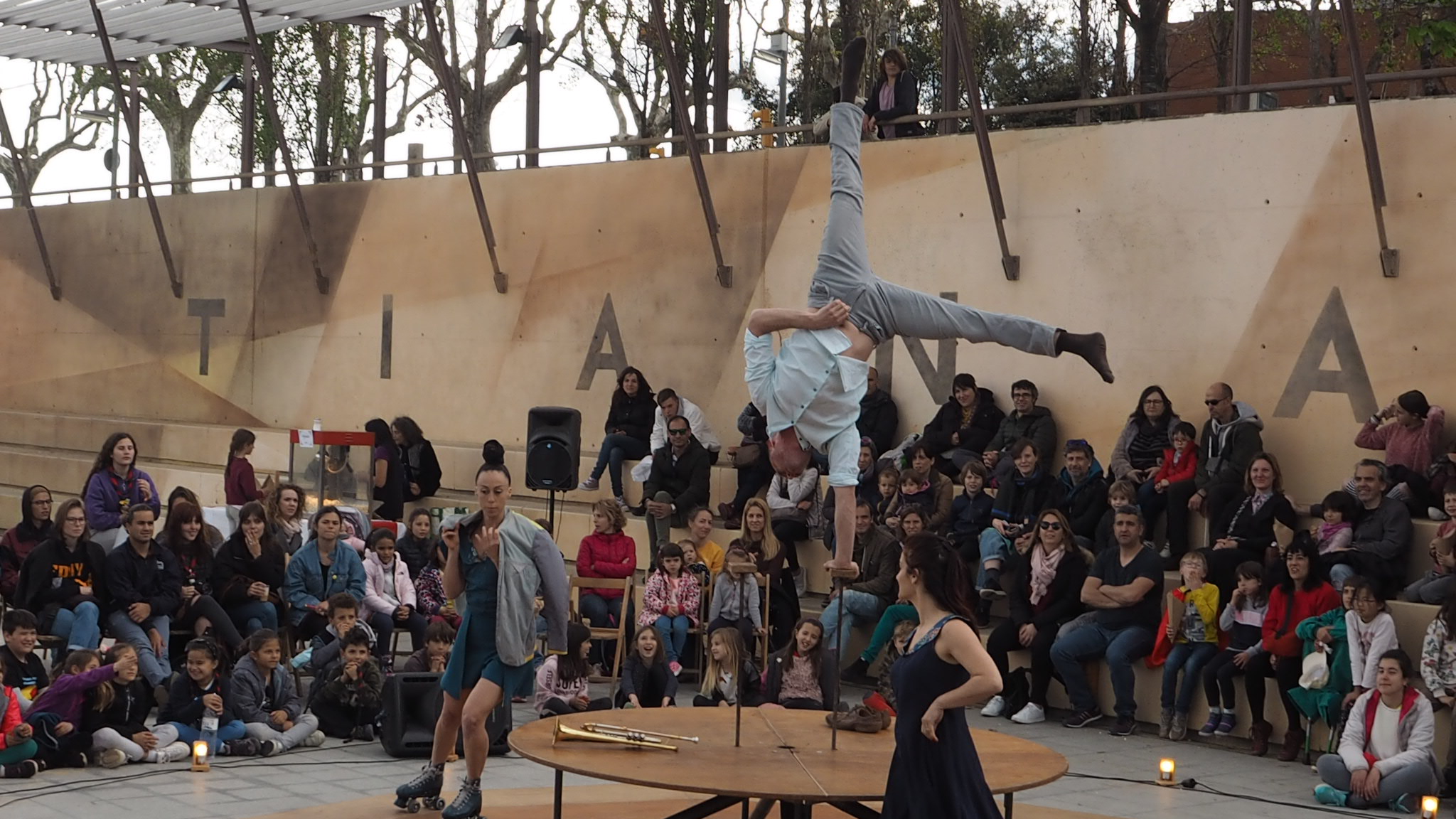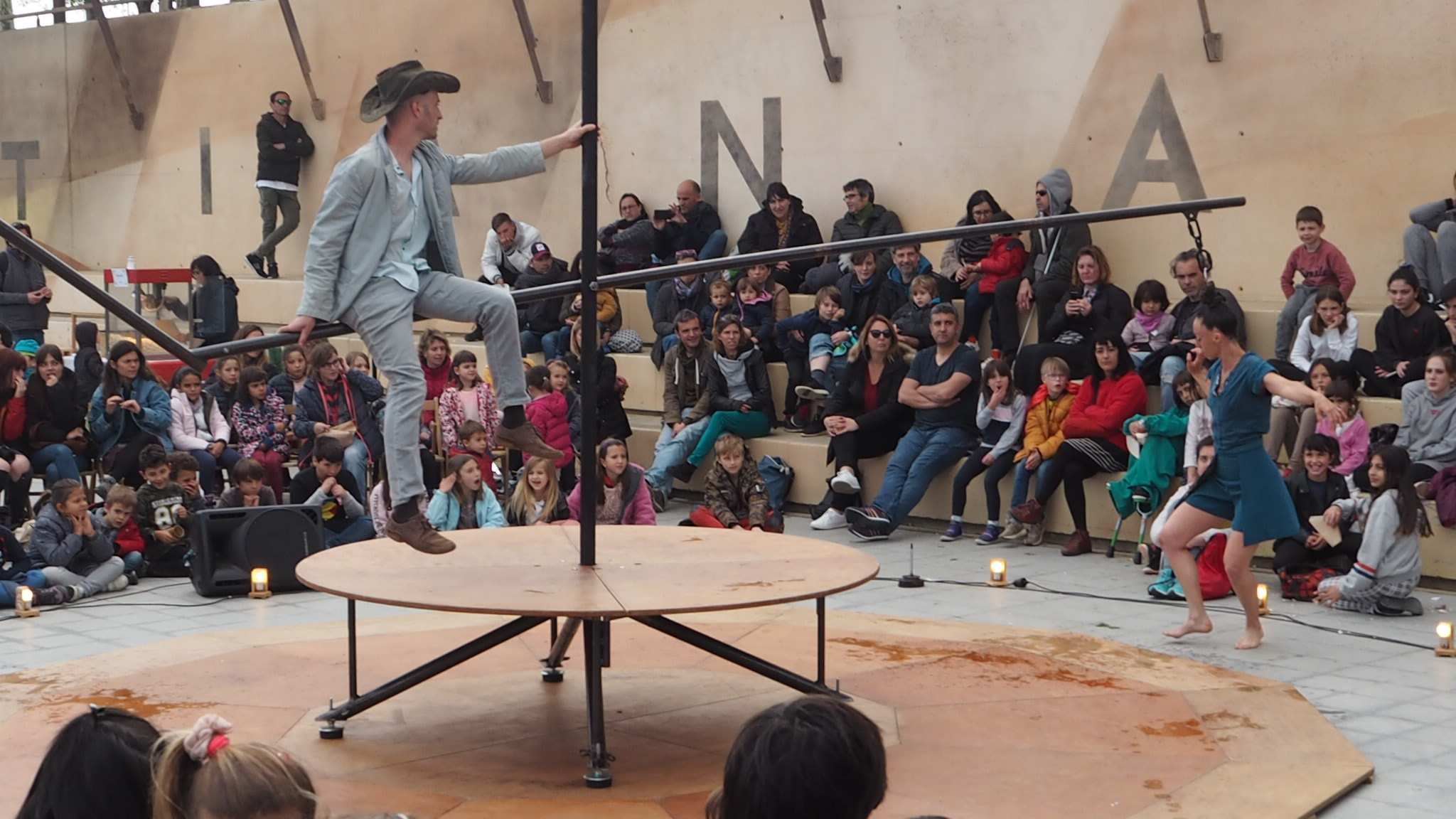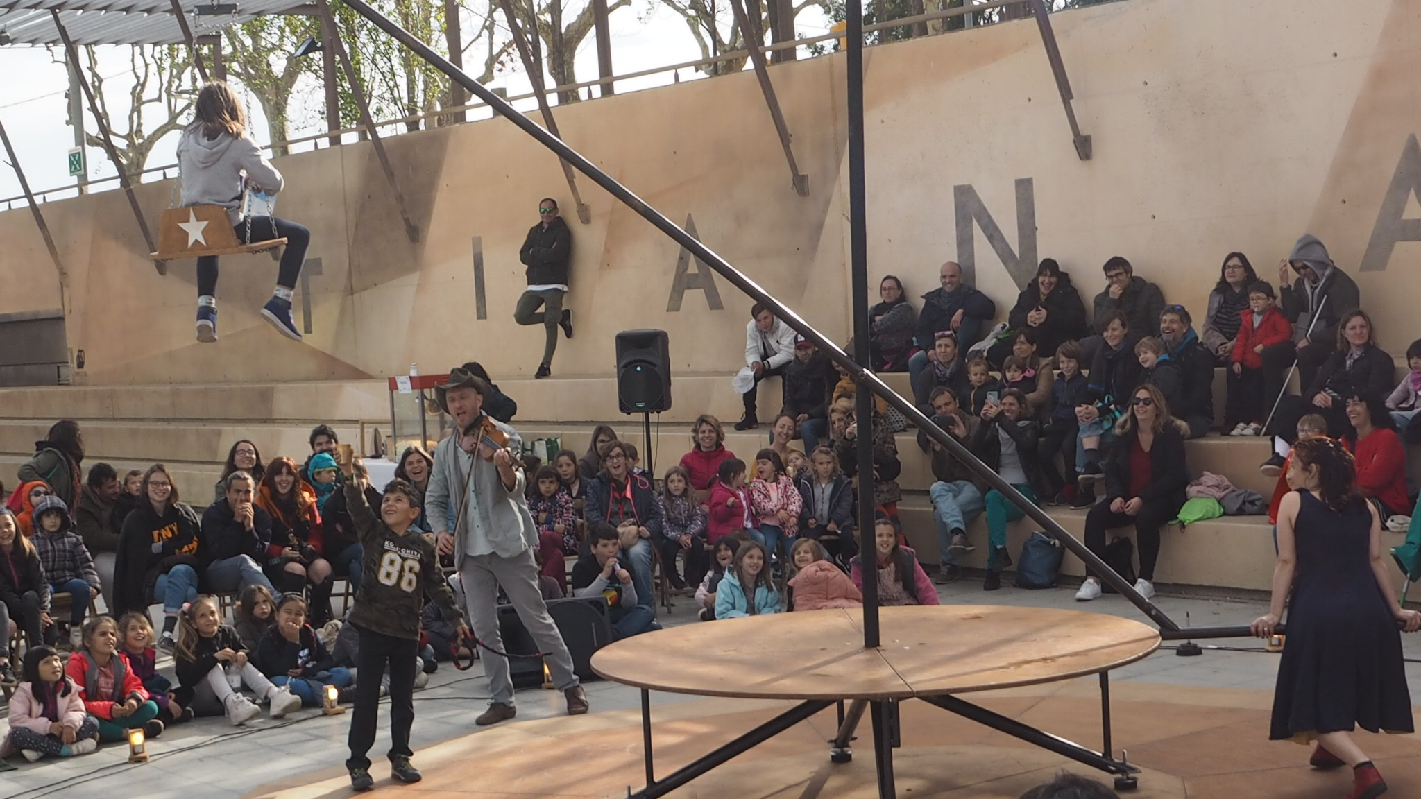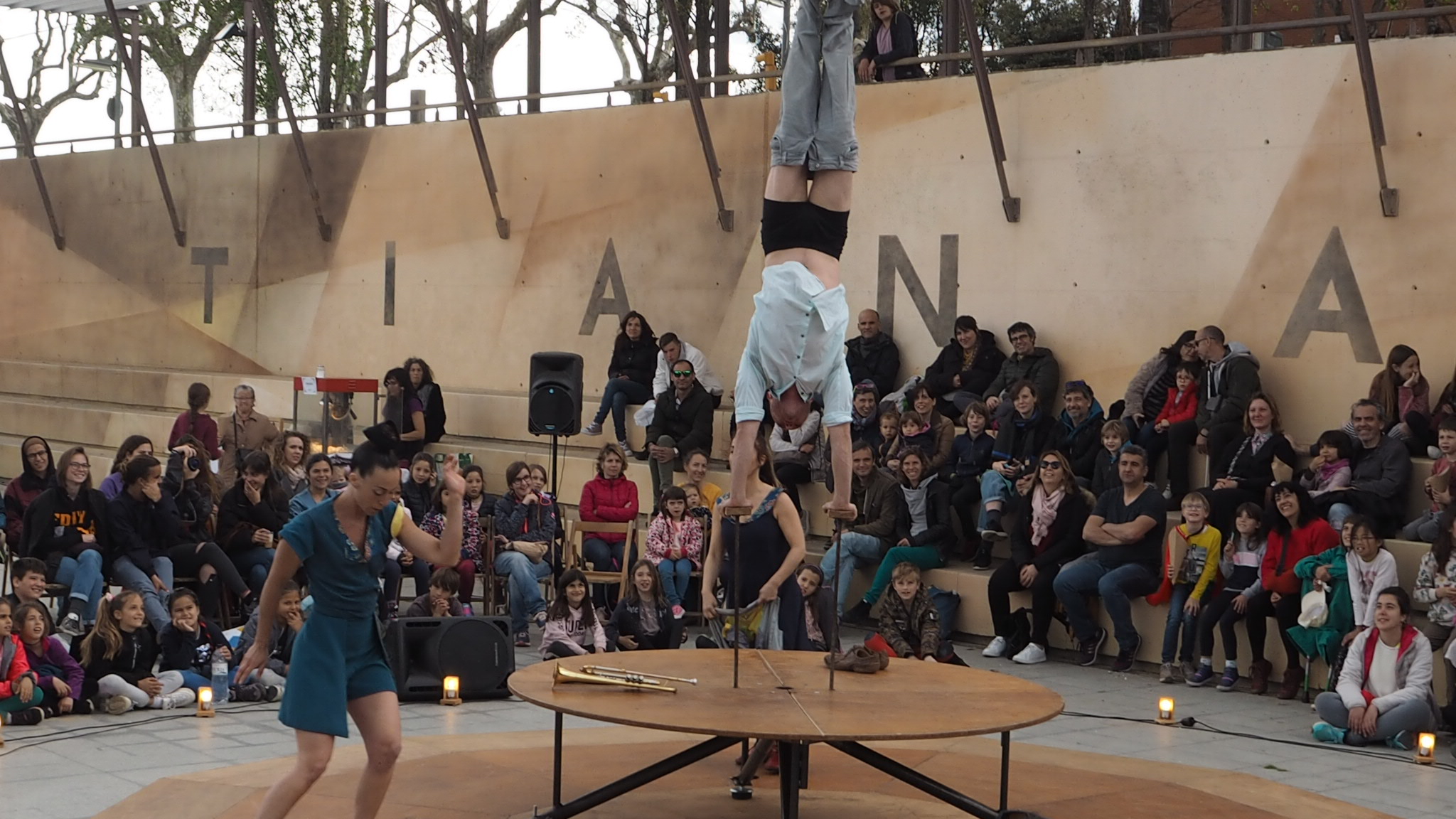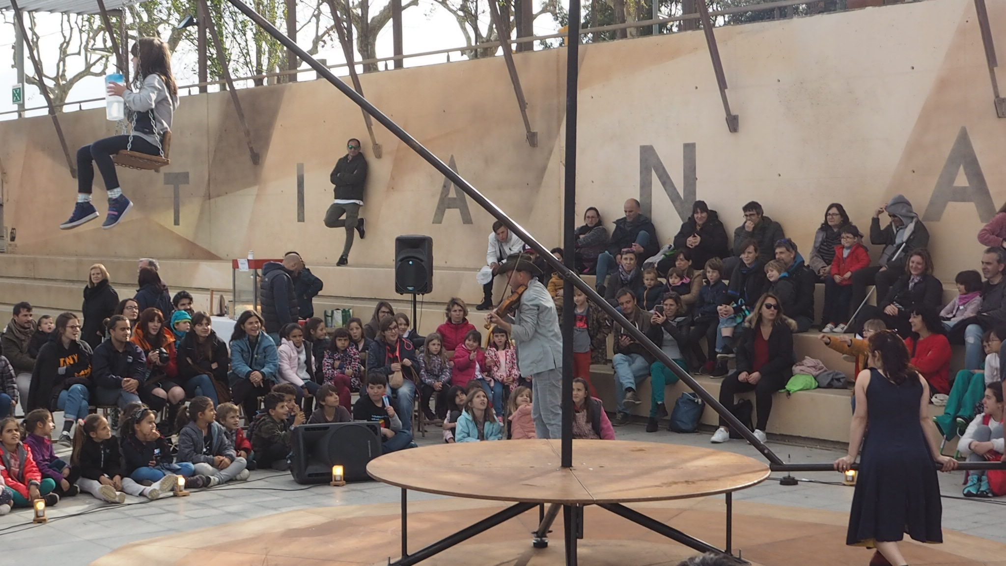 Aquesta dissabte el grup de Mumusic Circus ha fet una actuació en motiu del Dia Mundial del Circ. En aquest cas han fet el seu show “Flou Papagayo”. Es tracta d’un espectacle molt entretingut visualment, on una de les artistes fa suspensió capil·lar. En Marçal, director i artista del grup, explica què pretenen amb les seves actuacions: