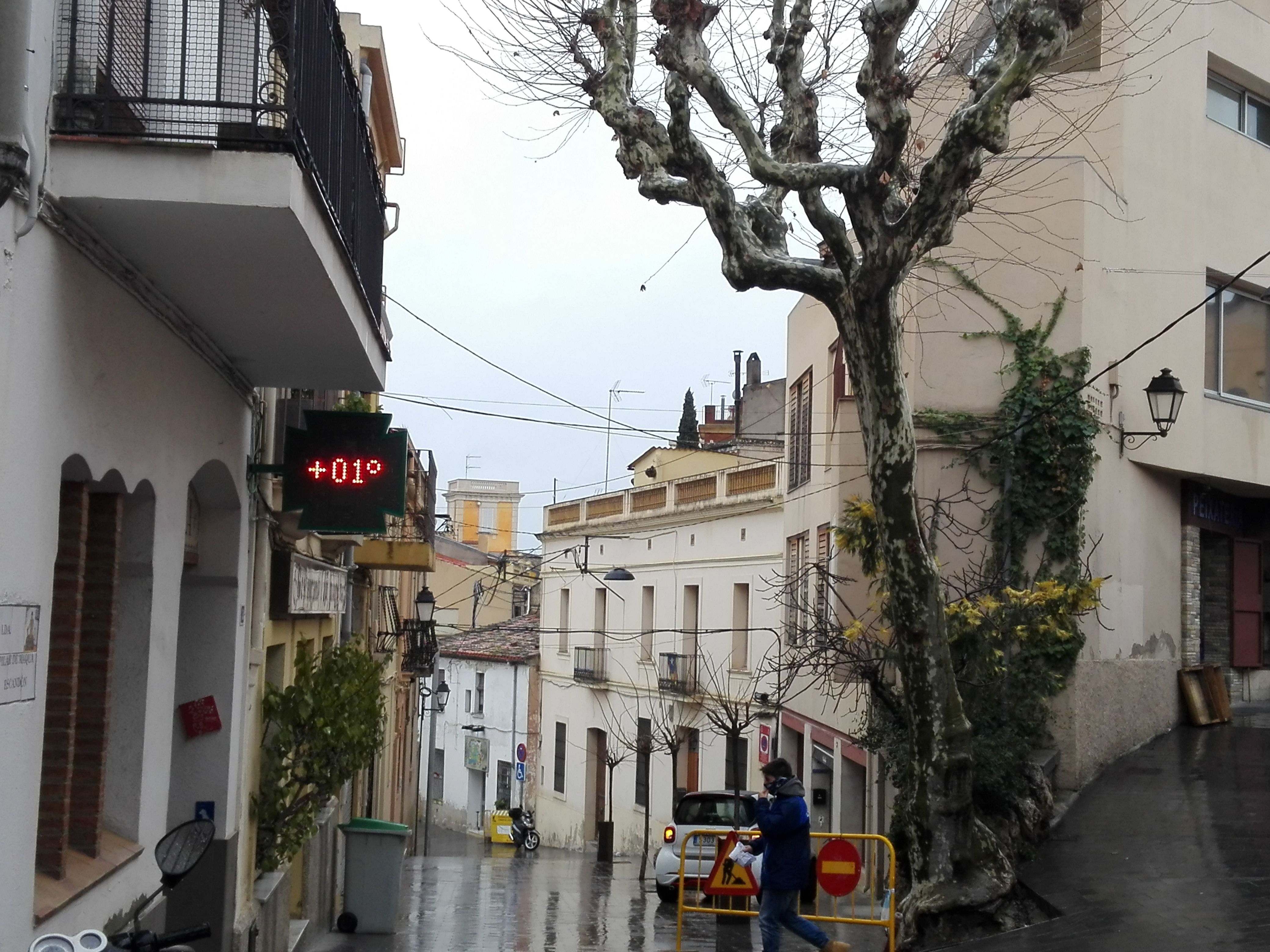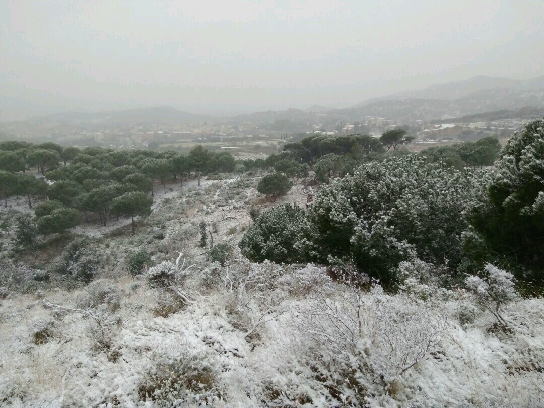 Finalment, la nevada no ha agafat a cap lloc del poble ni tan sols al barri d’en Gosch. Tampoc a la zona poliesportiva on, malgrat tot, l’enfarinada sí que era a tocar: la Font de l’Alba o l ‘Observatori Astronòmic s’han llevat emblanquinats per una neu que abans de migdia ja s’havia fos sota la pluja.