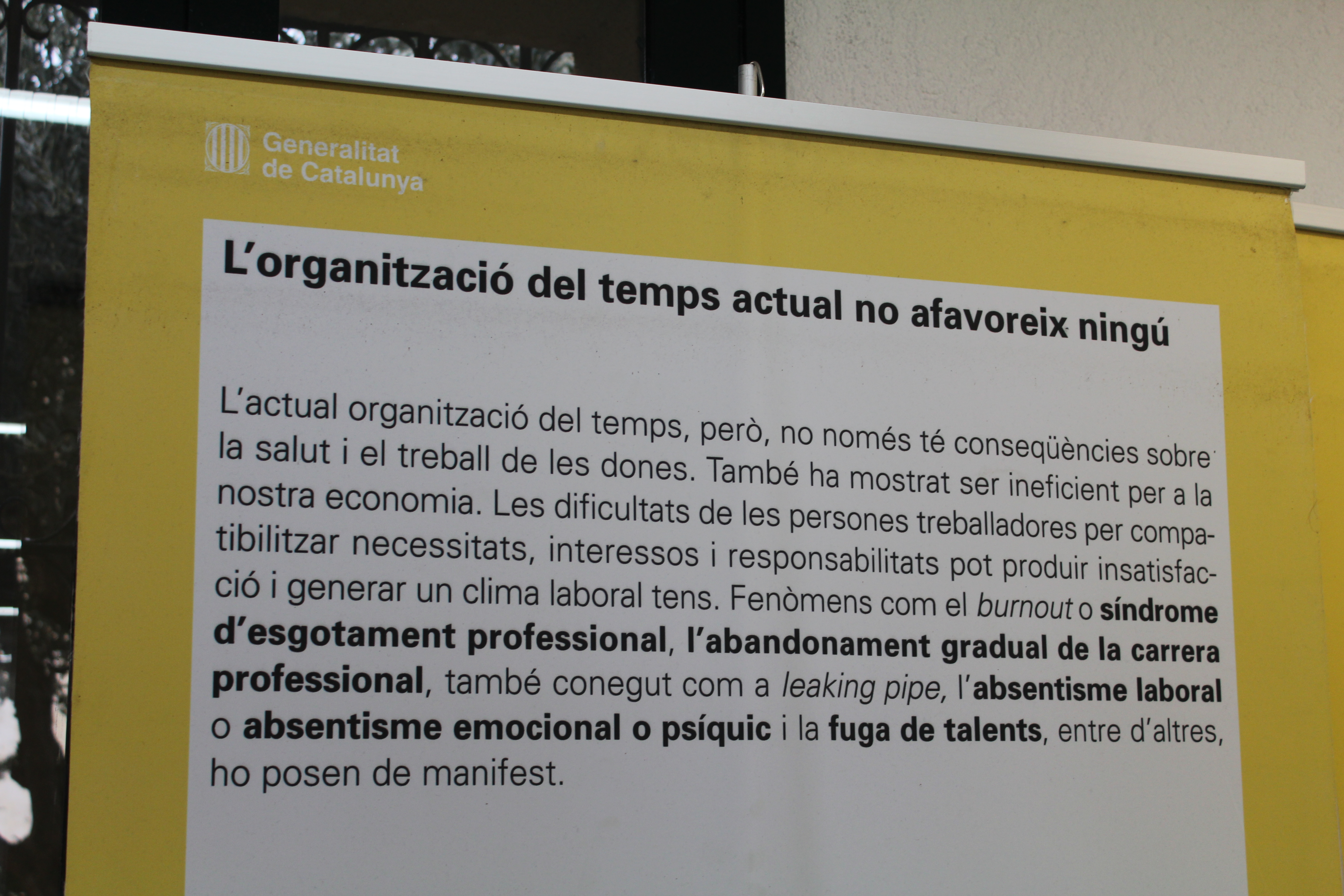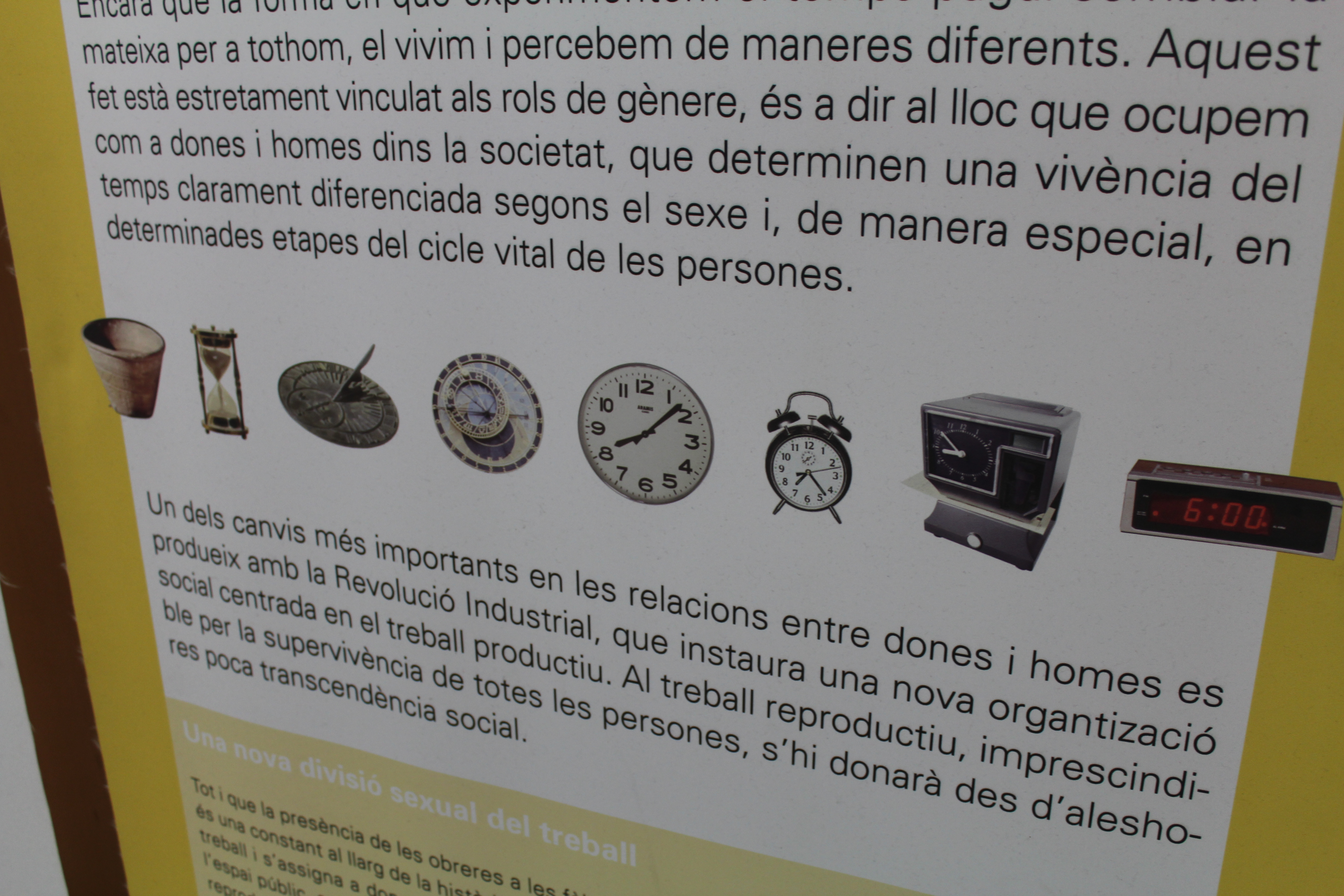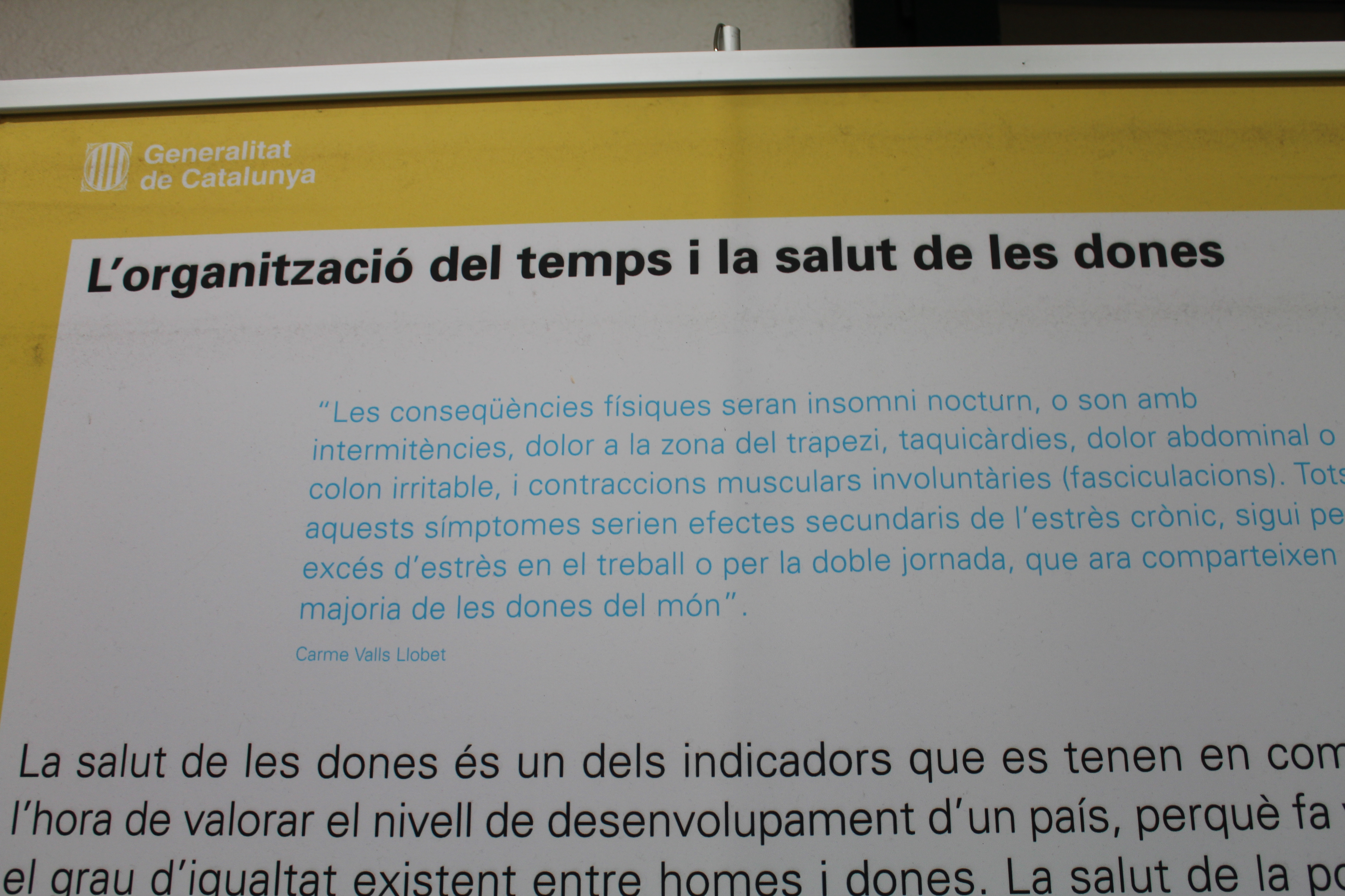 Aquests dies podem visitar a la biblioteca una exposició que ens convida a reflexionar sobre l’organització del temps a la vida de les dones i els homes. Ens parla de les dificultats per harmonitzar la vida personal, laboral i familiar, en un temps on les dones s’han incorporat al mercat de treball. “Quin temps tenim” creu que els rols tradicionals de gènere que assignaven les tasques de reproducció i sosteniment ja no tenen vigència. Aquesta exposició de l’Institut Català de la Dona es pot veure a Can Baratau fins el proper 20 de novembre.