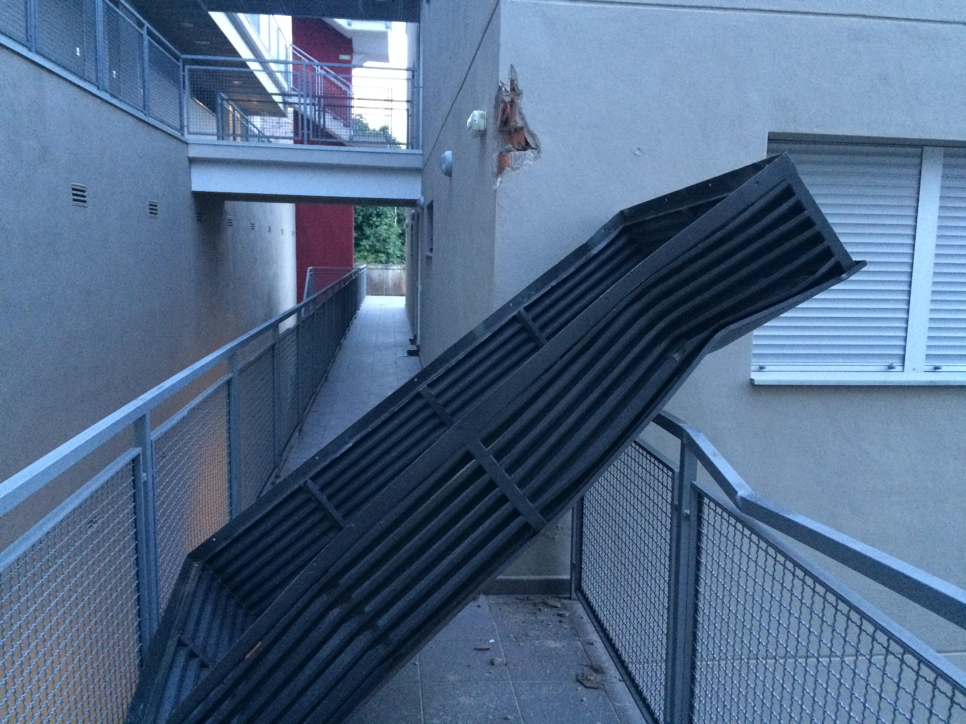 Veïns dels pisos de protecció oficial de Can Gaietà denuncien que, com a conseqüència del vent, fa dues setmanes va caure una tapa metàl.lica de 100 kg de pes a un dels passadissos que porta als pisos