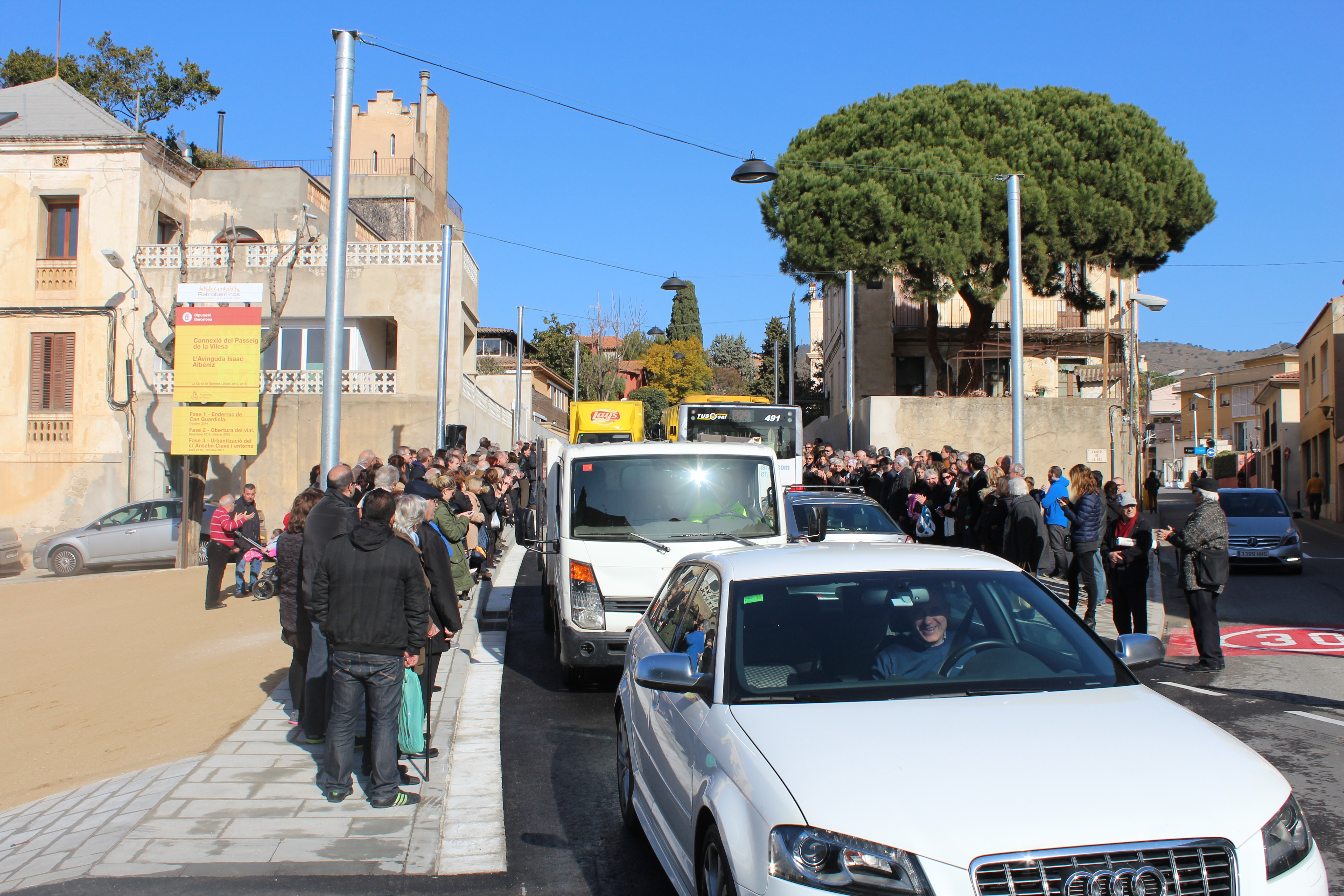Un autobús de Tusgsal ha estat el primer en passar-hi. El nou tram de carretera ja està obert al trànsit. L’obertura del Passeig de la Vilesa està acabada. L’alcaldessa de Tiana, Esther Pujol, ha celebrat aquest fet. Ha qualificat aquesta actuació d’”històrica”.