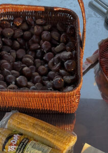 La parada ofereix castanyes, moniatos i blat de moro i és un punt de visita obligat per als tianencs. Hem preguntat pel secret per aconseguir que el fruit surti tan bo, i el venedor, en Jonatan, explica que cal deixar-les fer “en su punto“. El mètode requereix temps, ja que cal “estar aquí rato” i evitar la pressa.