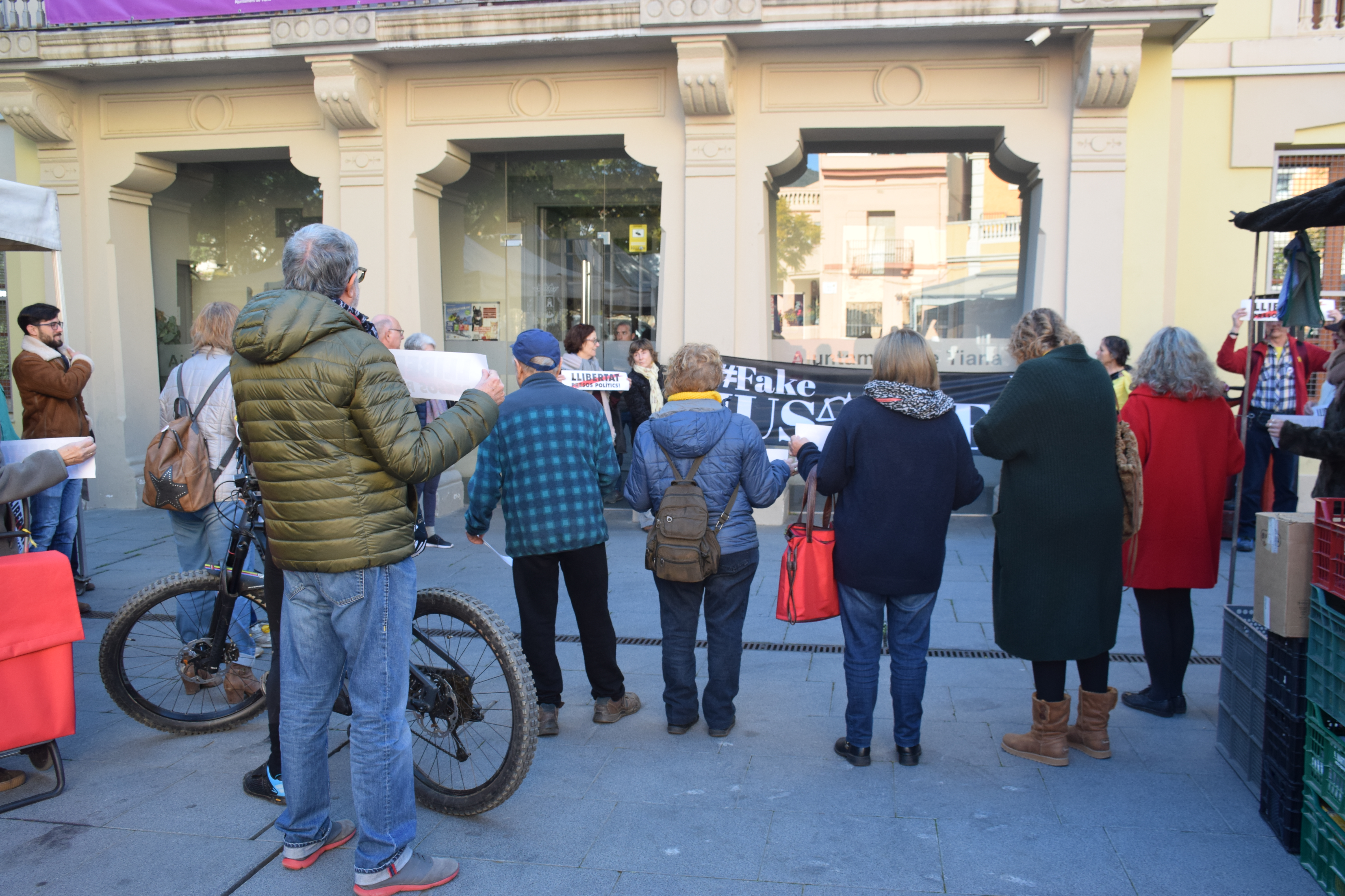 Precisament perquè avui ha sigut el tret de sortida a aquesta causa judicial serà el dia on es concentraran més accions. A més a més de l’acció d’Òmnium Tiana, a les 12 del migdia ha tingut lloc una aturada davant dels llocs de feina. La Cel·la Fort, de l’ANC Tiana, ho explica: