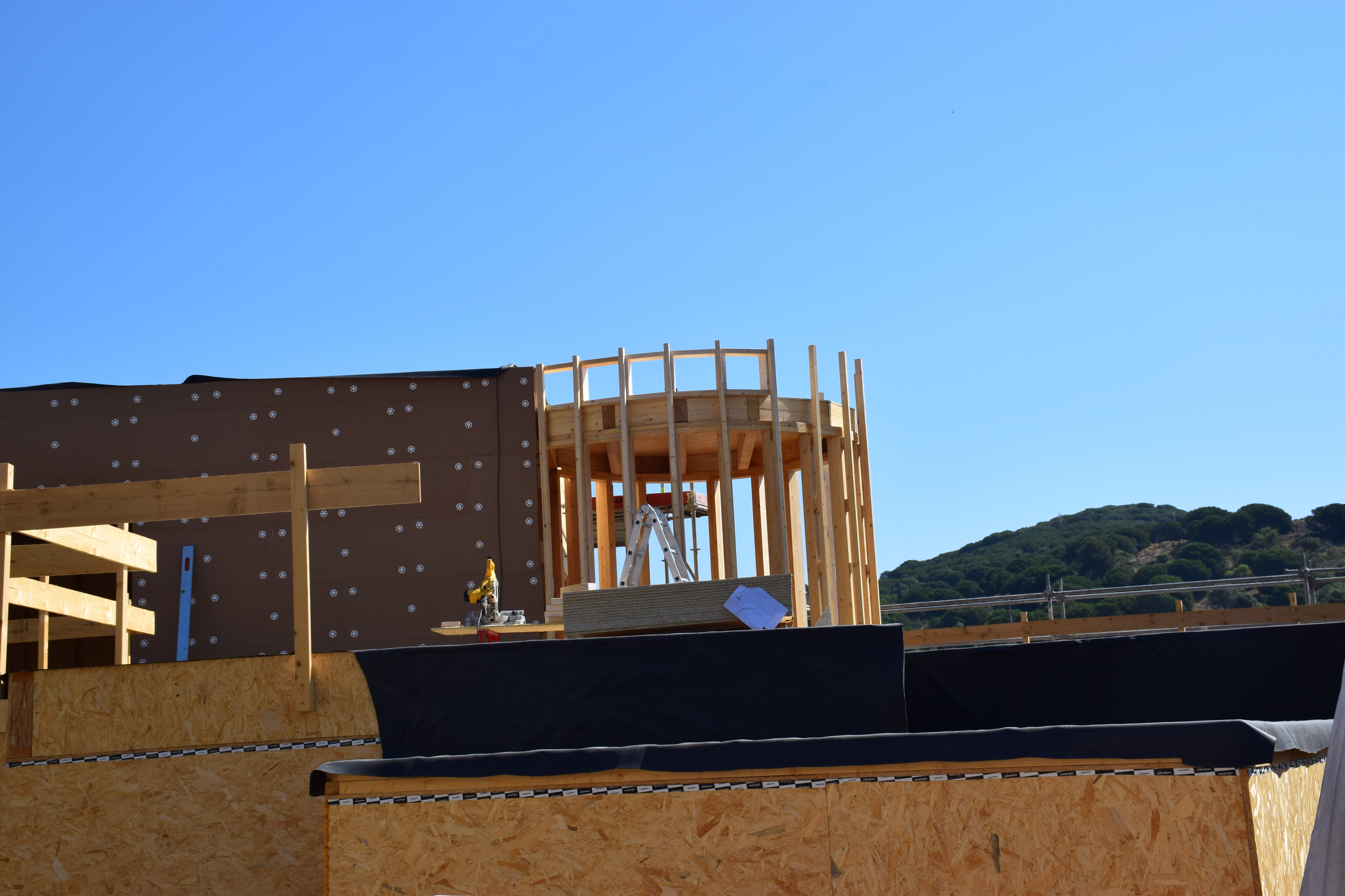 La trencadora casa del carrer Vistalegre té dues parts: la humida, que és la que queda semisoterrada i quasi no es veu (que fa servir formigó i pedra), i la part seca, que és aquella que quedarà a la vista. Aquesta és la que, essencialment, es composa de fusta: