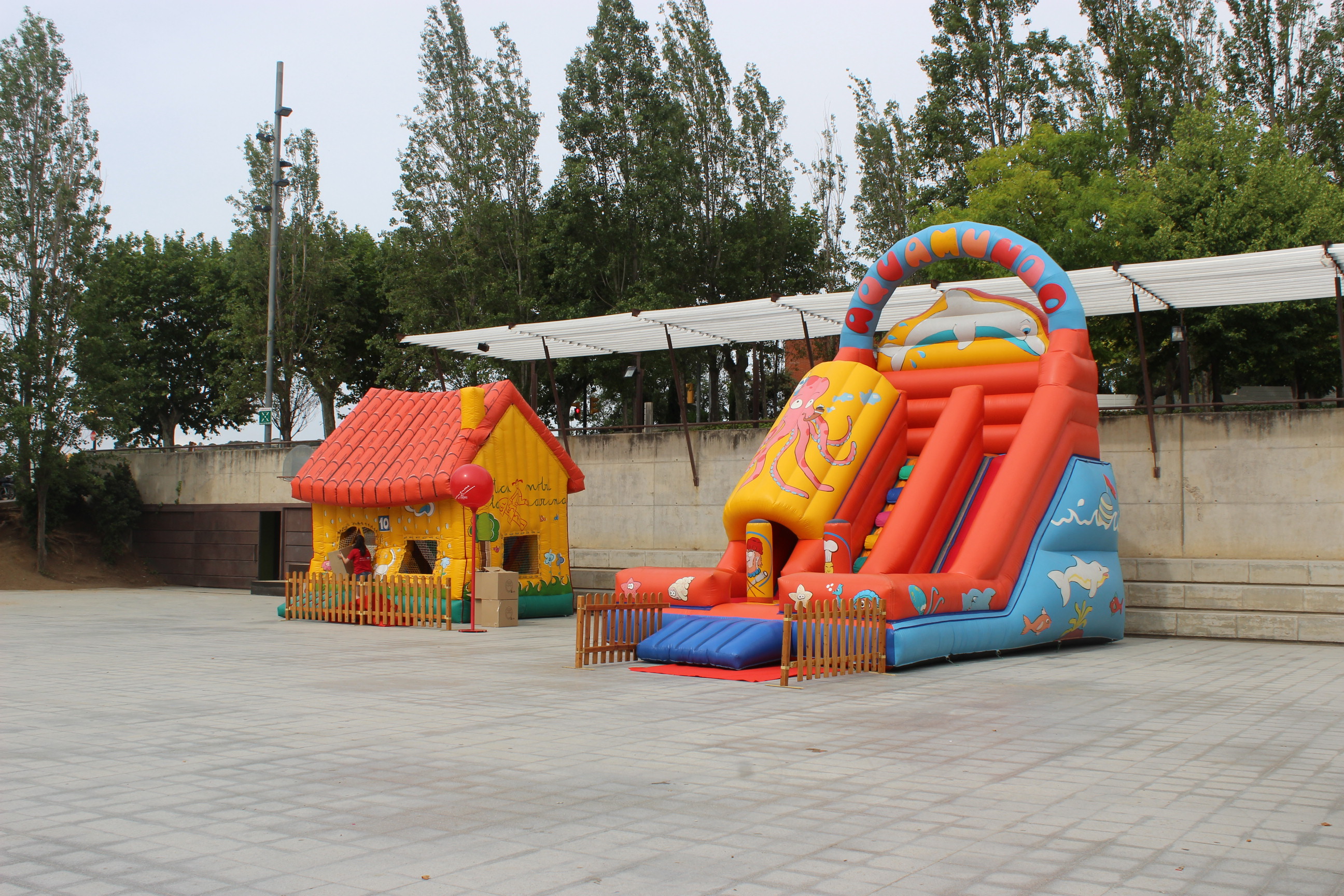Per la seva banda no ha estat l’únic acte que hi ha hagut aquest diumenge al matí al parc. Els més petits de la casa han fet llargues cues per pujar als dos inflables instal·lats a la pista de ciment del parc. A més també s’ha habilitat un espai nadó per a nens de 0 a 3 anys i que ha estat molt ben valorat i acceptat pels pares.