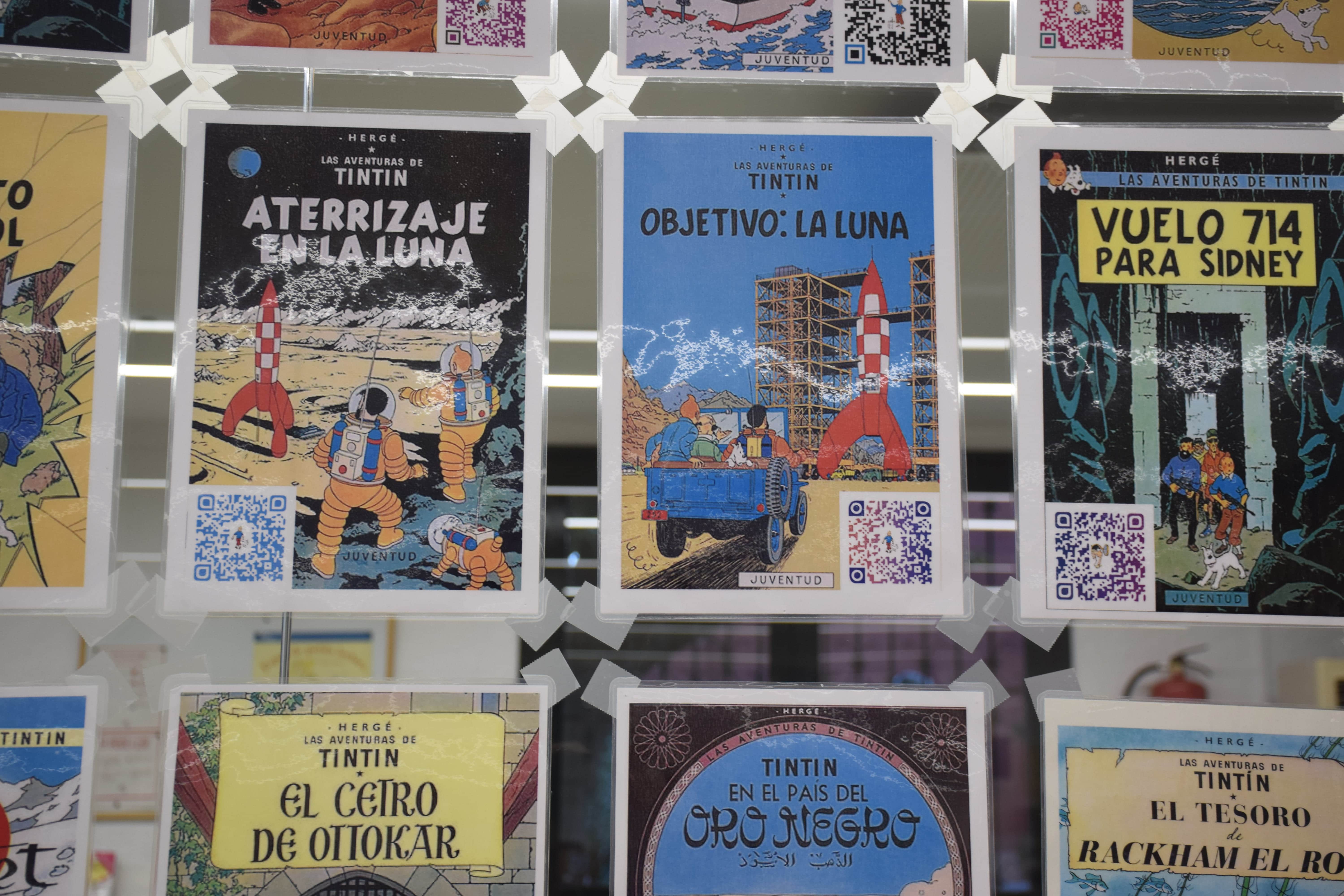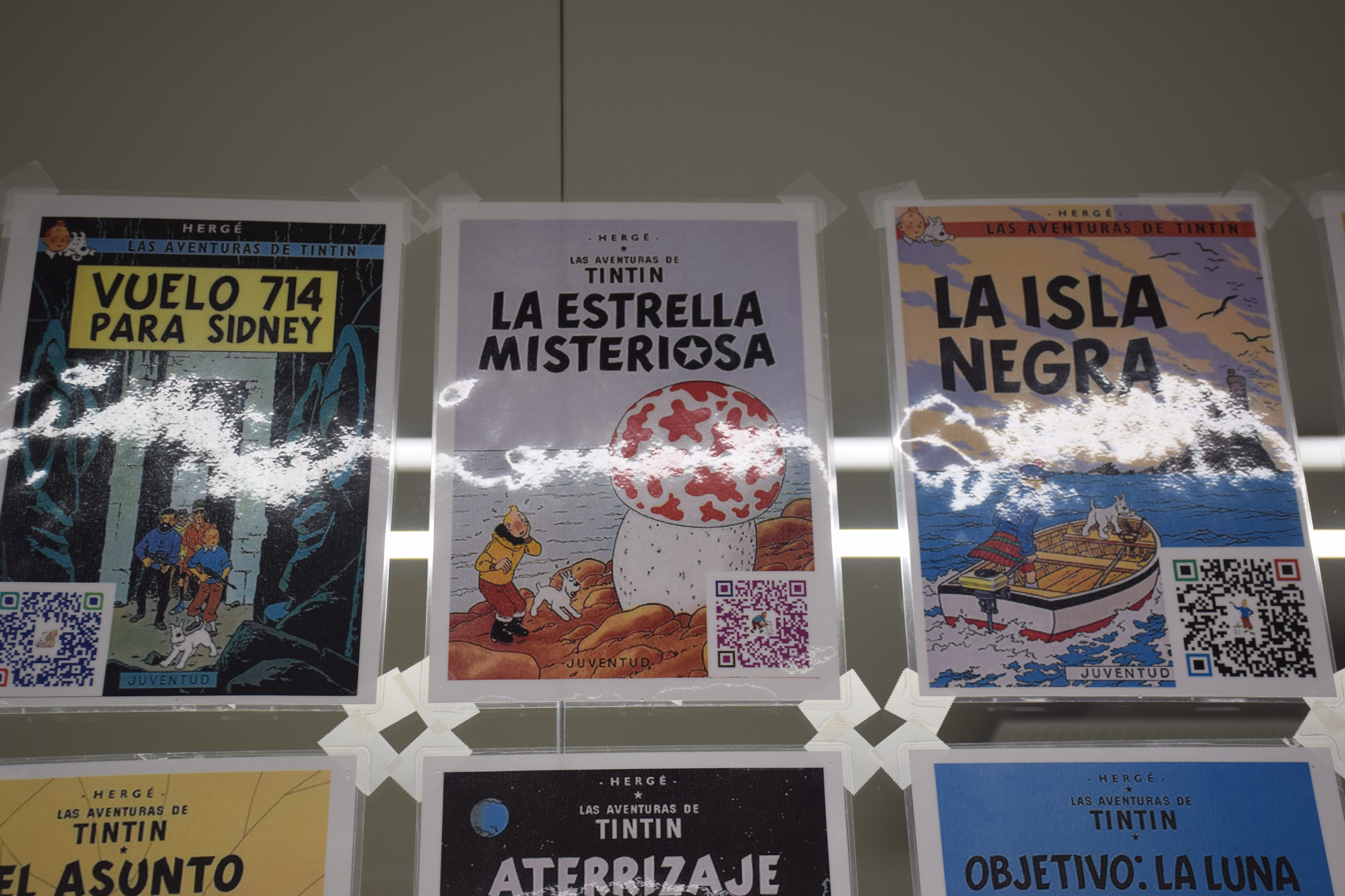 L’exposició consta d’una reproducció de les portades dels còmics de Tintín amb un codi QR cada un. Mitjançant una aplicació que els descodifiqui, instal·lada als dispositius mòbils, es podrà descobrir la sinopsi de cada un dels exemplars: