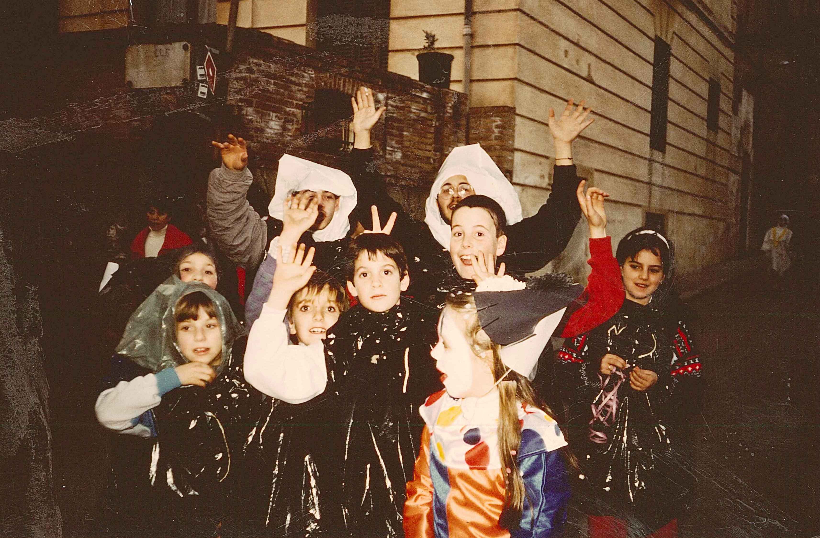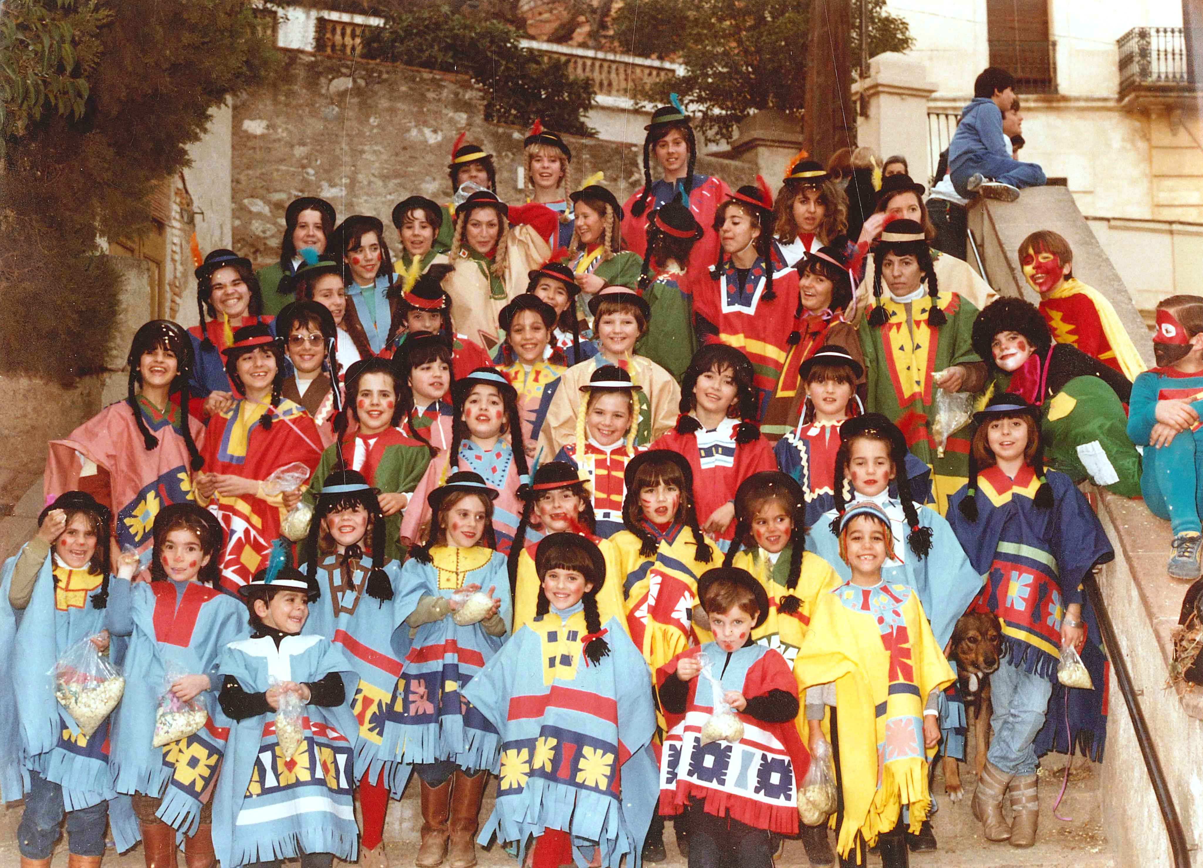 Una d’elles era la que hi participava Núria Bonancia que amb els seus amics de la colla de sempre. Van anar des de galetes maria amb got de llet i caixa, fins a escolanets de Montserrat. Tot i no ser excessivament complicades, les disfresses quedaven molt bé. Ella recordava aquests anys com a molt bons i sobretot no tant el dia de Carnestoltes sinó com la preparació prèvia