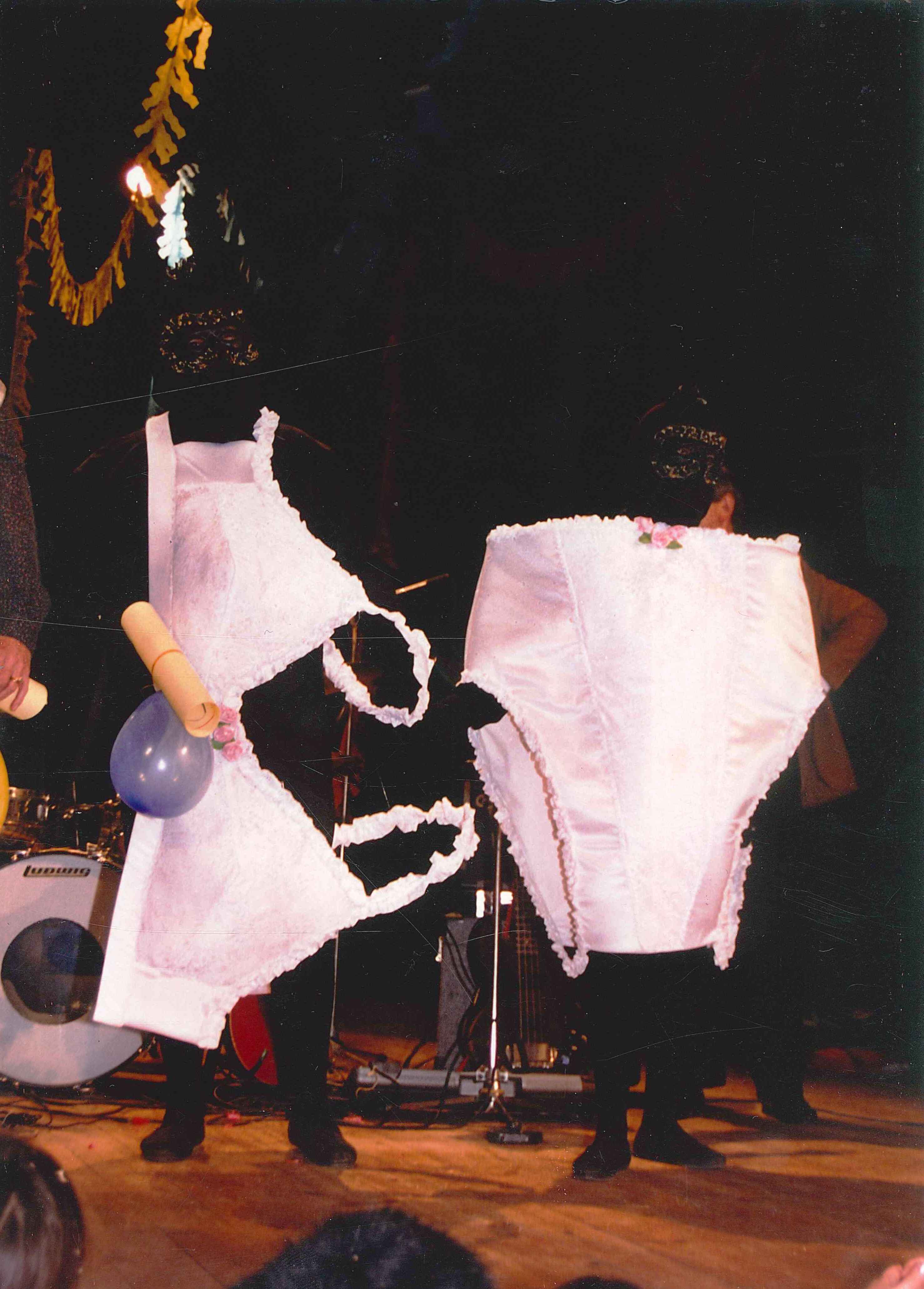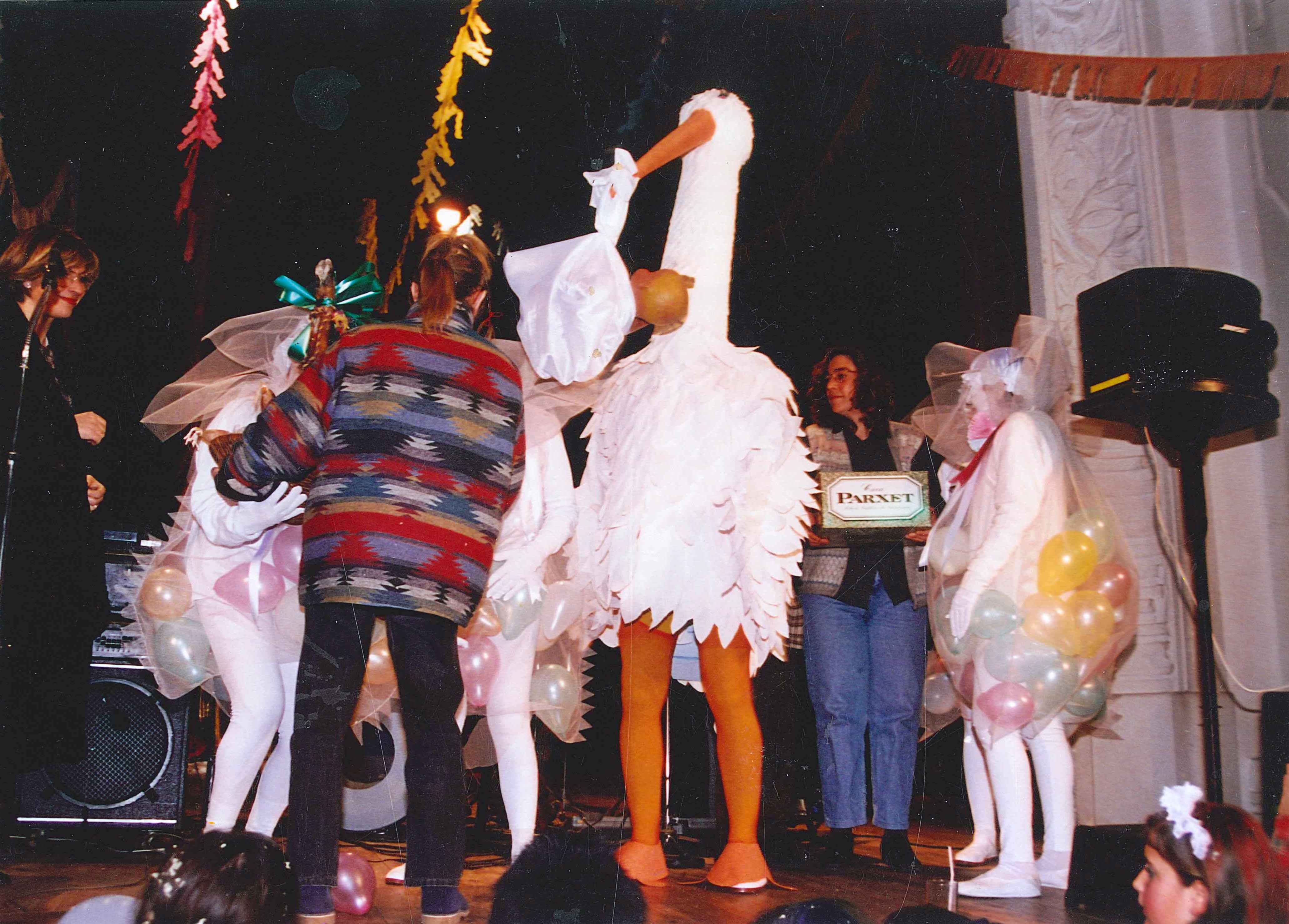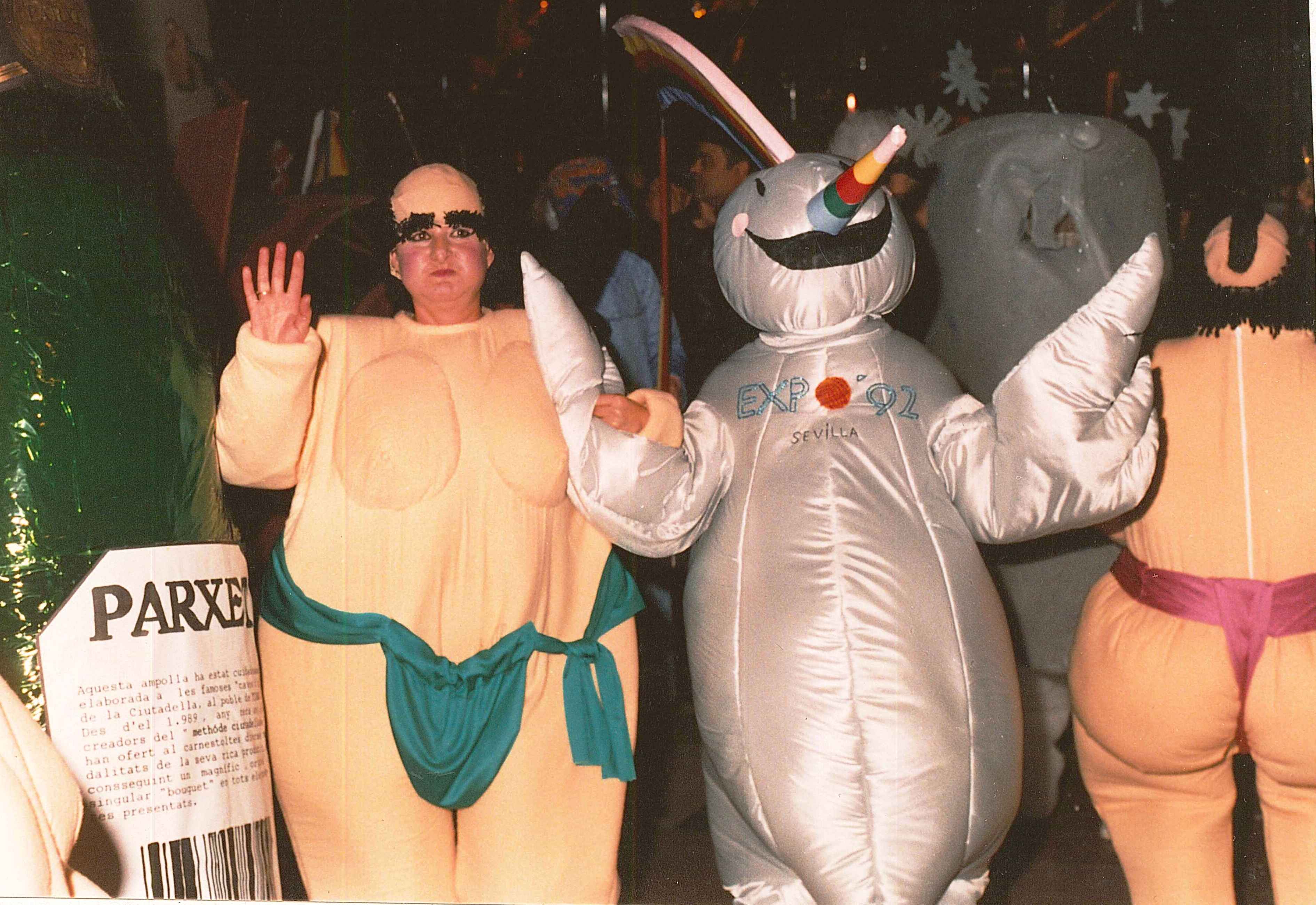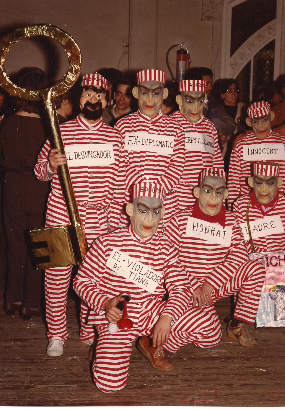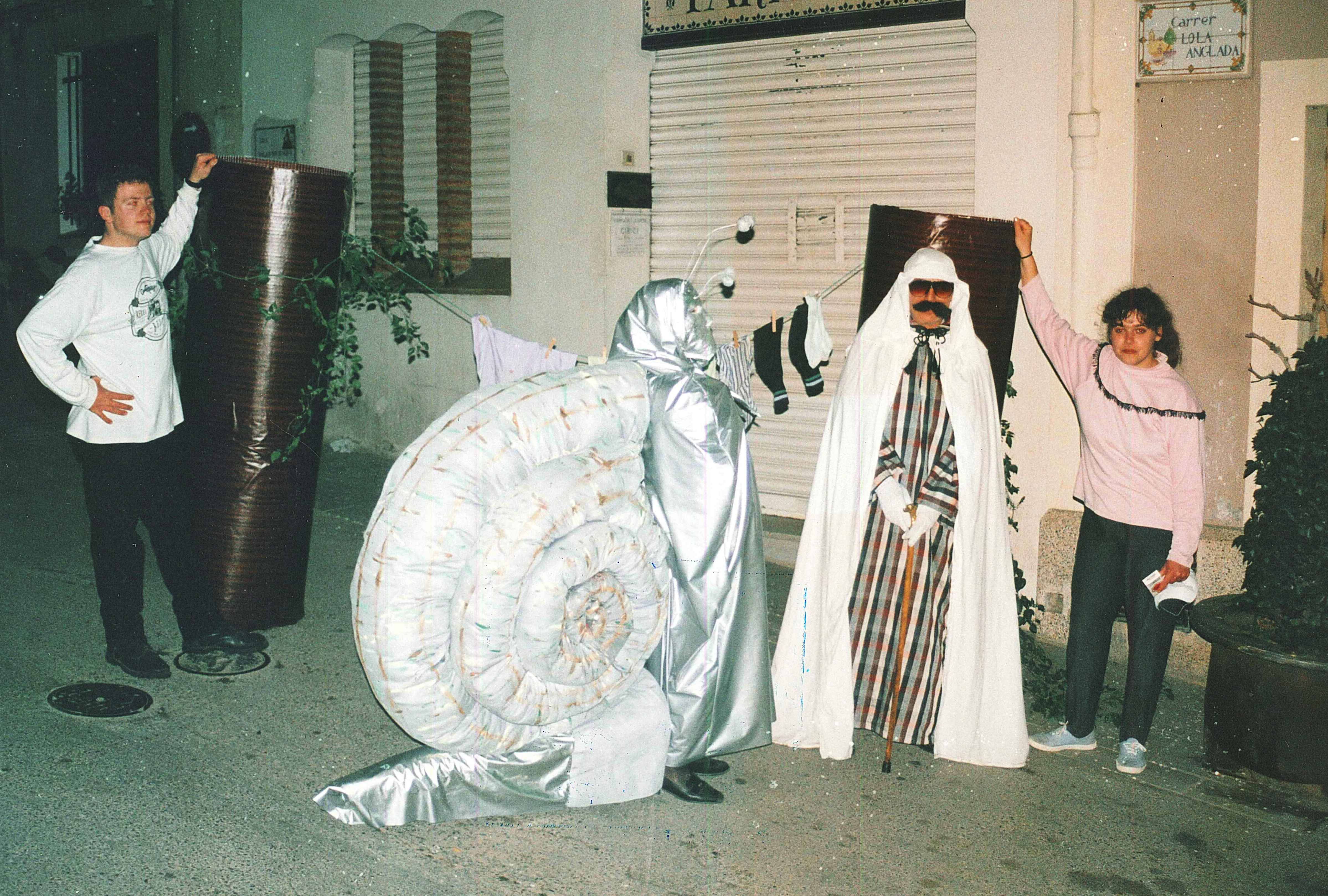 Una altre de les comparses guanyadores estava formada pel grup de la Joana Ribó, l’Antoni Liñán. La Joana comenta que que ‘varem estar molts anys i a la darrera època ja anava de baixa i feia una mica de vergonya sortir disfressats’. Van participar de totes les maneres possibles, com que eren tants van anar de comparsa, de parelles i fins i tot individuals. Recorda quan de comparsa van anar de calçots, de contes, de El Corte Ingles, de Xarcuteria i de Chapapote quan es va enfonsar el Prestige a les costes gallegues. Com a parella ella amb el seu marit, en Miquel Navarro, es van disfressar de Calces i Sostens i fins i tot havien anat entre ells d’individuals.