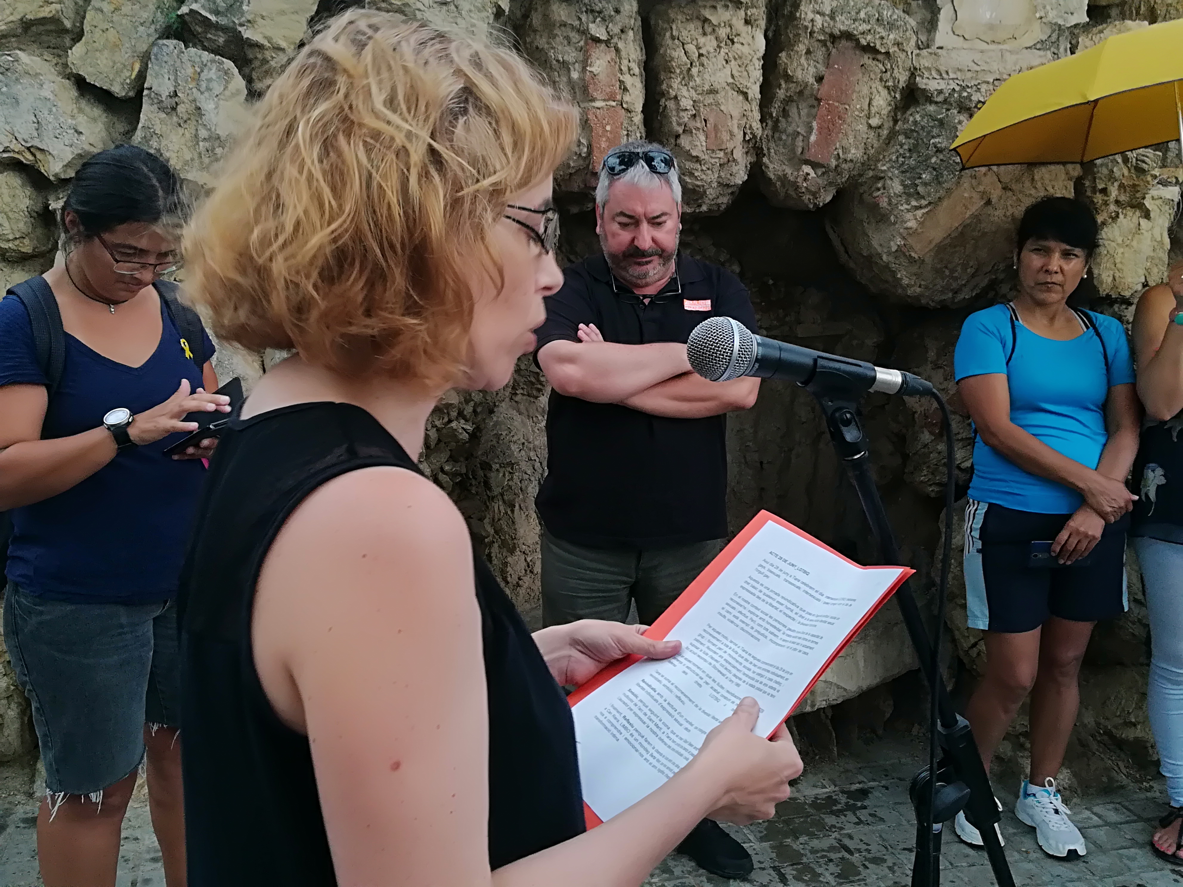 Abans del monòleg, però, l’acte ha començat als bancs situats darrere de l’església, a Edith Llaurador. Allà, les Meris, molt conegudes a Tiana, han sigut les encarregades de llegir conjuntament el manifest: