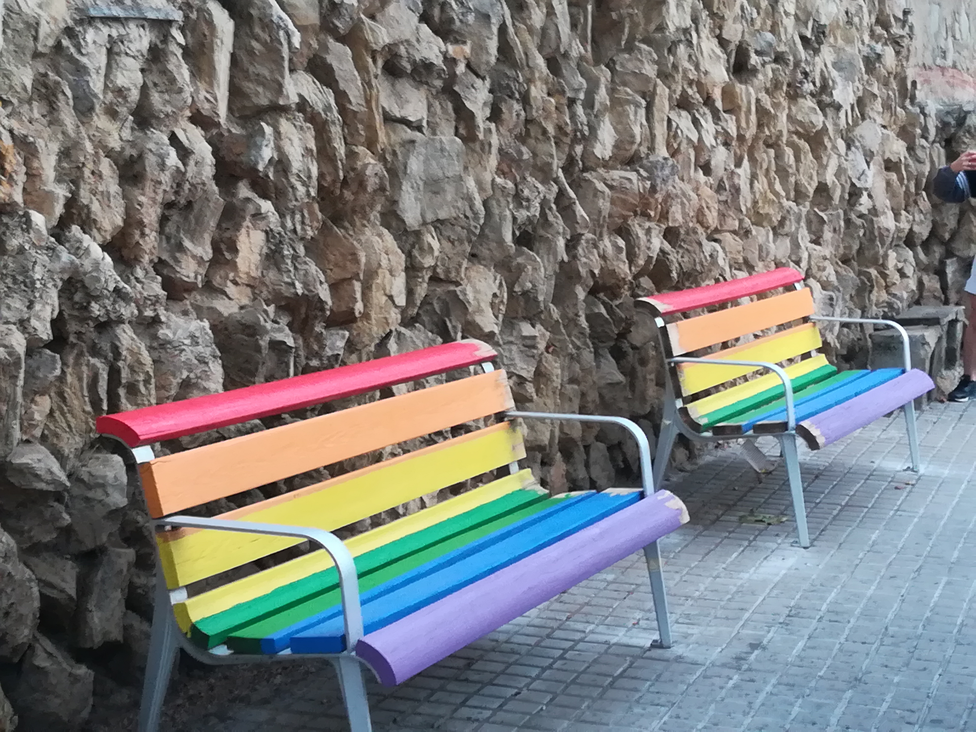 Després de la reivindicació, ha vingut un gest simbòlic: s’han destapat dos dels bancs, mostrant que s’havien pintat amb els colors de la bandera LGTBI. Seguidament, l’acte ha continuat a Can Riera, on ha tingut lloc la part més reflexiva de la jornada. El monòleg “Berta i Albert” ha servit per remoure sentiments, idees i consciències sobre una realitat que, en la societat actual, costa d’entendre: ésser transgènere.