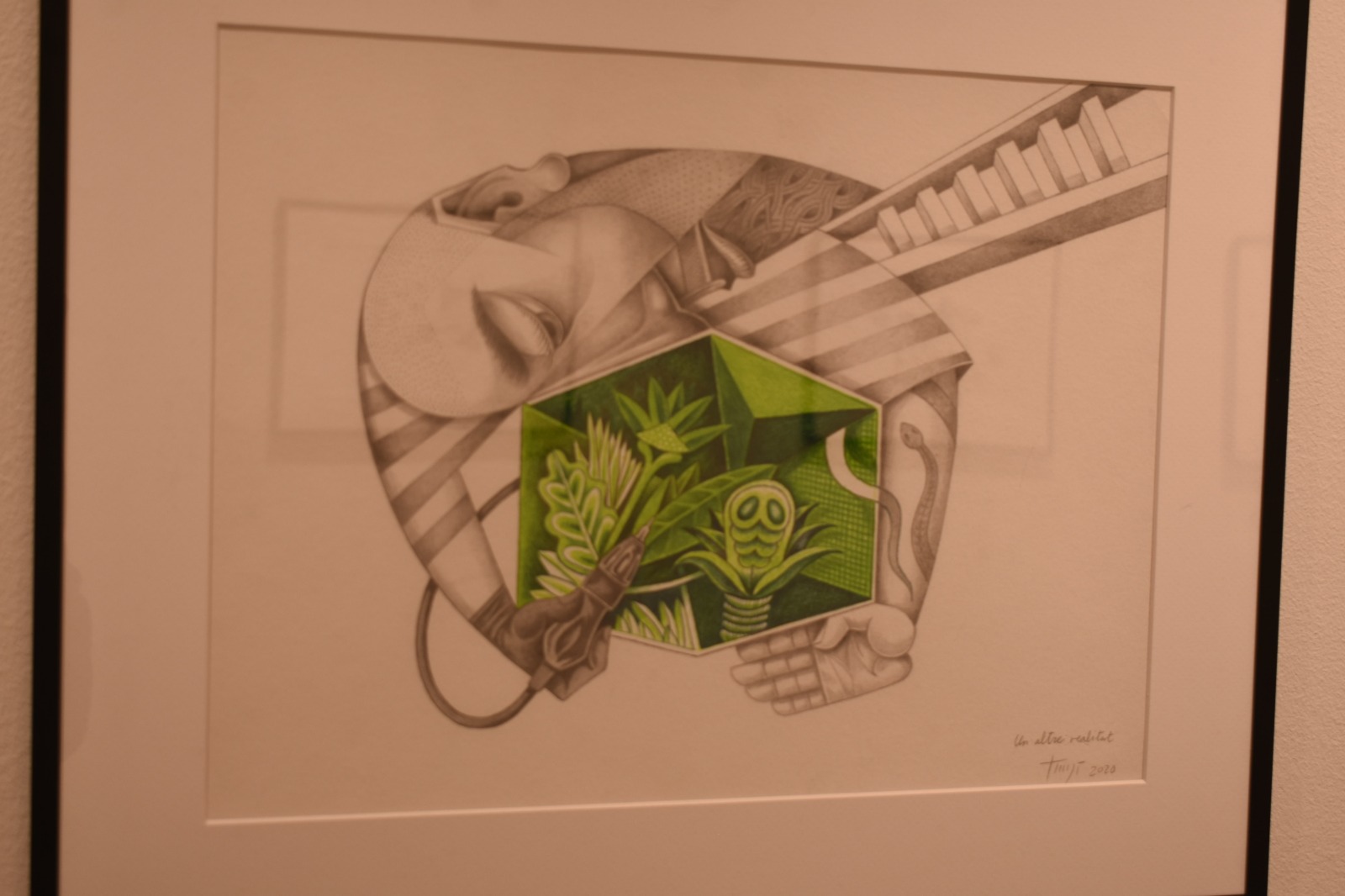 L’exposició a l’Espai Cultural no només compta amb la presència de la nova obra “Pandèmia” d’en Mario que es troba al passadís principal, sinó que també s’hi pot trobar uns retrats de la col·lecció que anomena “Face” i un quadre en particular anomenat “Colorin Colorado”.