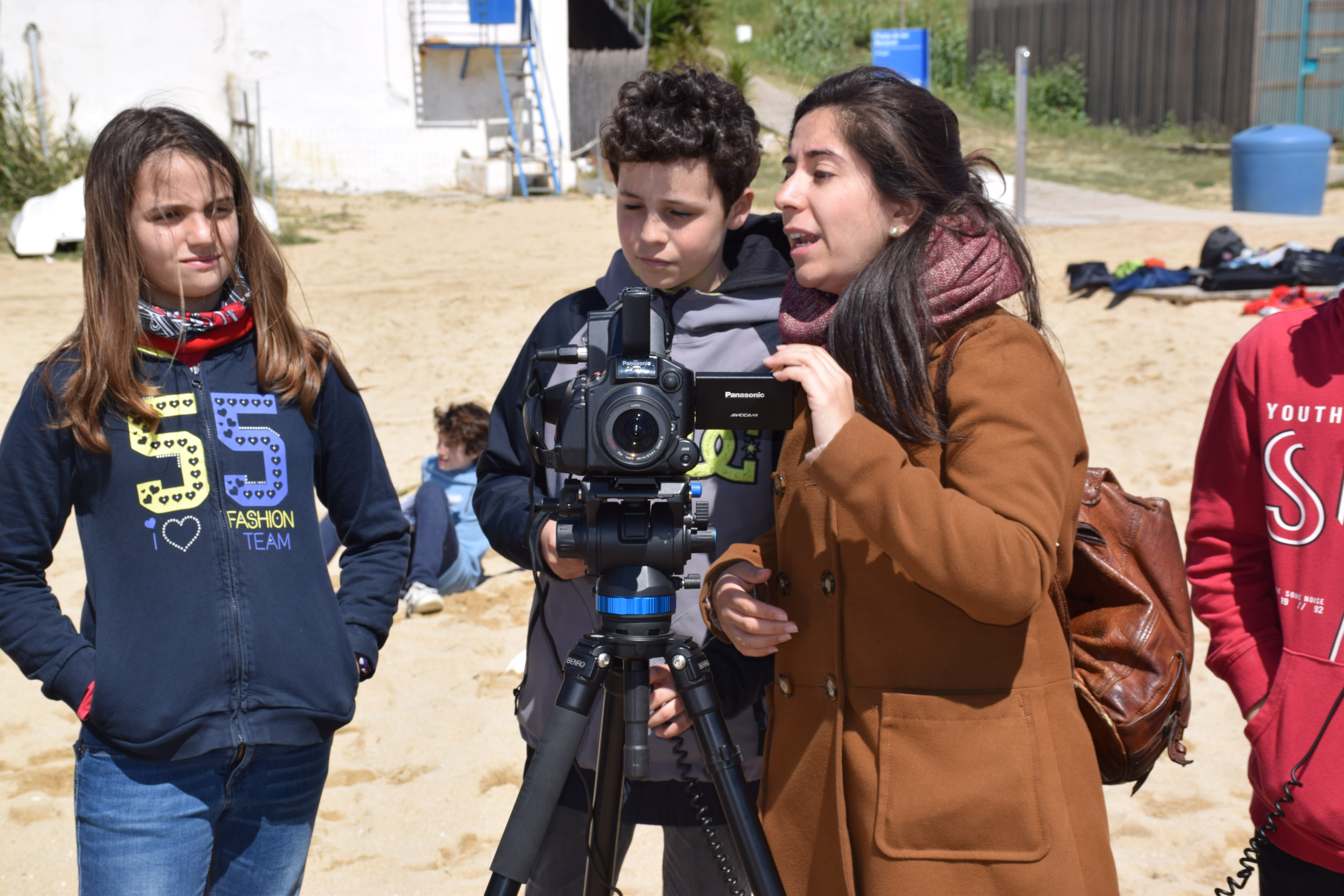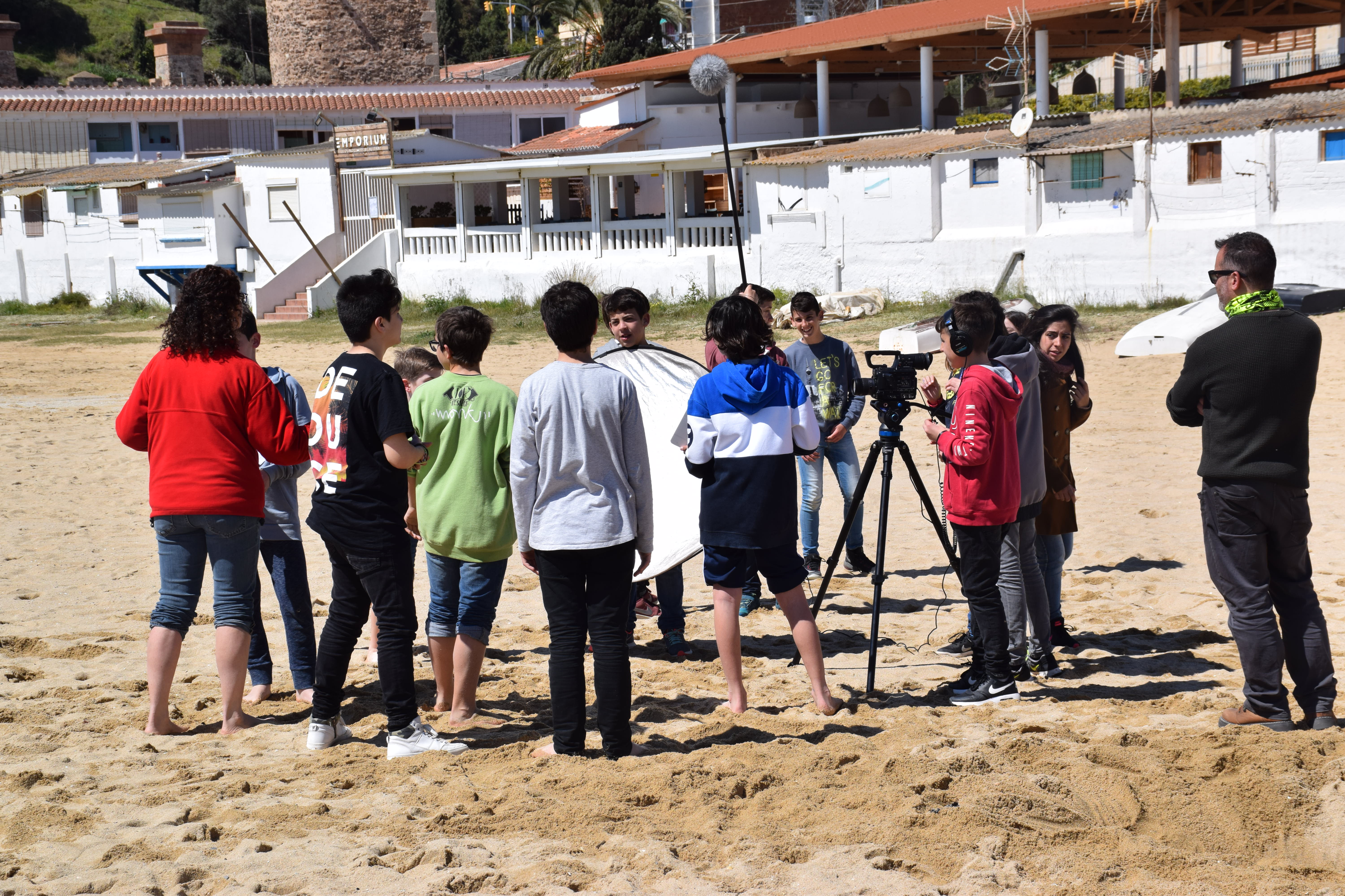 Ha estat a la platja de les Barques de Montgat, durant tot el matí i part del migdia. L’equip el coordina la Sandra, una cineasta, membre del Taller de Cinema. Aquesta associació duu a terme ja fa uns anys el projecte Reacciona a diversos instituts de Secundària catalans, un dels quals és el de Tiana.