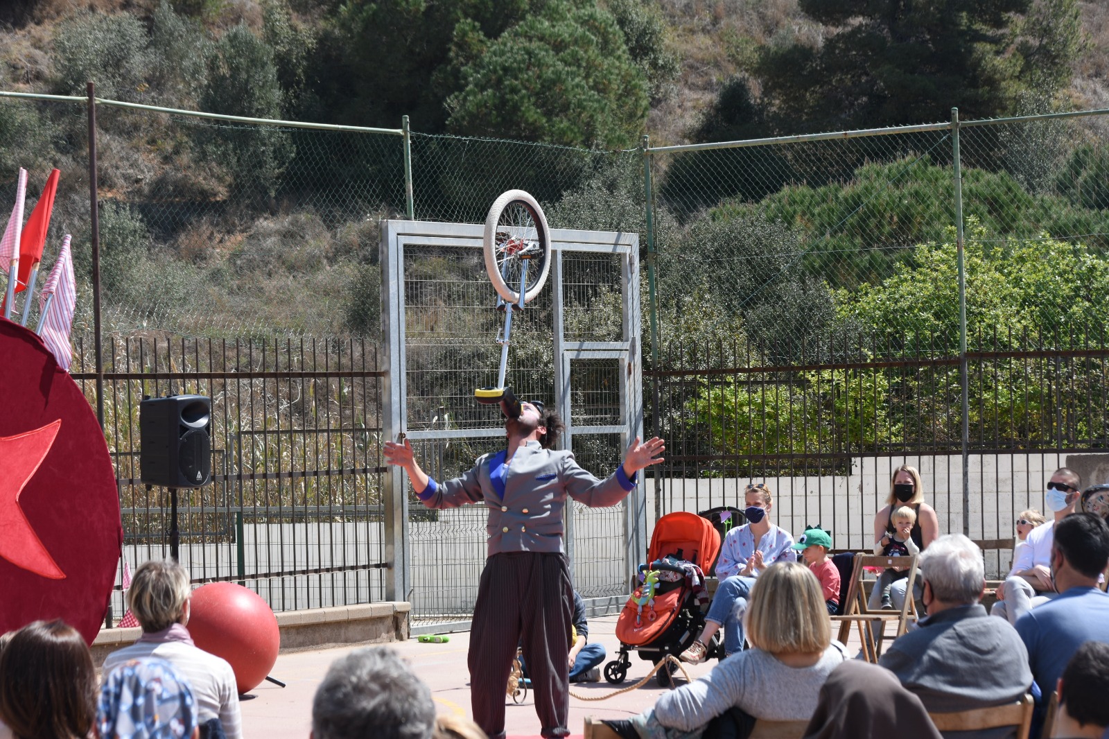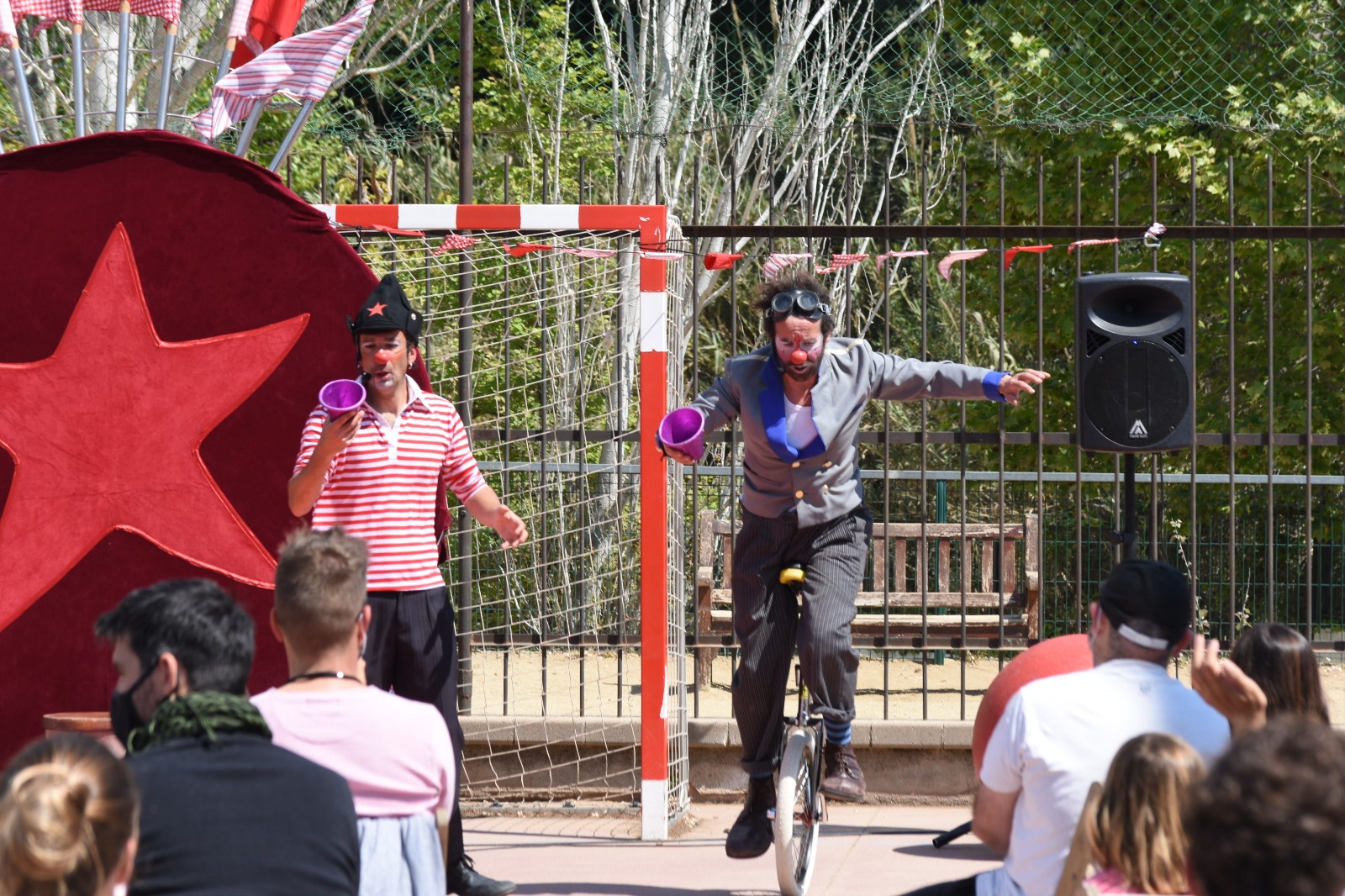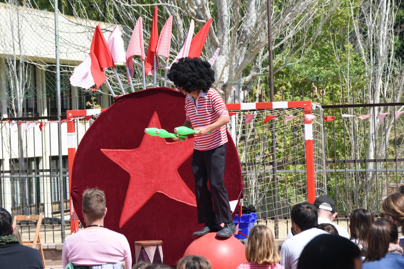 La pista de l’escola Tiziana ha acollit el segon i darrere espectacle en el marc de la celebració del Dia Mundial del Circ amb l’obra “Plis Plas”, de la companyia de Terrassa Filigranes, interpretada per l’Albert Pérez i en Jordi Torrens.