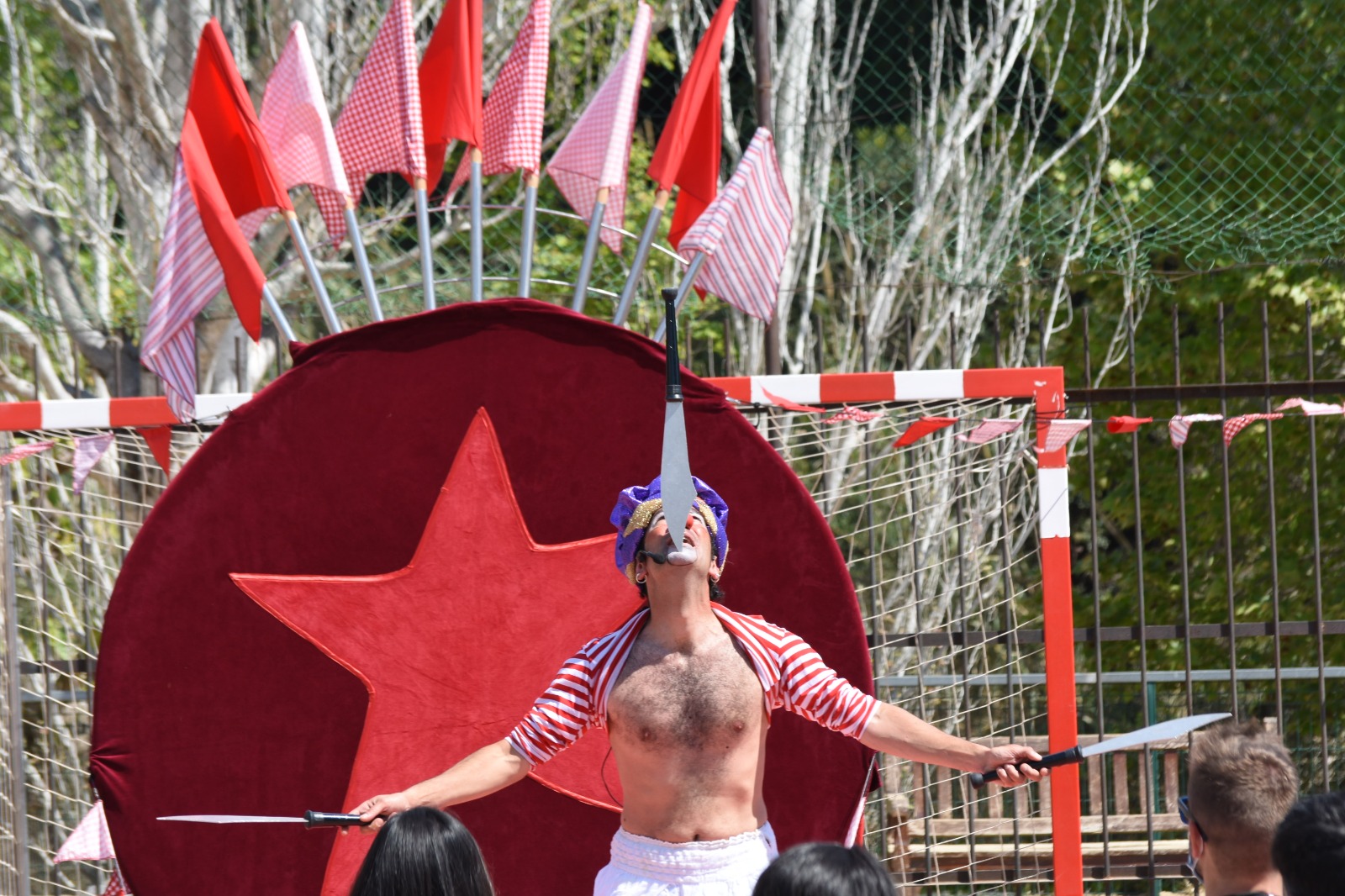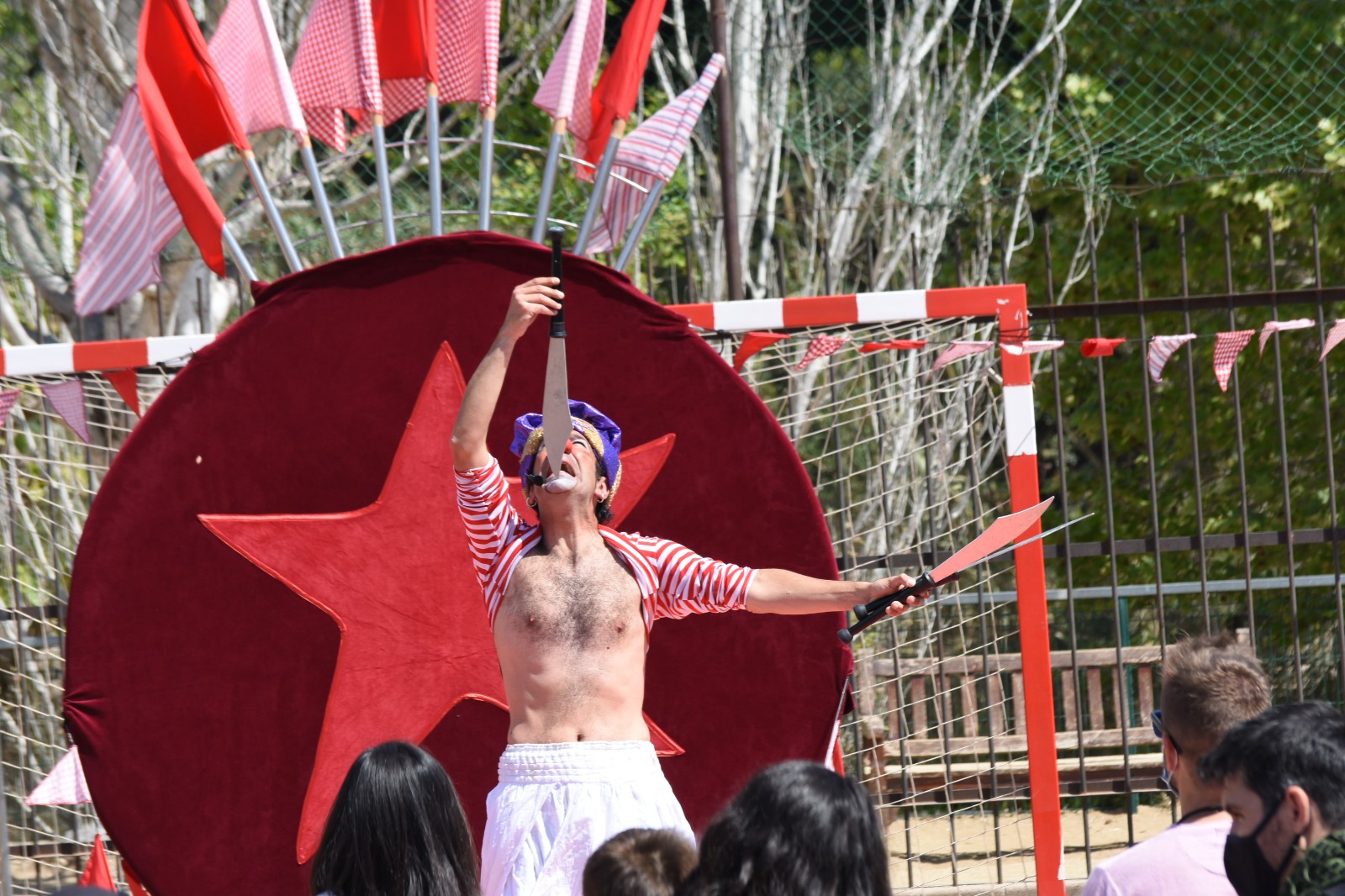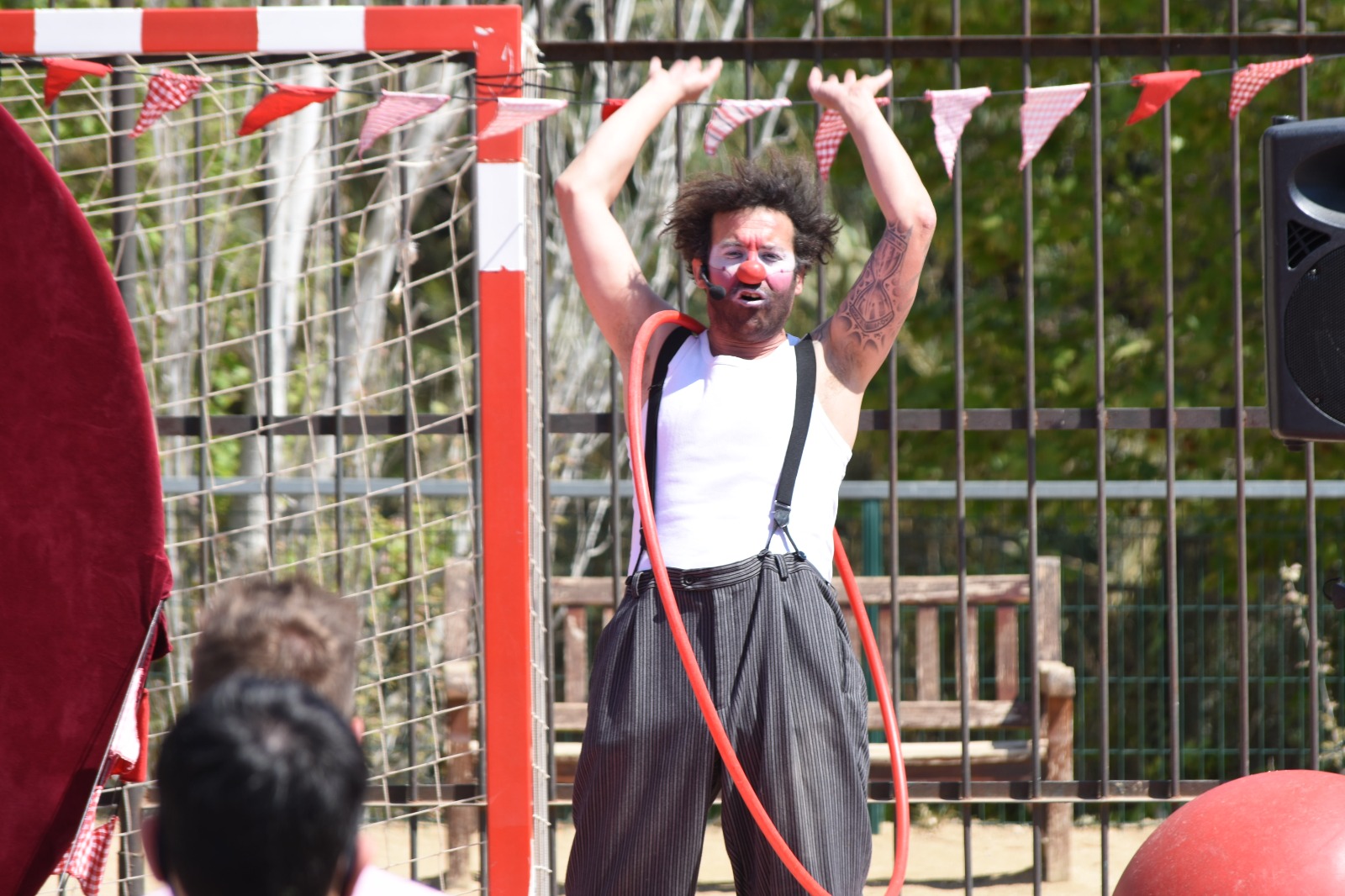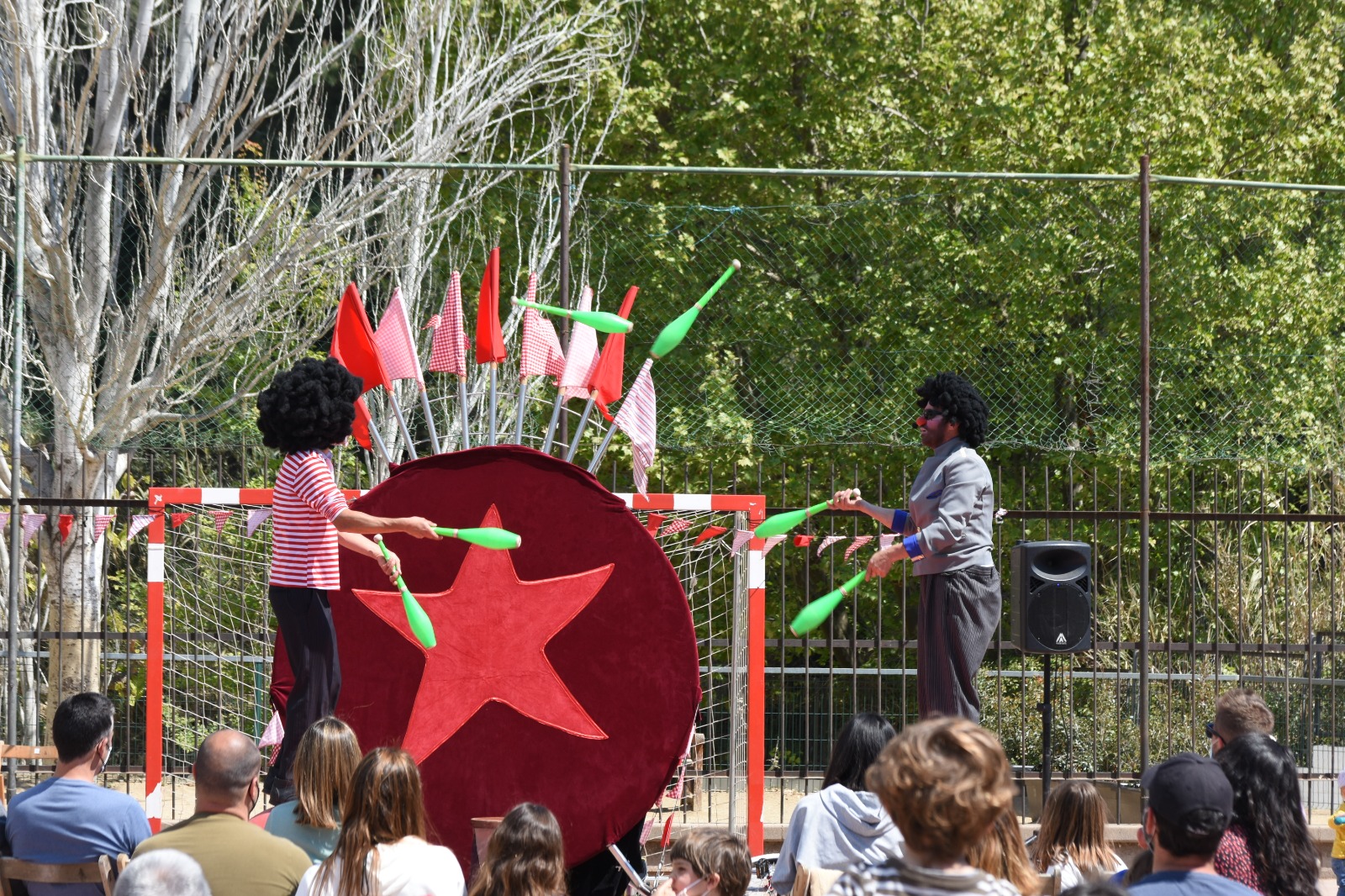 La pista de l’escola Tiziana ha acollit el segon i darrere espectacle en el marc de la celebració del Dia Mundial del Circ amb l’obra “Plis Plas”, de la companyia de Terrassa Filigranes, interpretada per l’Albert Pérez i en Jordi Torrens.