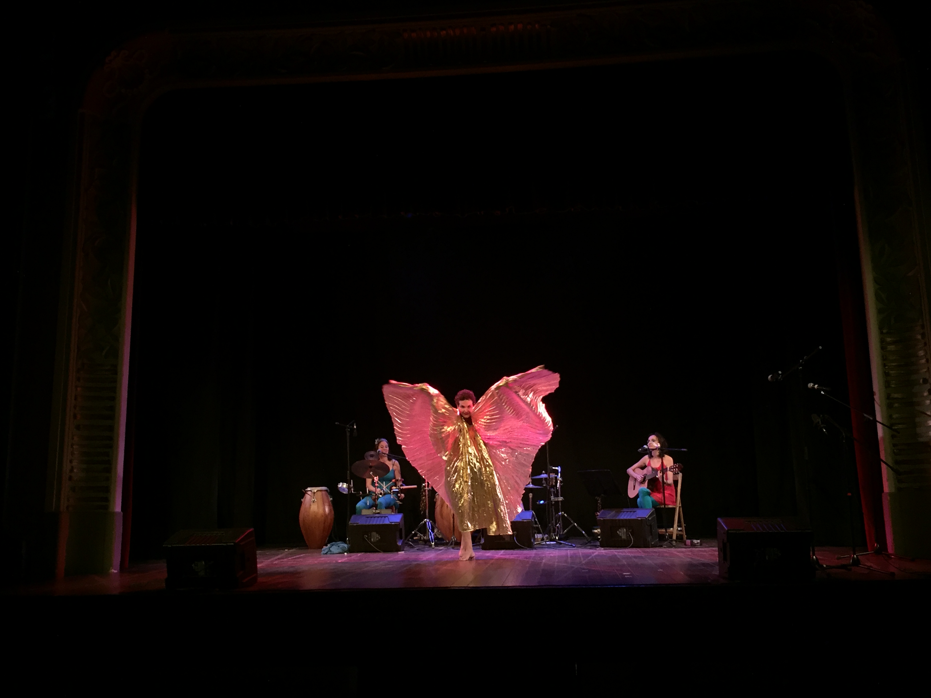 La Sala Albéniz es va omplir de tambors, de color i de melodies de tot tipus; algunes més lentes, amb guitarra i veu, i d’altres més rítmiques, a base de tambors. Totes, amb lletres que parlen d’aspectes del dia a dia però d’una forma romàntica.
