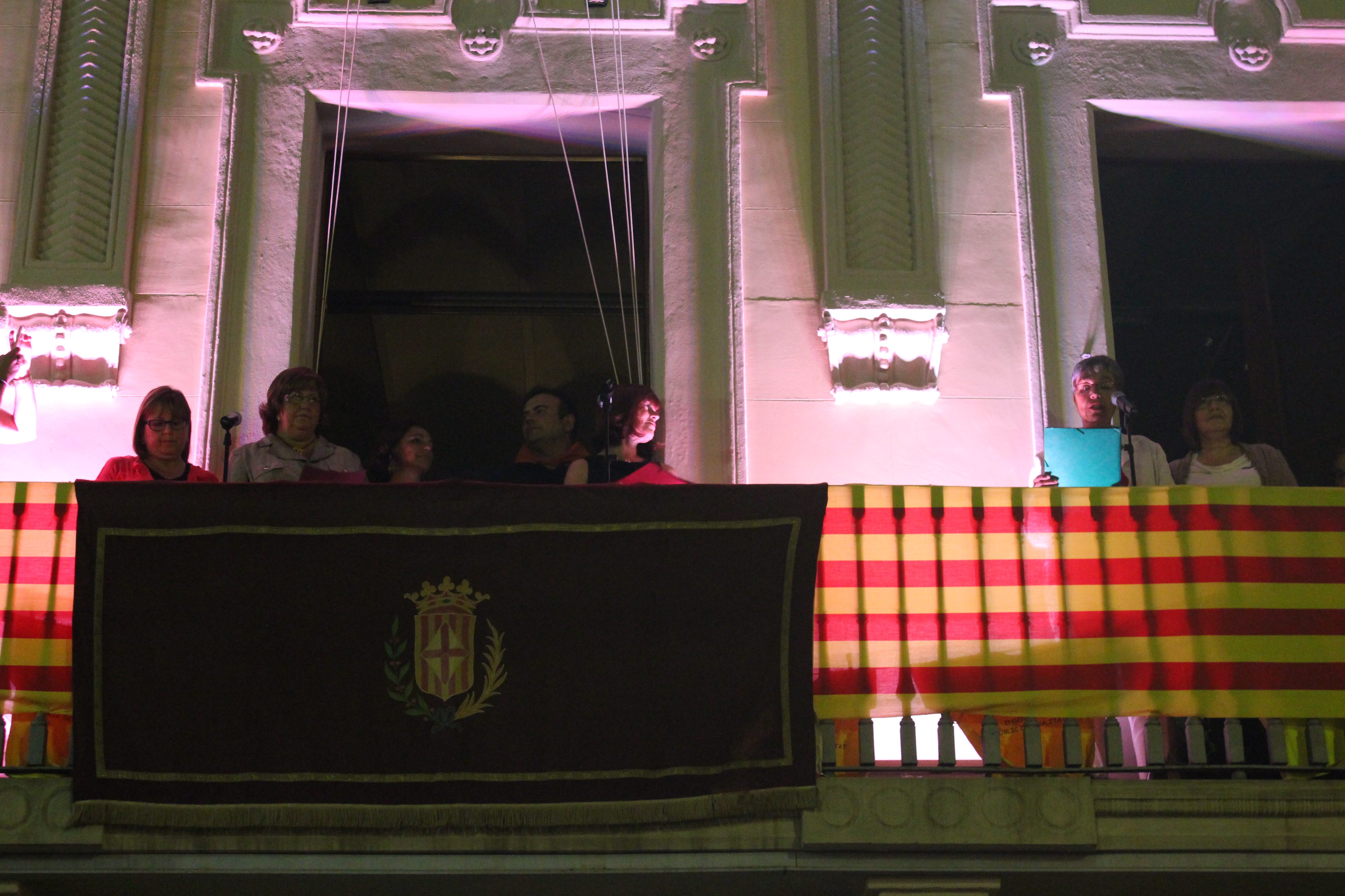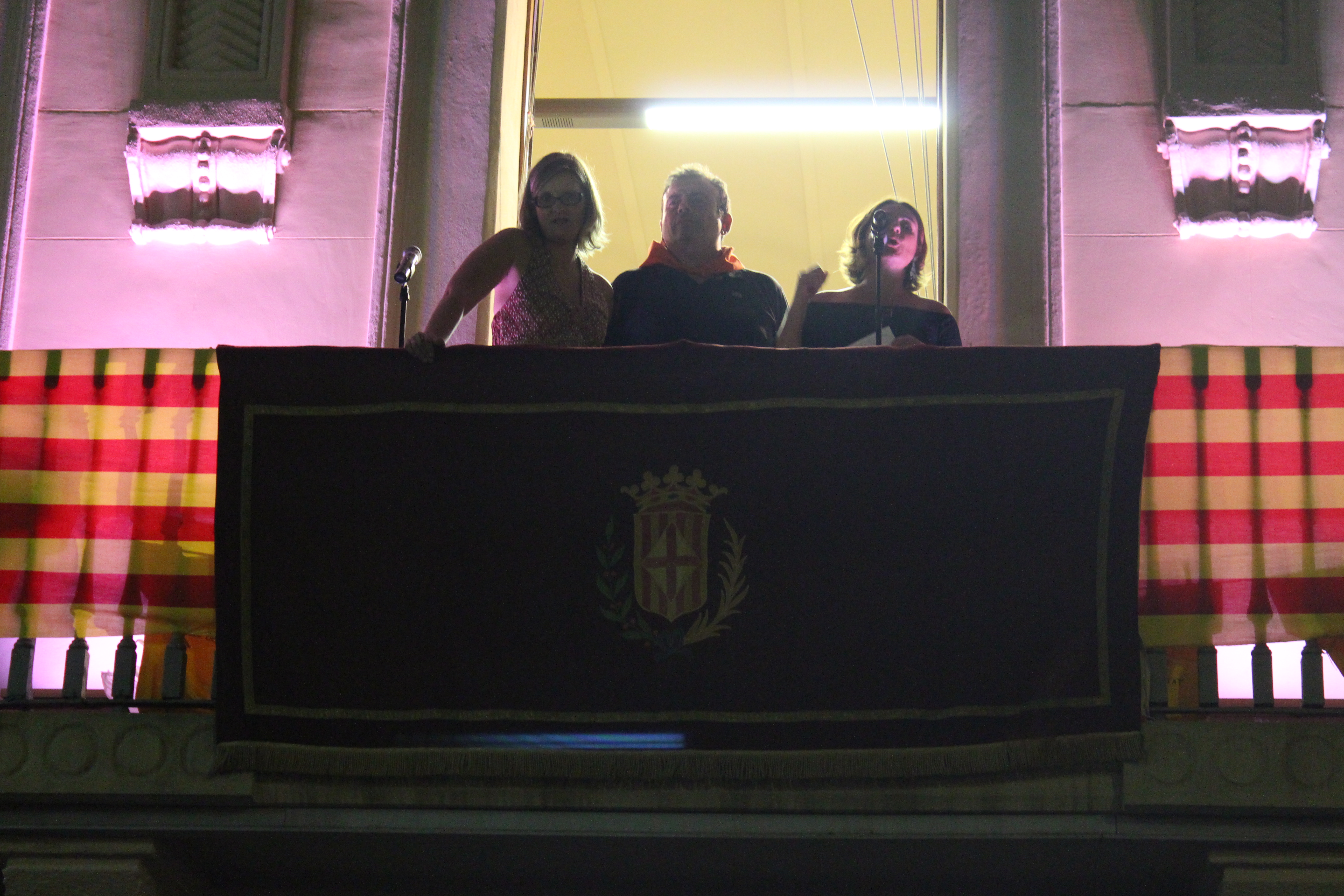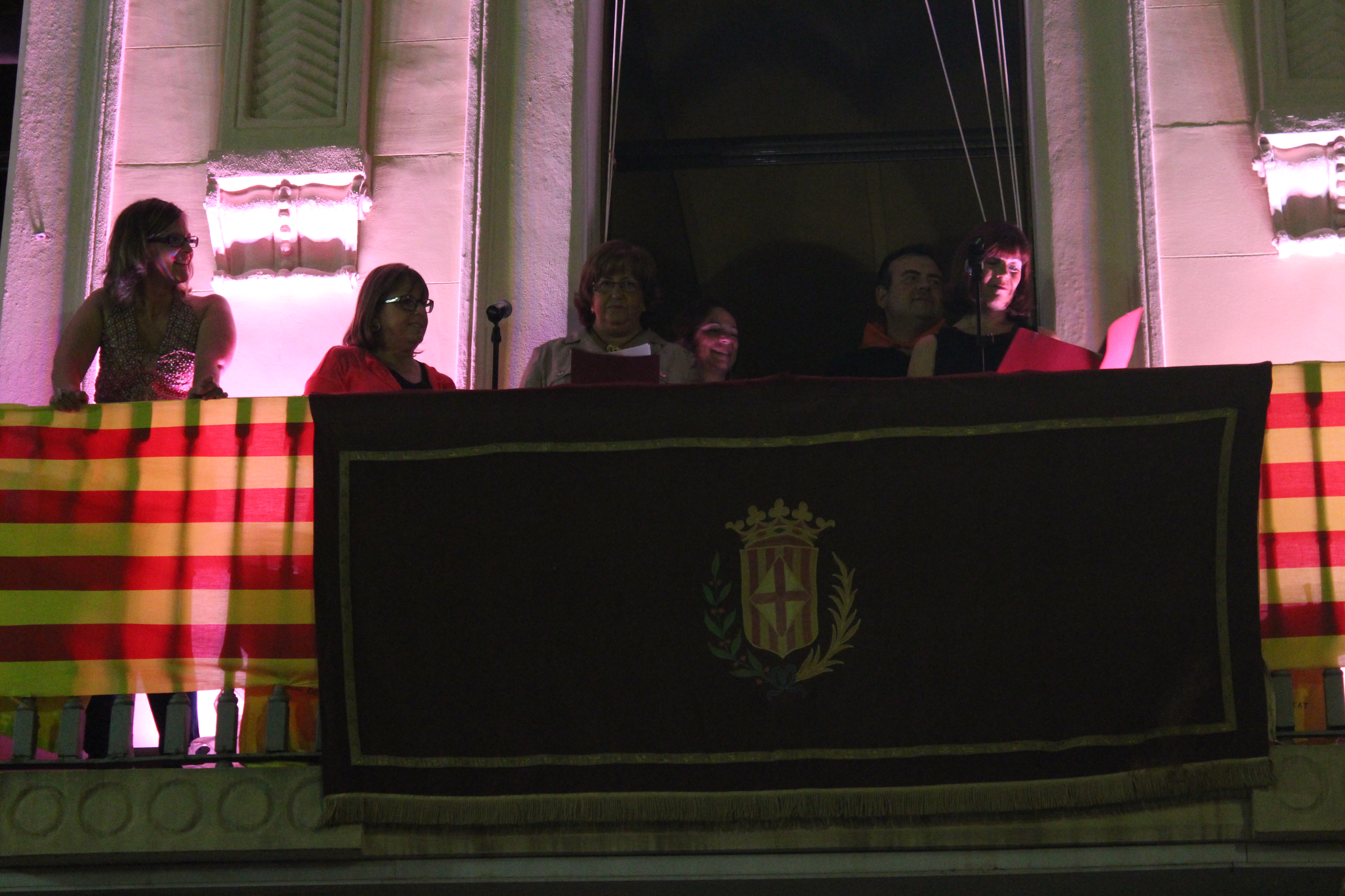 Les pregoneres també han fet una ullada al futur i als reptes que impliquen alguns dels canvis més recents a l’educació, com la llei Wert o les agressions a la llengua catalana. Un moment que han aprofitat per penjar diferents samarretes de SOS Educació Pública al balcó de l’Ajuntament.