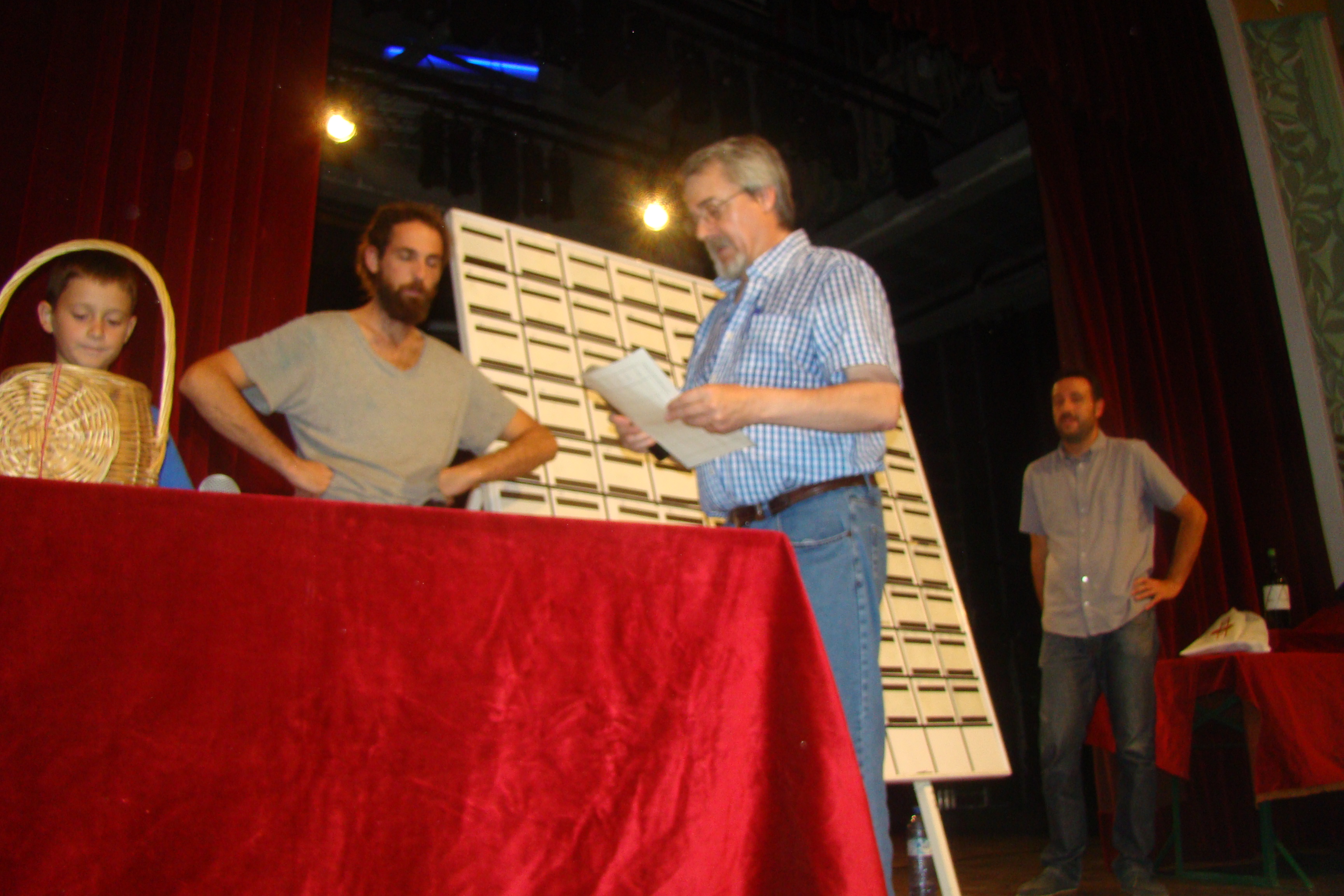 Aquesta tarda també ha pujat a l’escenari de la Sala Albéniz Andrés Ortiz. El dissenyador gràfic ha guanyat el concurs de cartells de la Festa Major d’aquest 2014.