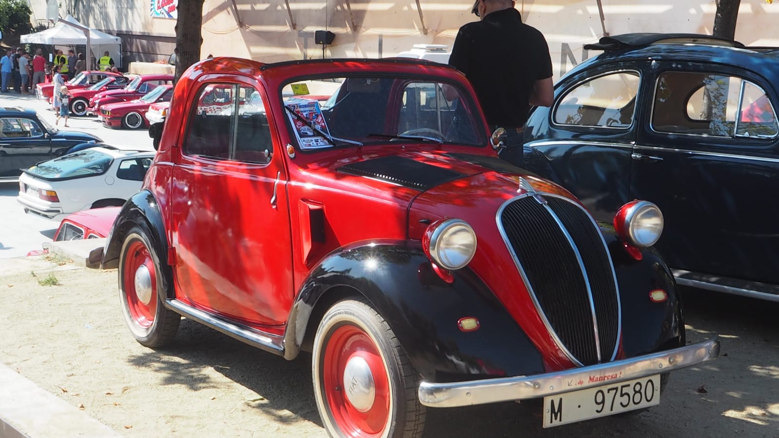 Un dels vehicles més antics que hi ha hagut a la trobada és un Fiat Topolino del 1948. En Ramon, el seu propietari, ve de Sant Andreu i és el seu primer cop a la concentració explica la curiositat del renom del seu cotxe: