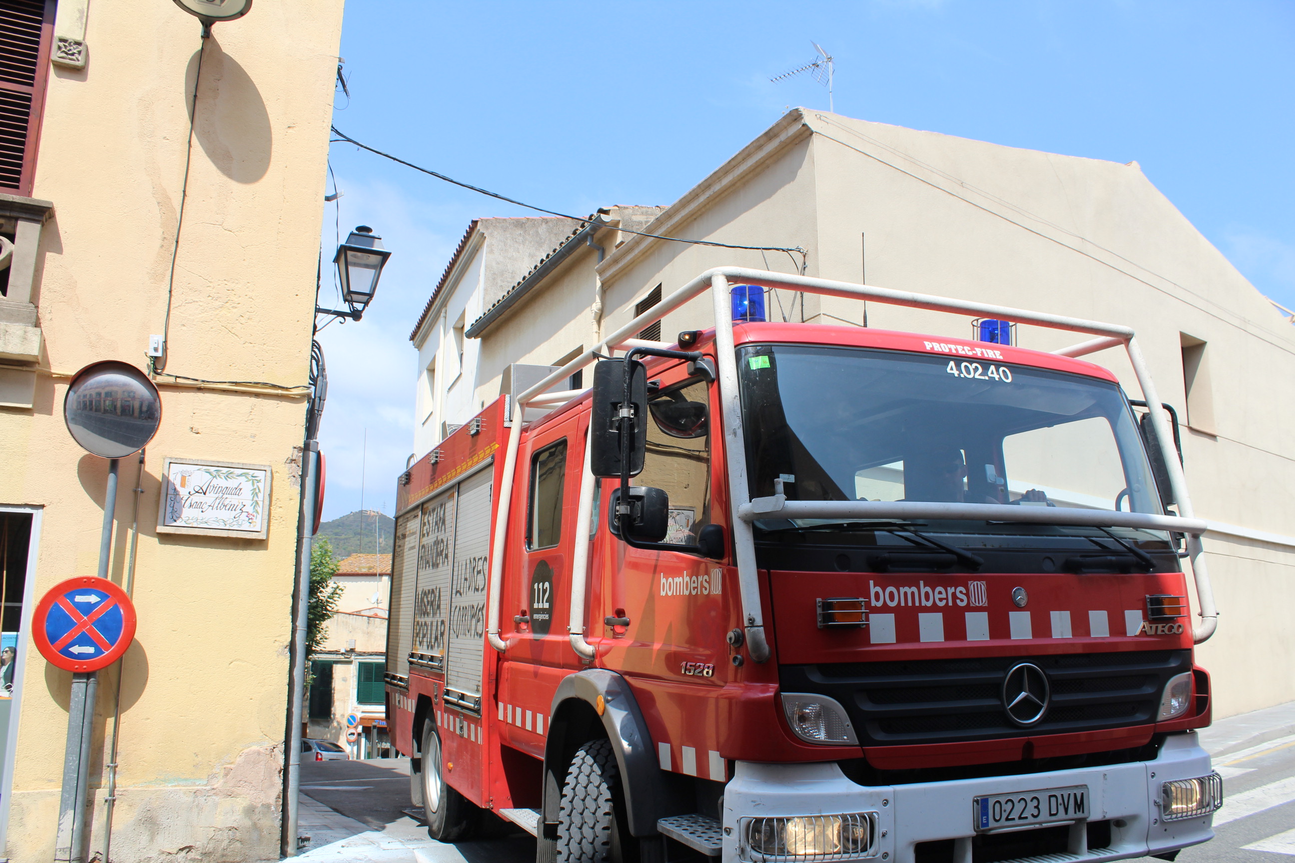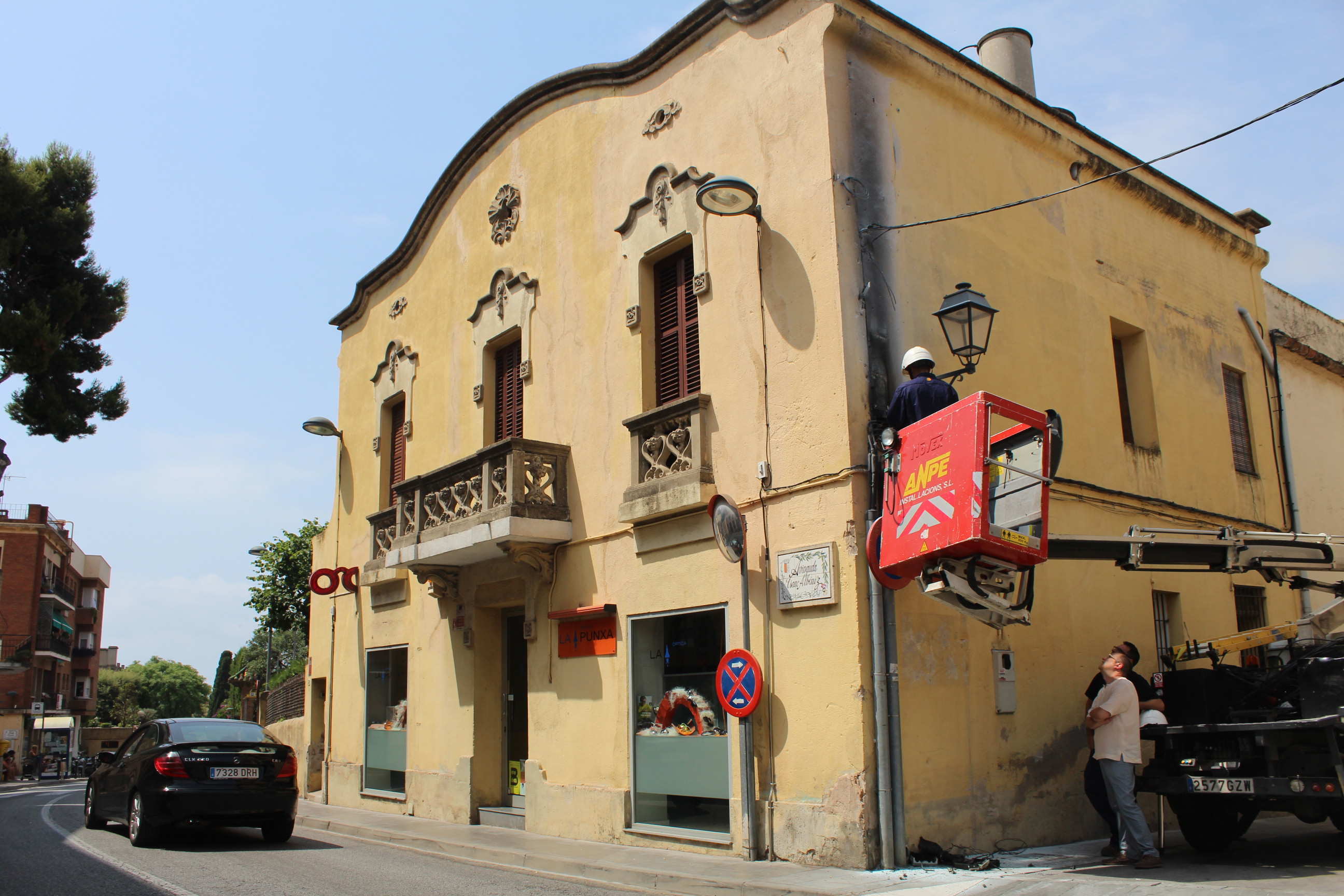 A dos quars d’onze del matí la caixa elèctrica de la façana de l’òptica La Punxa s’ha incendiat. L’àngel, propietari del comerç, es trobava dins de l’edifici i no se’ n’ha assabentat fins que l’han trucat. Ràpidament han sortit amb extintors.