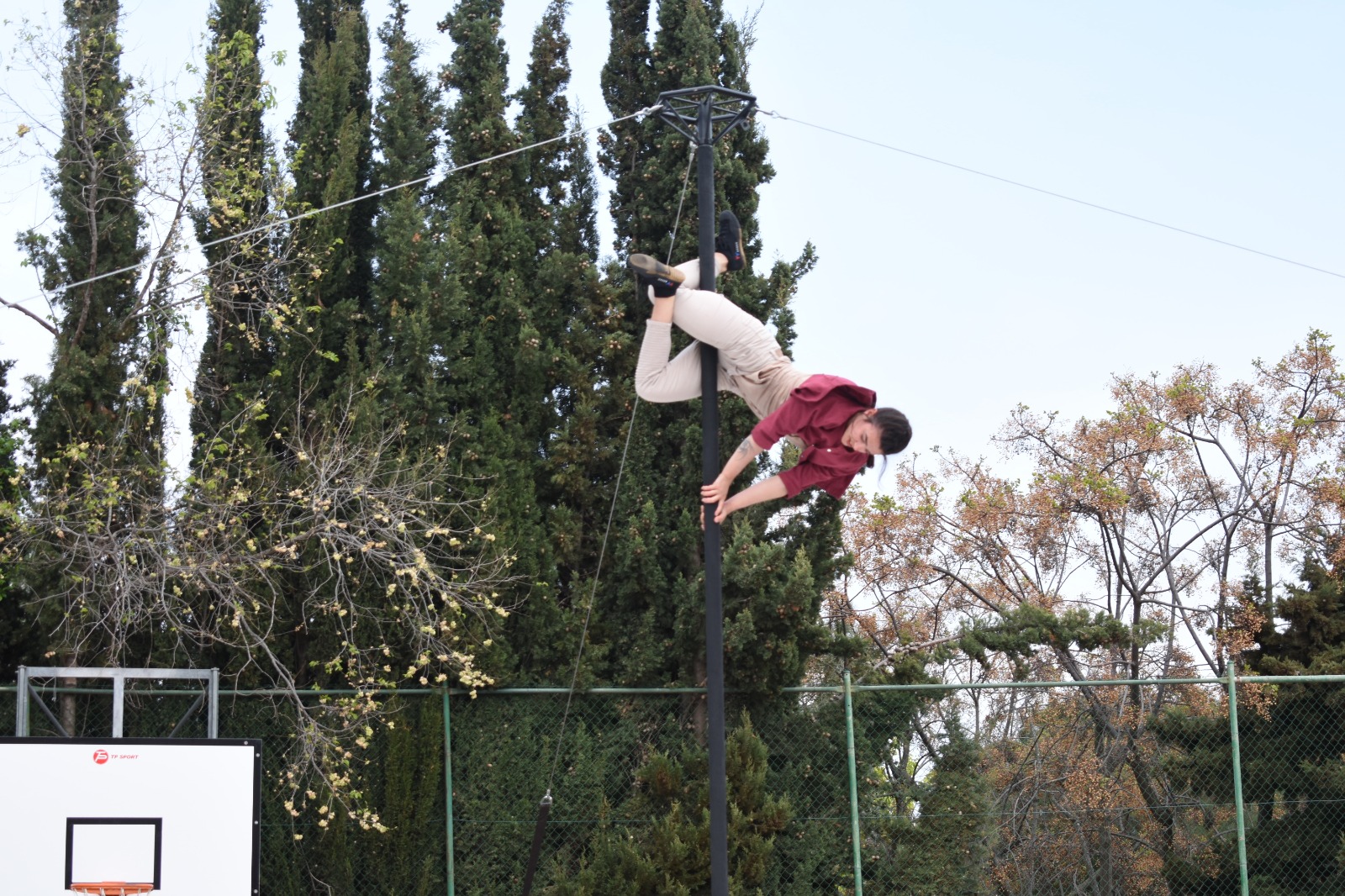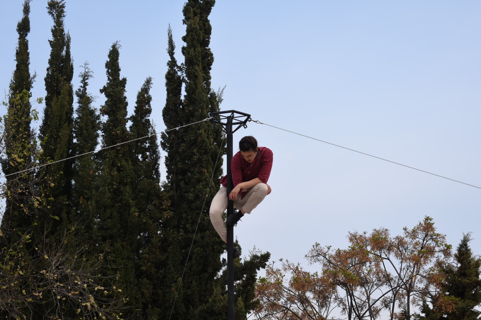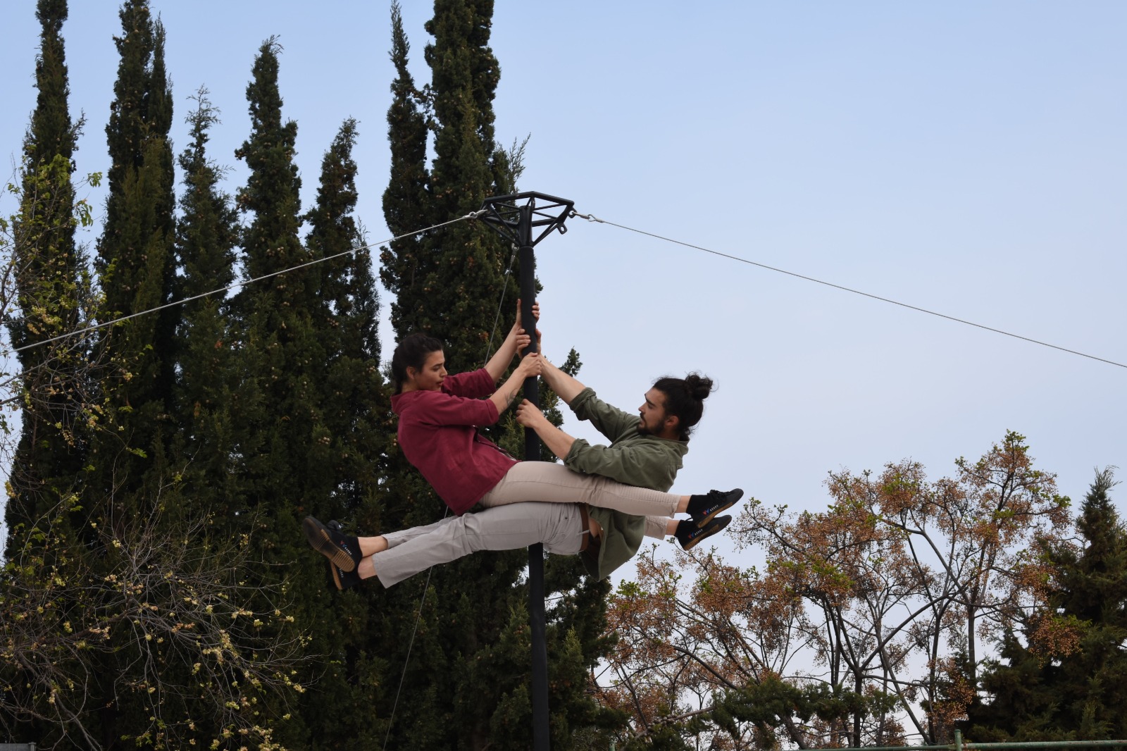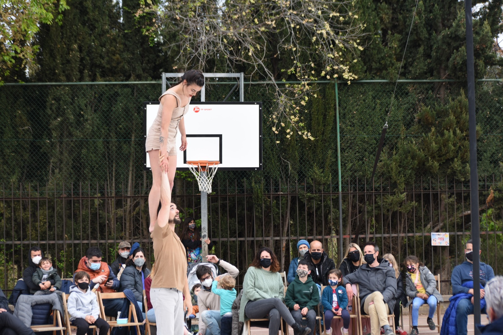 La Mar resumeix molt bé l’espectacle, on l’Hugo fa malabars amb els ulls tancats i després tots dos fan acrobàcies penjats del pal central.