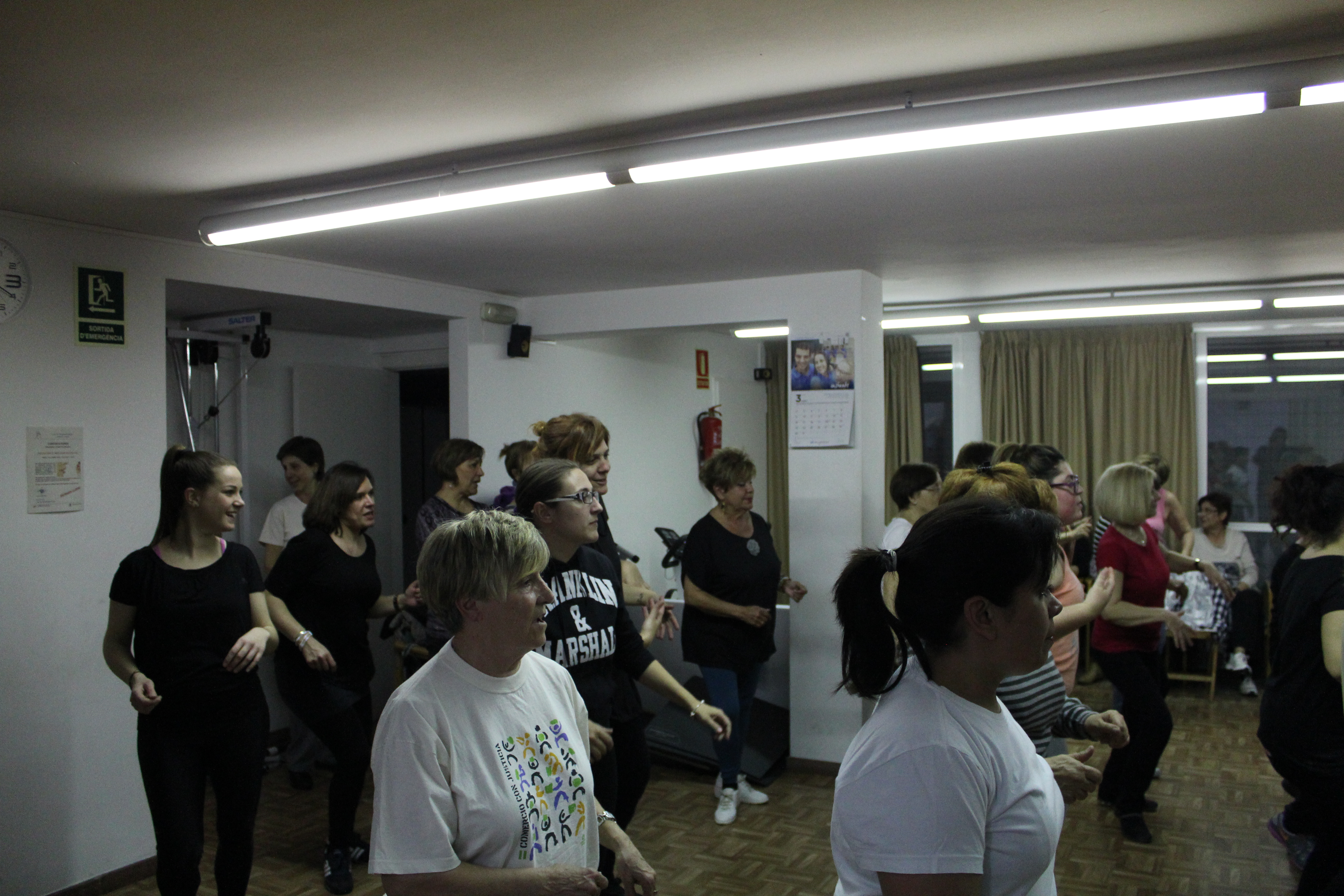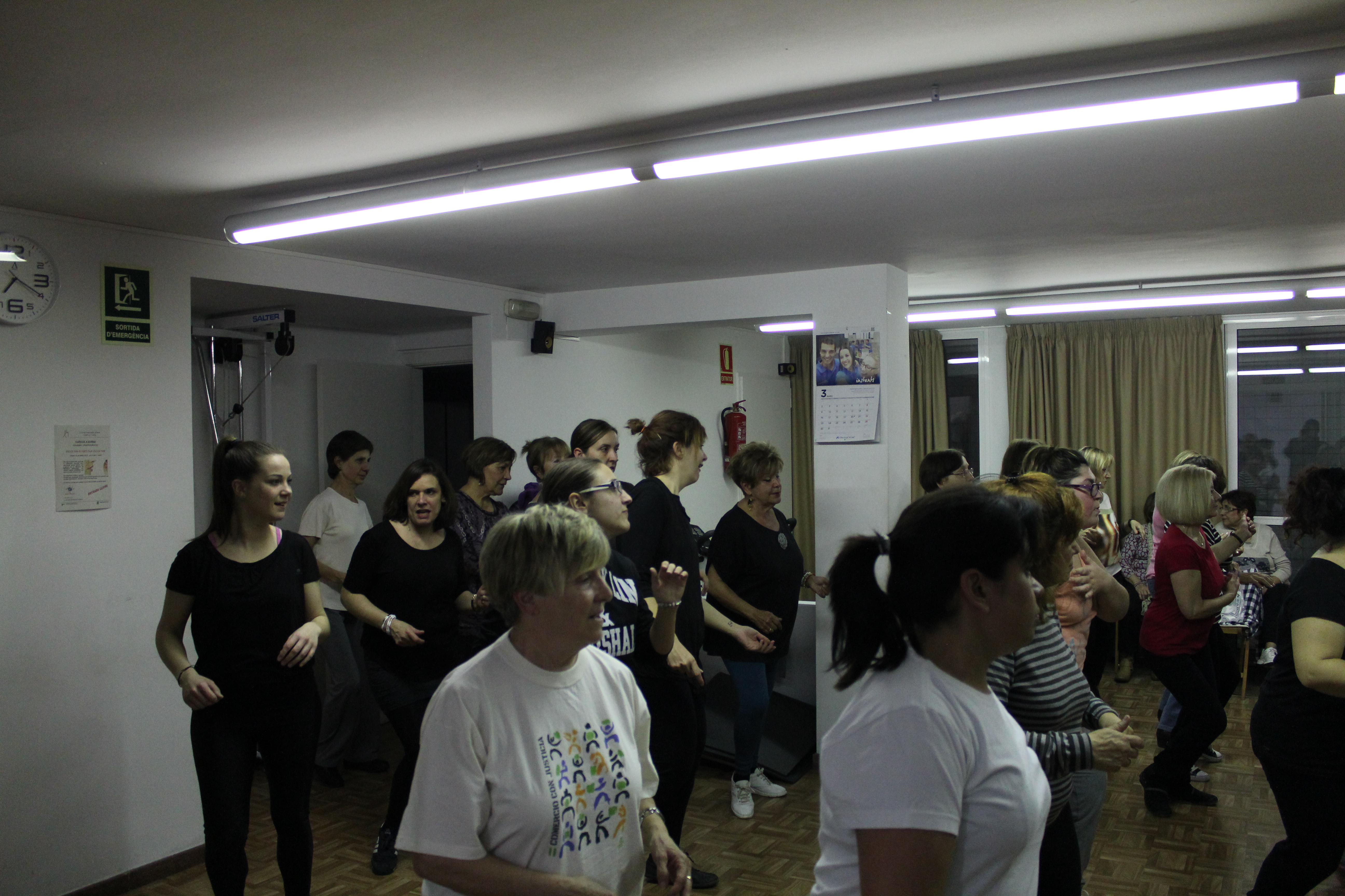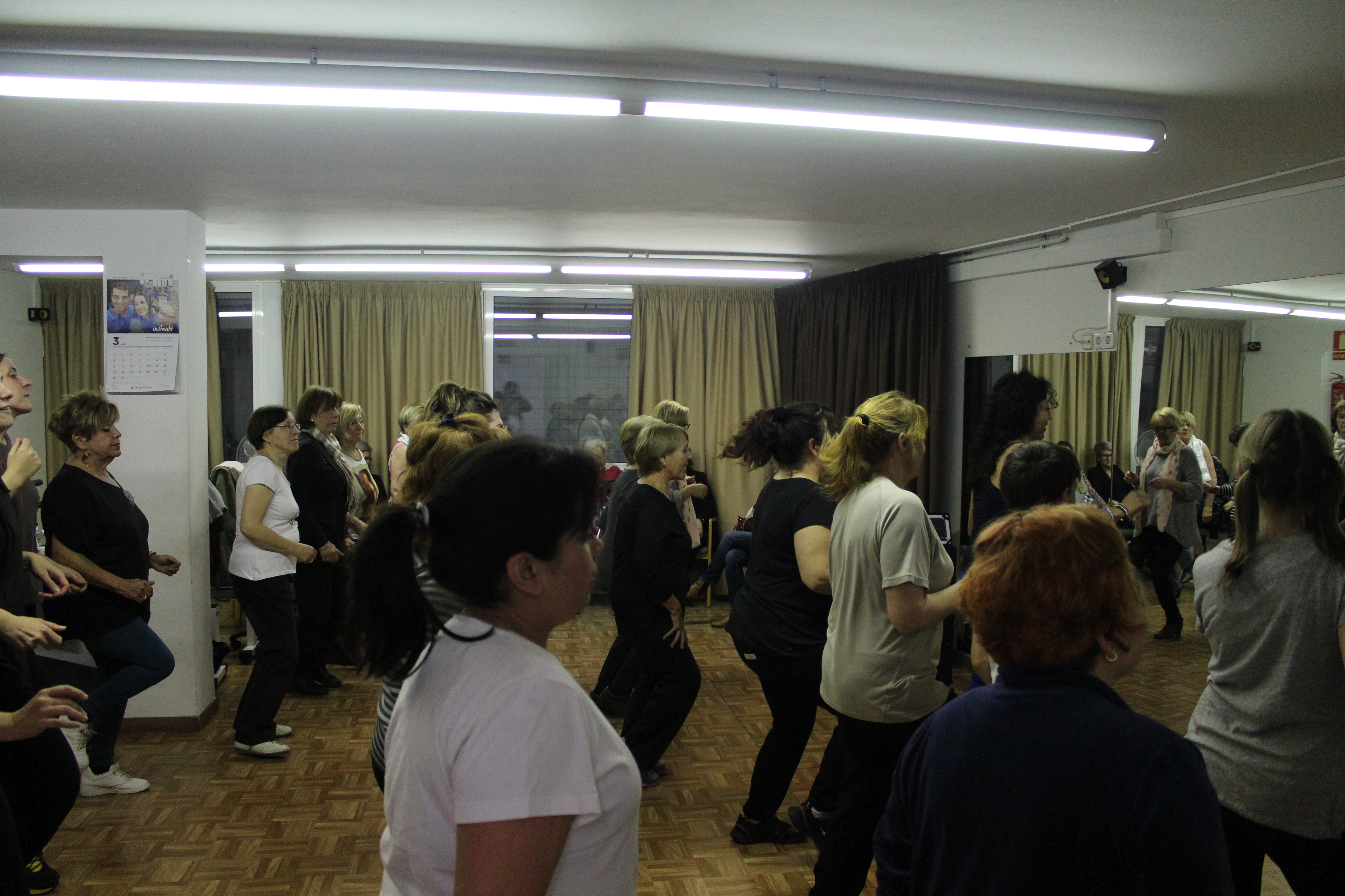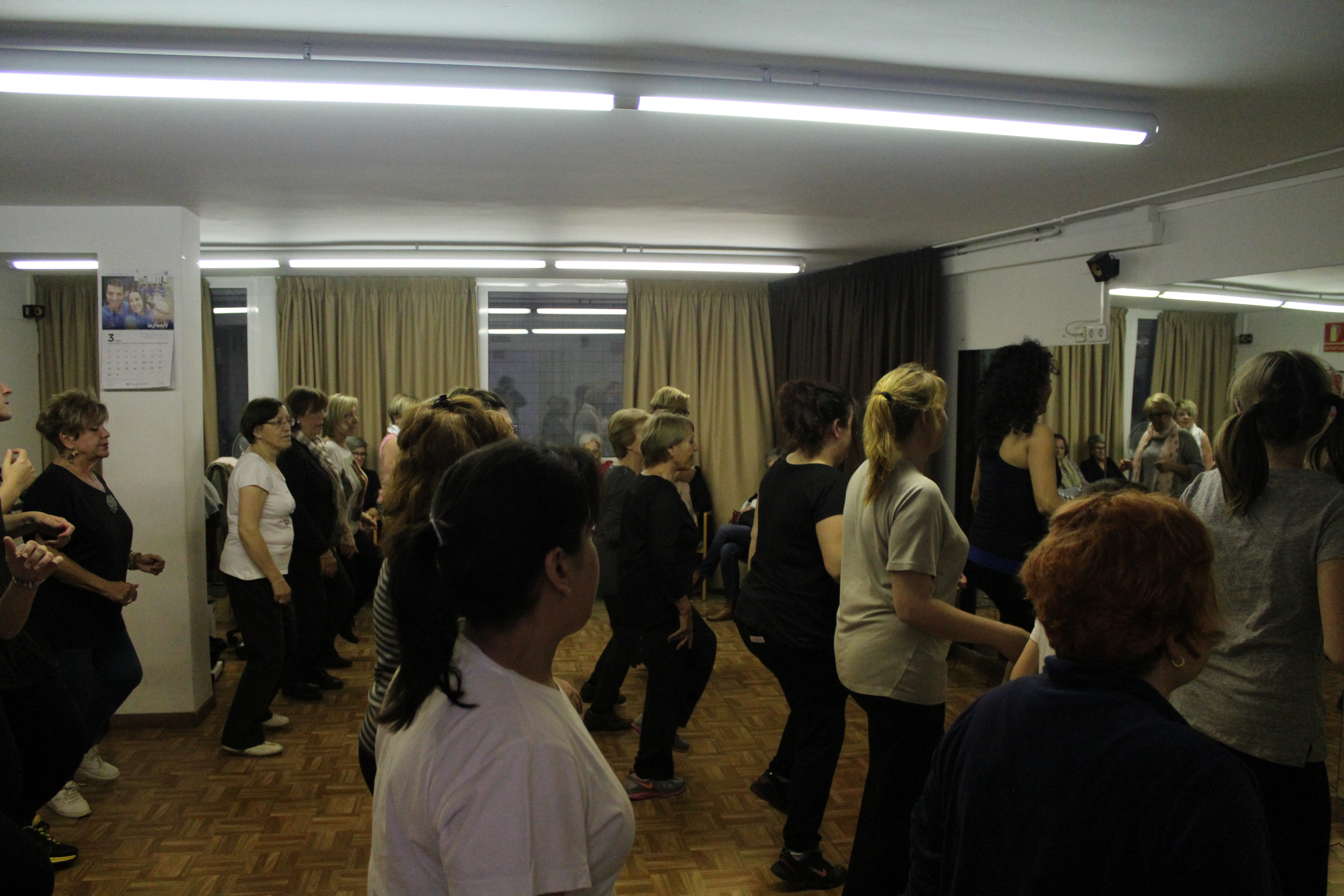 La sala s’ha quedat petita per poder acollir a totes les persones que han anat a ballar Zumba aquest dimarts a la llar de persones grans. Dones de totes les edats, amb roba d’esport i preparades per moure l’esquelet i fer una bona suada. Una hora amb els ritmes llatins. També hi ha hagut públic, persones que només han observat per saber de què es tracta aquest tipus de ball. No tothom ho tenia clar si apuntar-s’hi. Així ho han explicat algunes participants