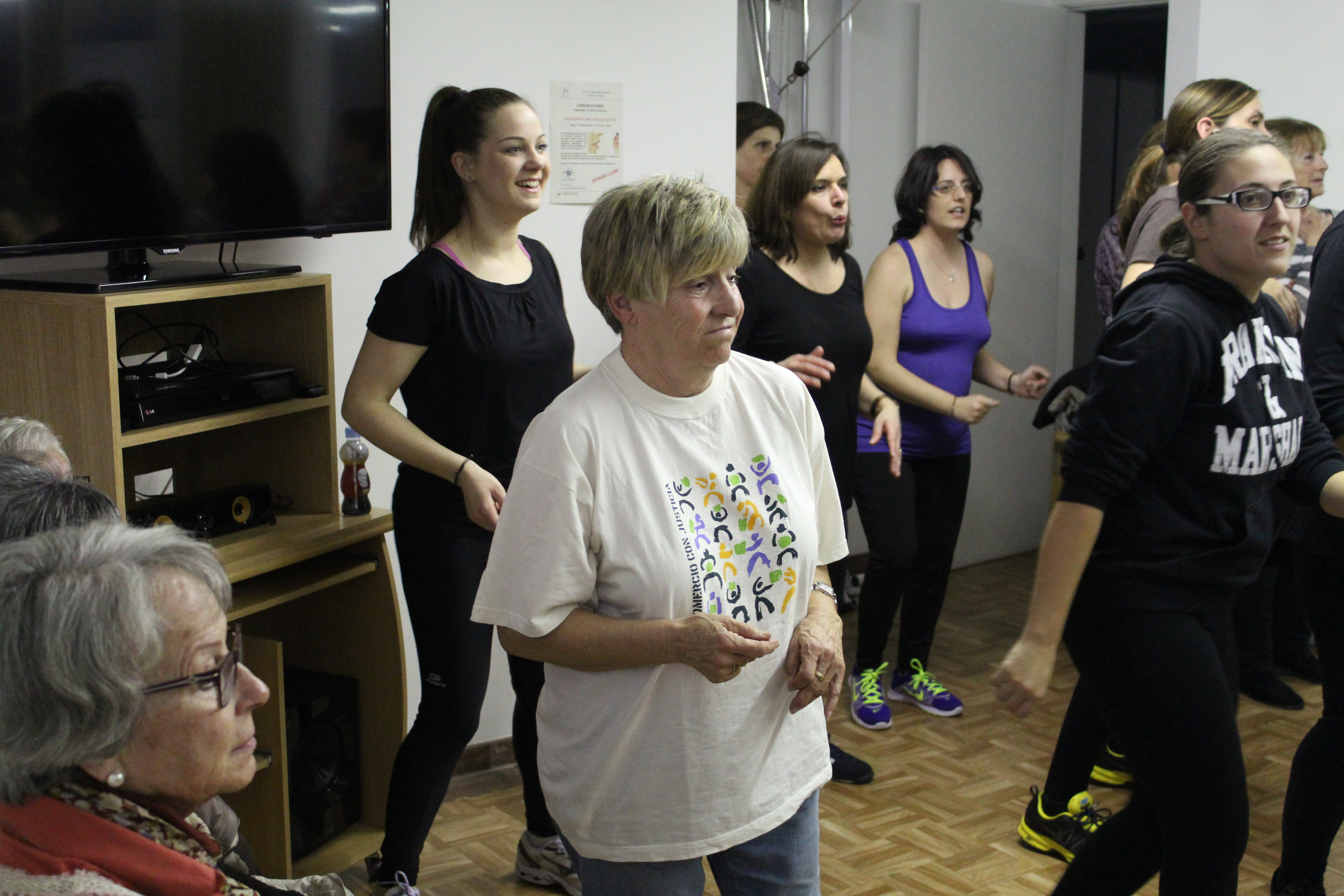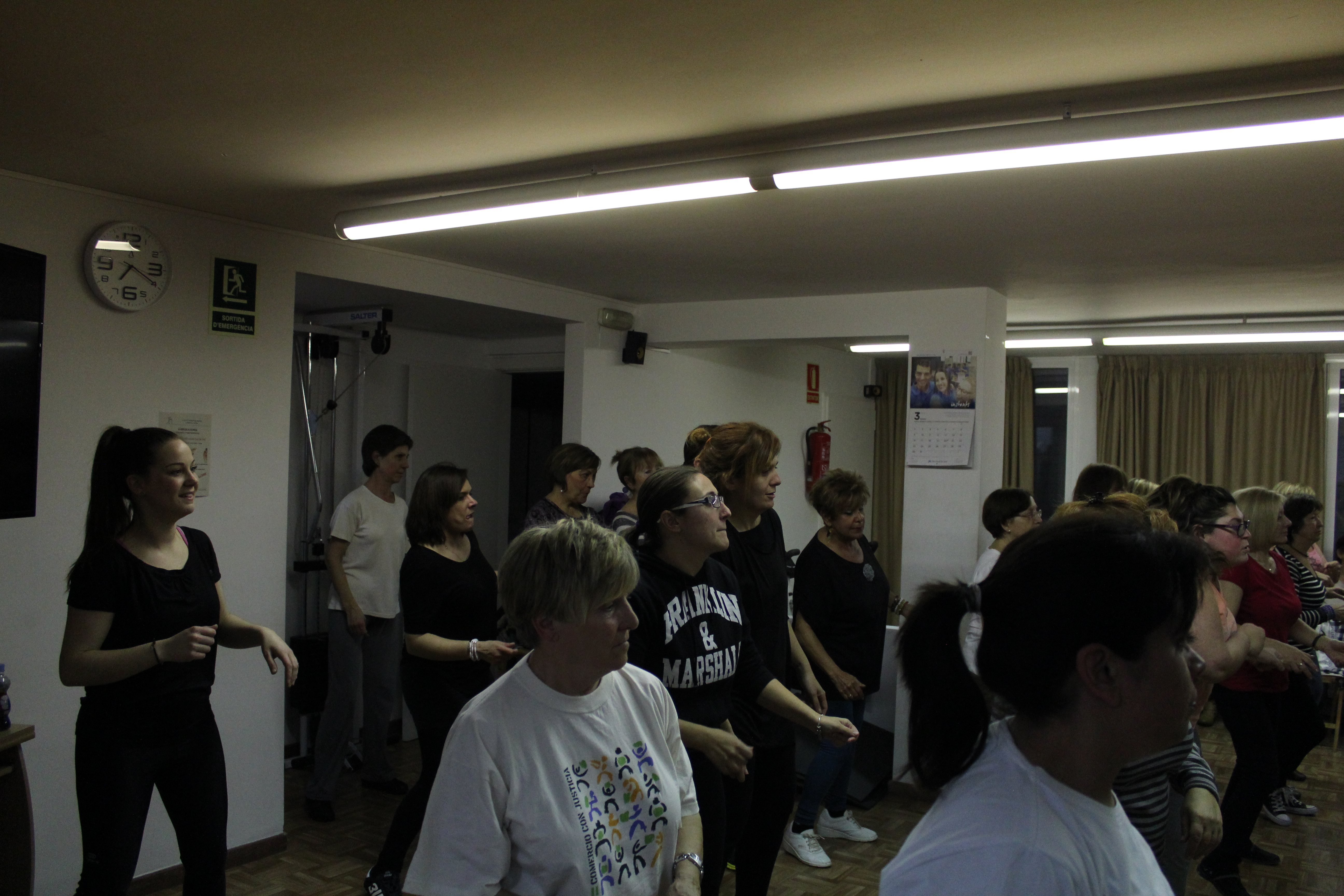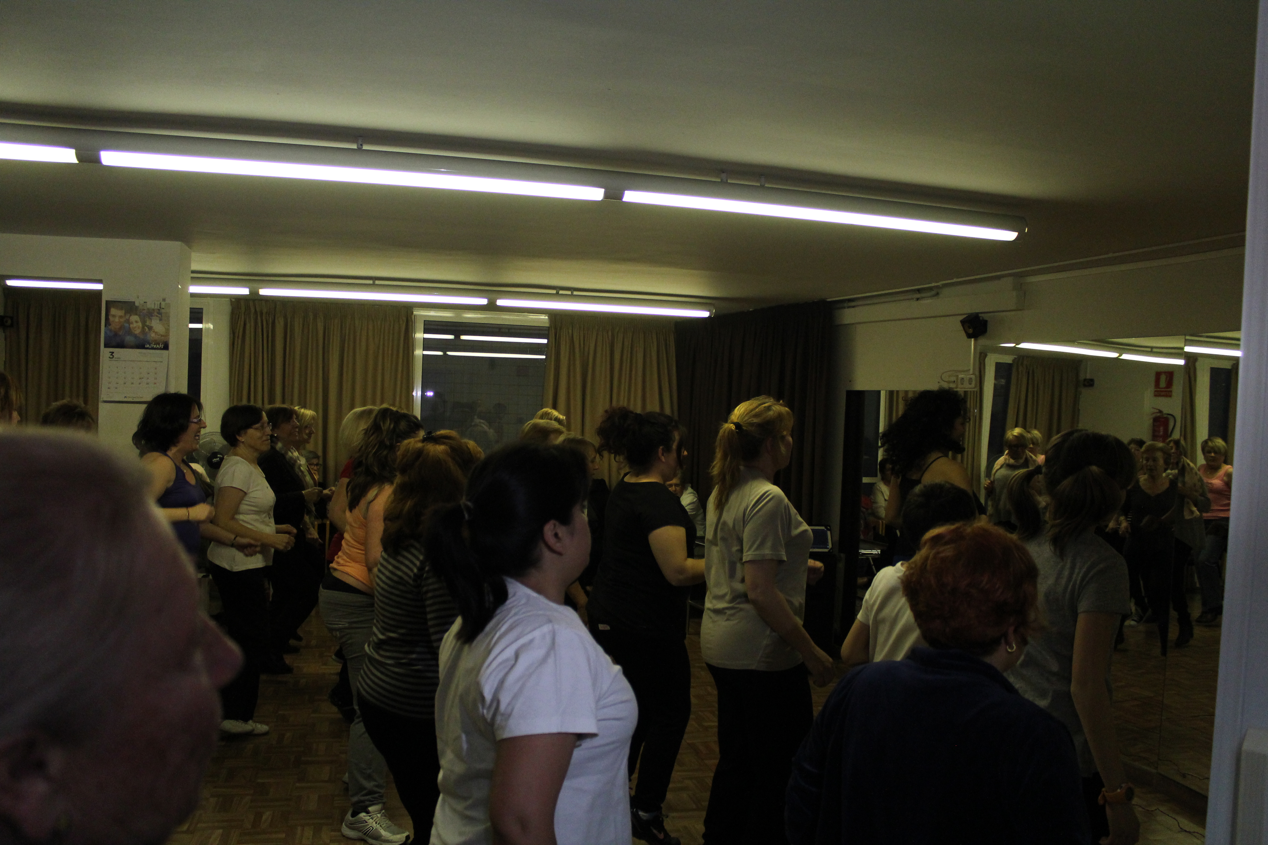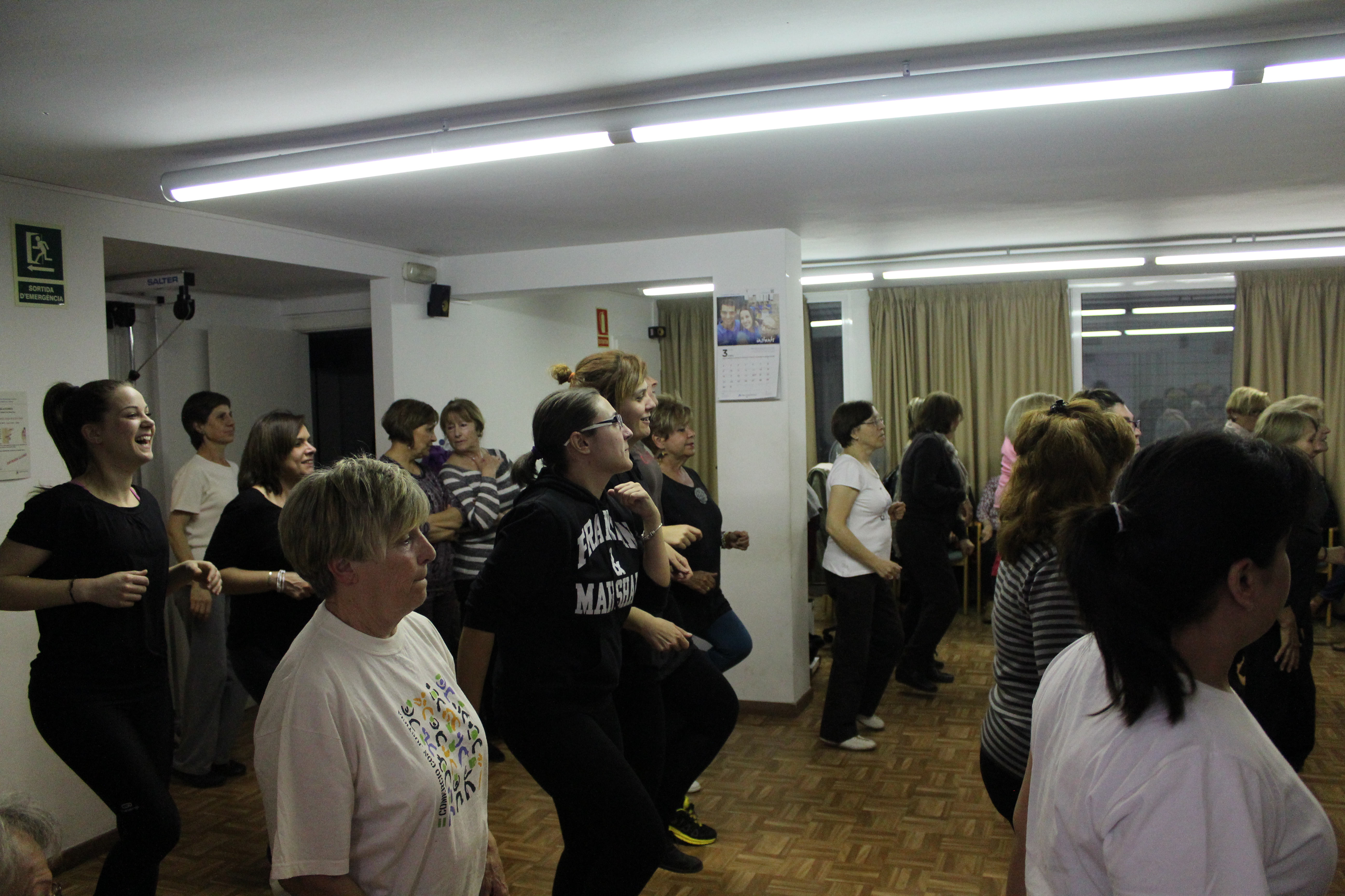 La sala s’ha quedat petita per poder acollir a totes les persones que han anat a ballar Zumba aquest dimarts a la llar de persones grans. Dones de totes les edats, amb roba d’esport i preparades per moure l’esquelet i fer una bona suada. Una hora amb els ritmes llatins. També hi ha hagut públic, persones que només han observat per saber de què es tracta aquest tipus de ball. No tothom ho tenia clar si apuntar-s’hi. Així ho han explicat algunes participants
