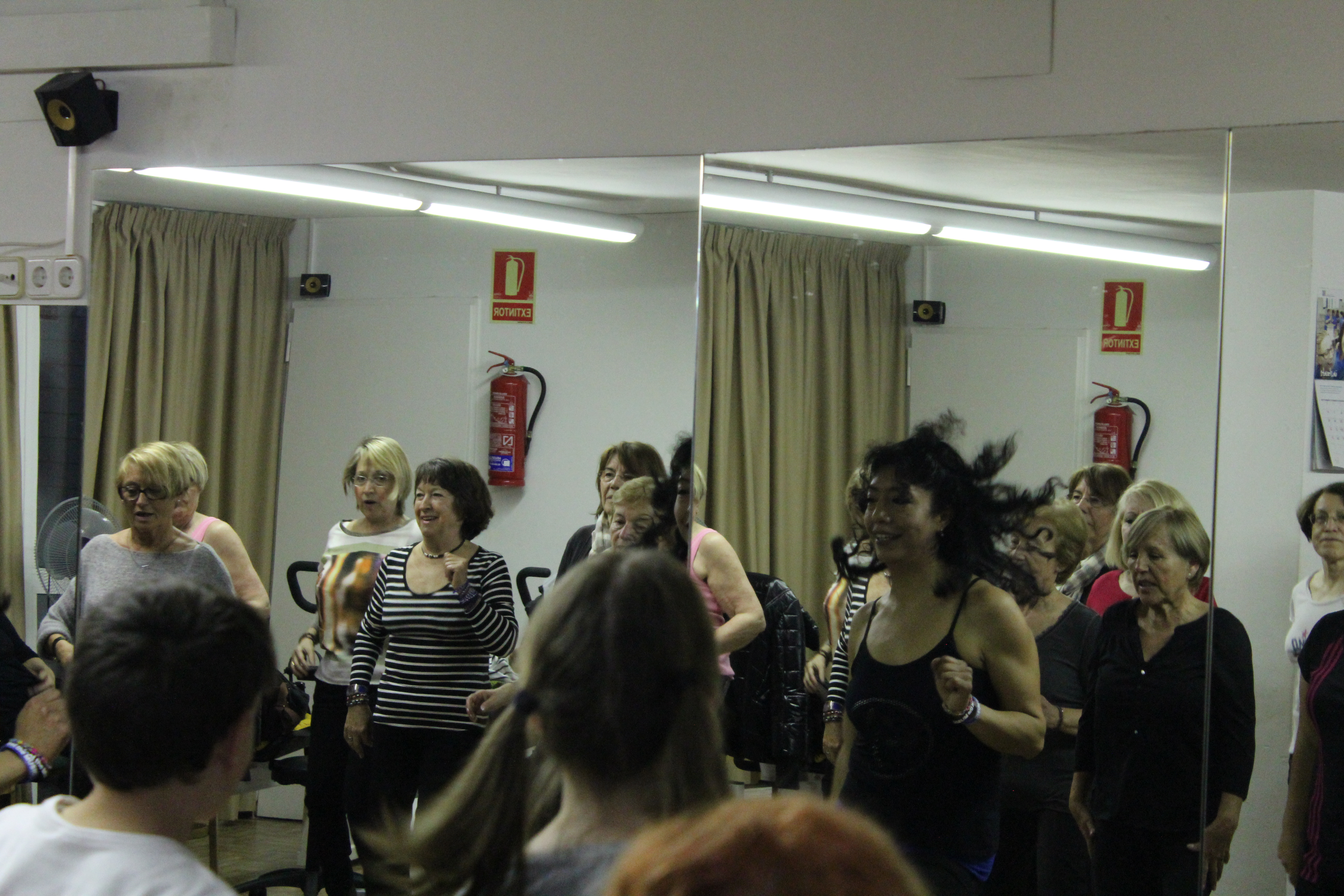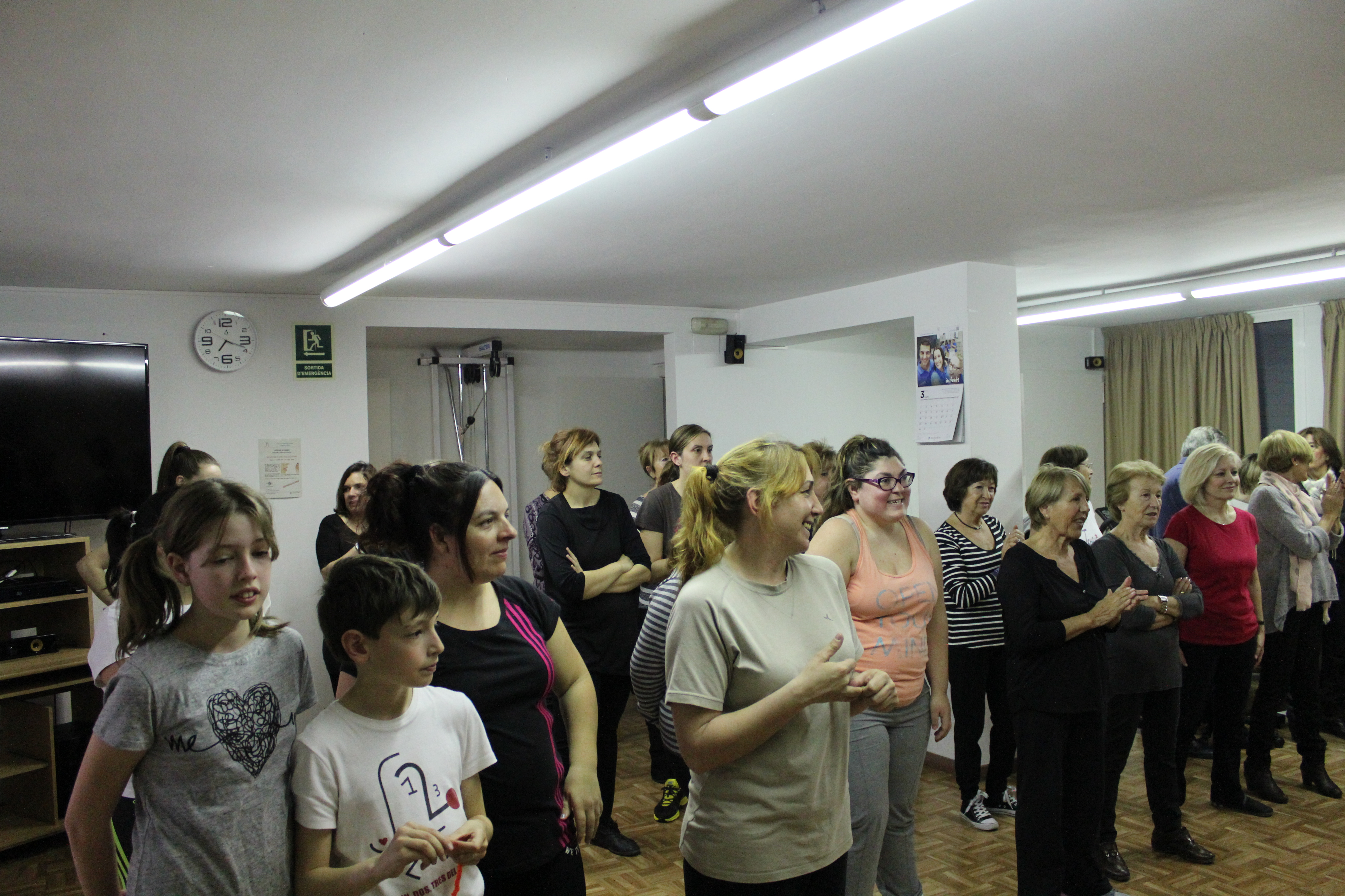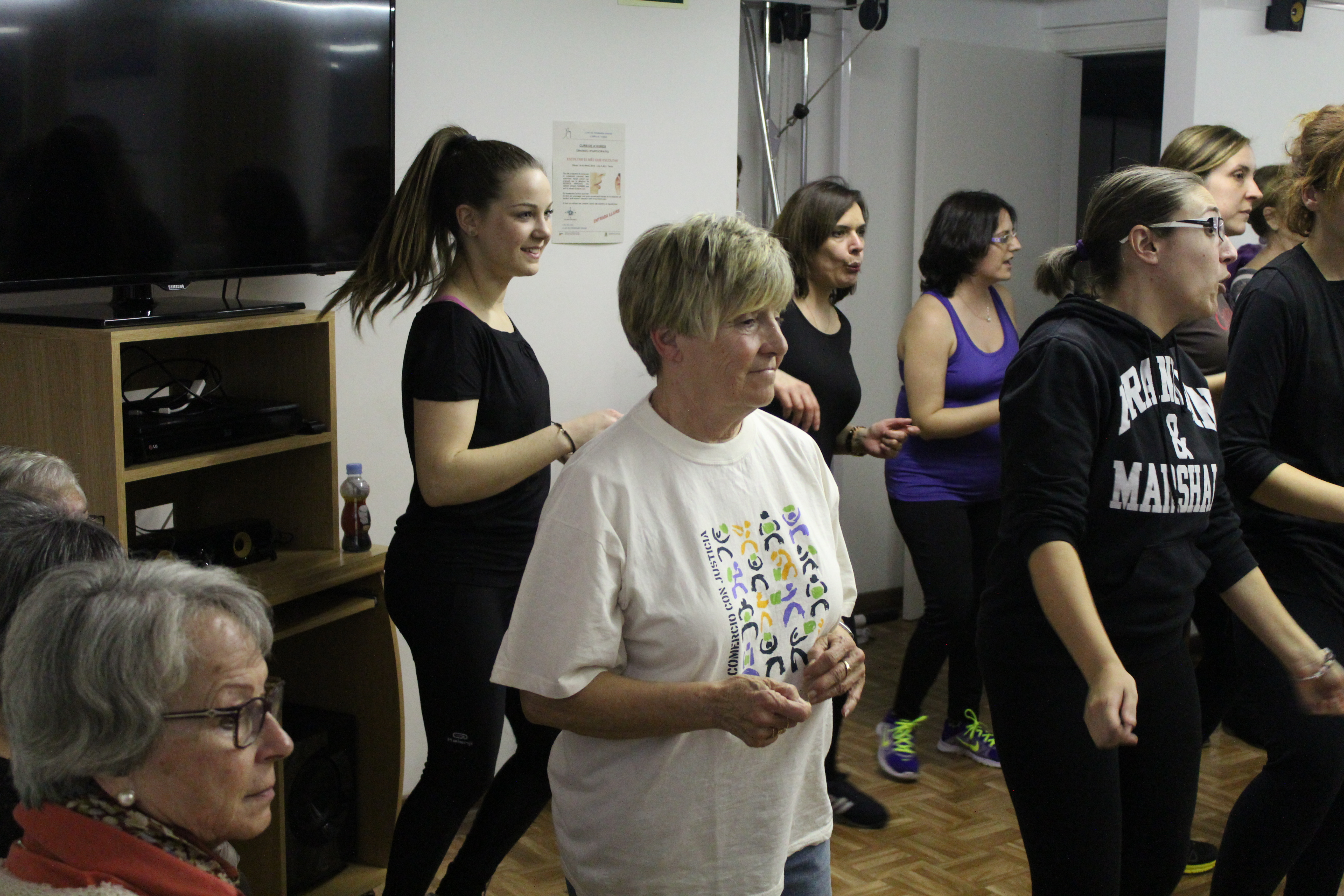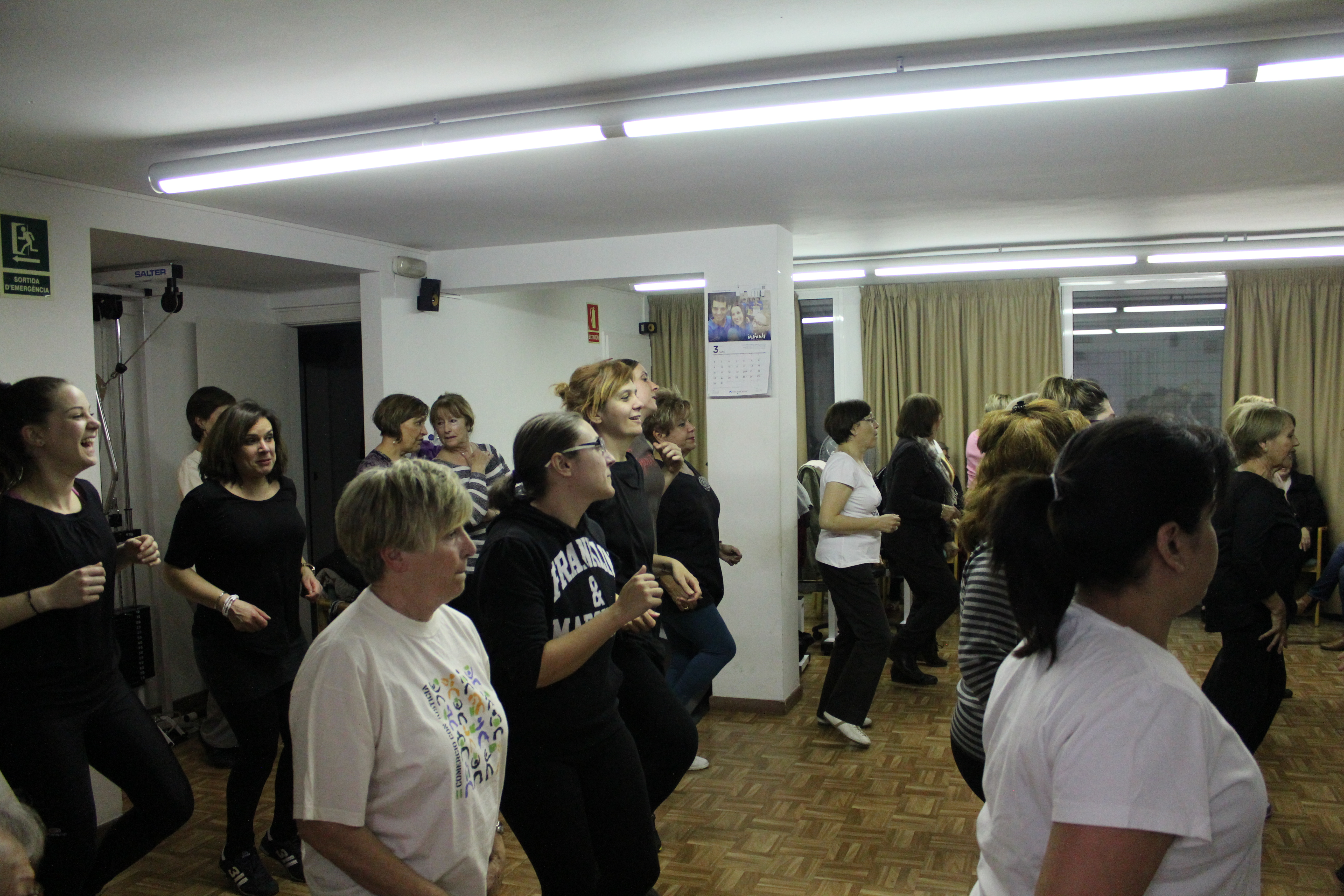 La sala s’ha quedat petita per poder acollir a totes les persones que han anat a ballar Zumba aquest dimarts a la llar de persones grans. Dones de totes les edats, amb roba d’esport i preparades per moure l’esquelet i fer una bona suada. Una hora amb els ritmes llatins. També hi ha hagut públic, persones que només han observat per saber de què es tracta aquest tipus de ball. No tothom ho tenia clar si apuntar-s’hi. Així ho han explicat algunes participants